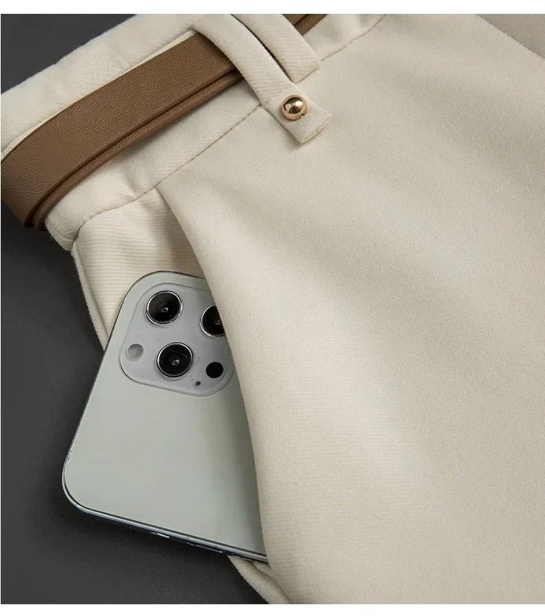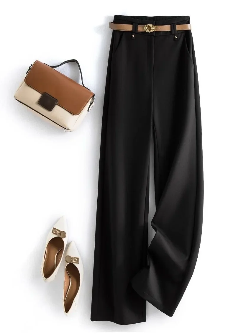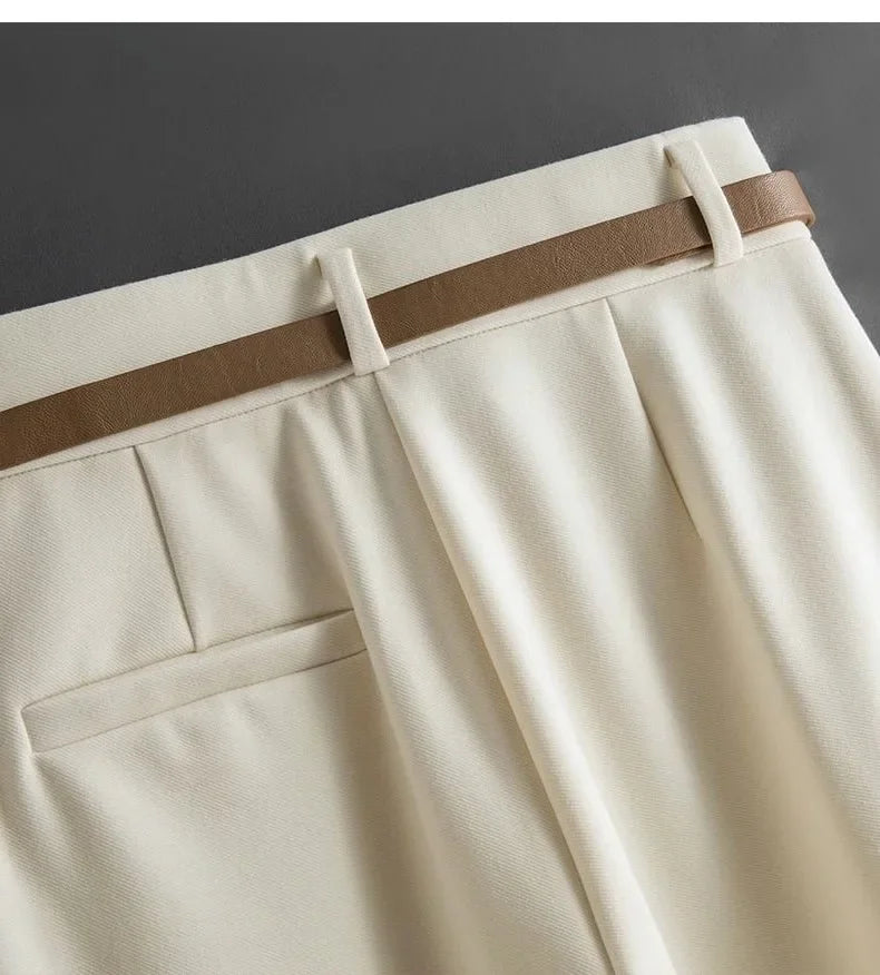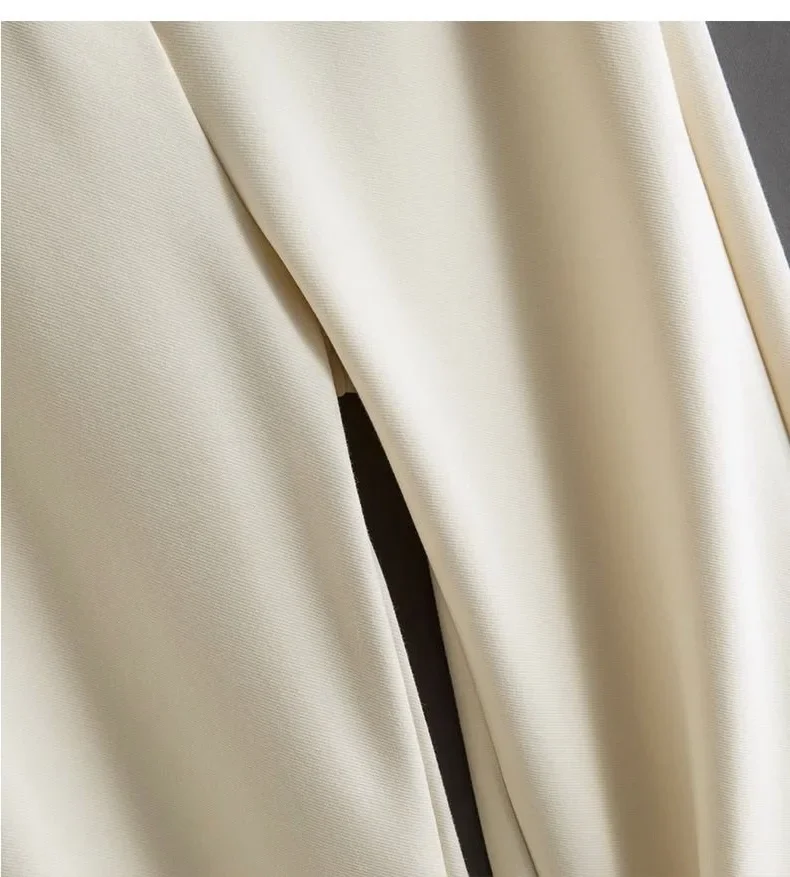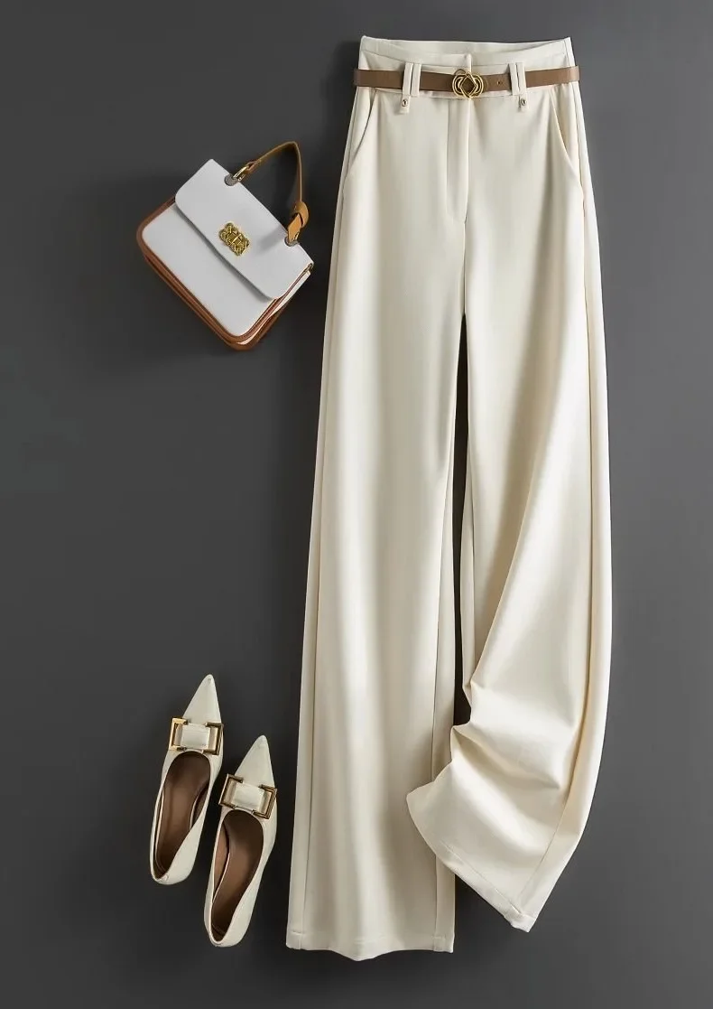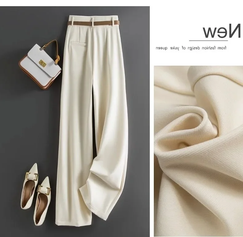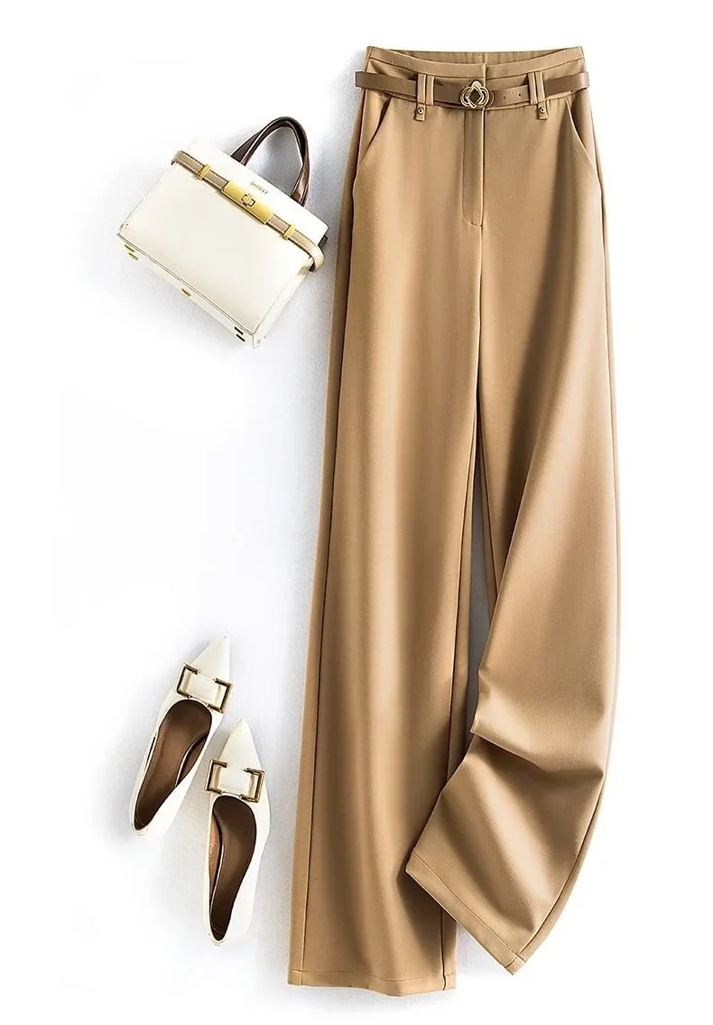 Purpdrank Tall Women's Narrow Wide Leg Pants High Waist Drapey Straight Loose Casual Suit Pants Long Trousers in Beige Color