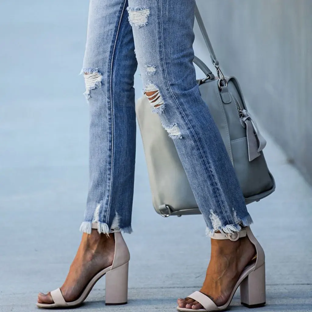 Purpdrank Women's Slim Fit Jeans Straight Pants Wish Brand Europe & United States New Burr Hole