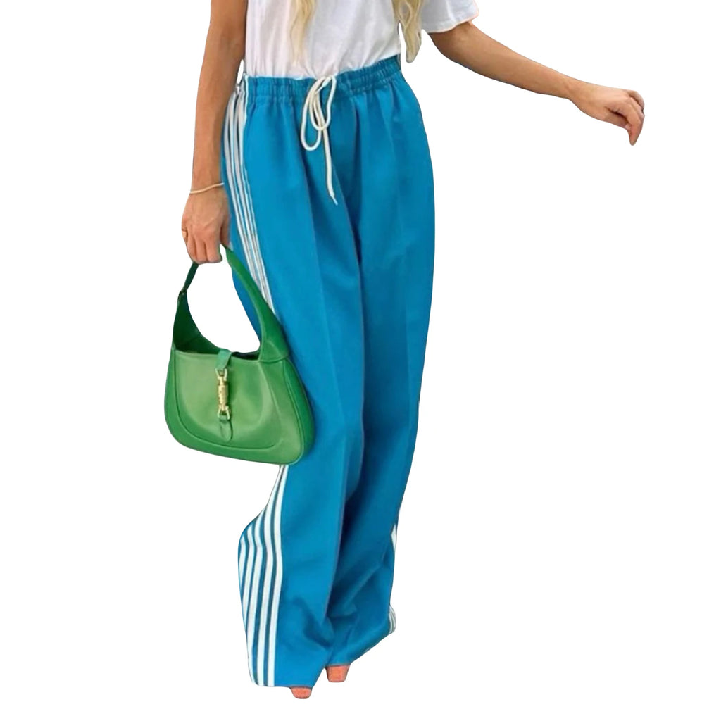 Purpdrank  Women's y2k Aesthetic Striped Print Pants Loose Elastic Waist Drawstring Straight Leg Casual Sweatpants with Pockets Streetwear