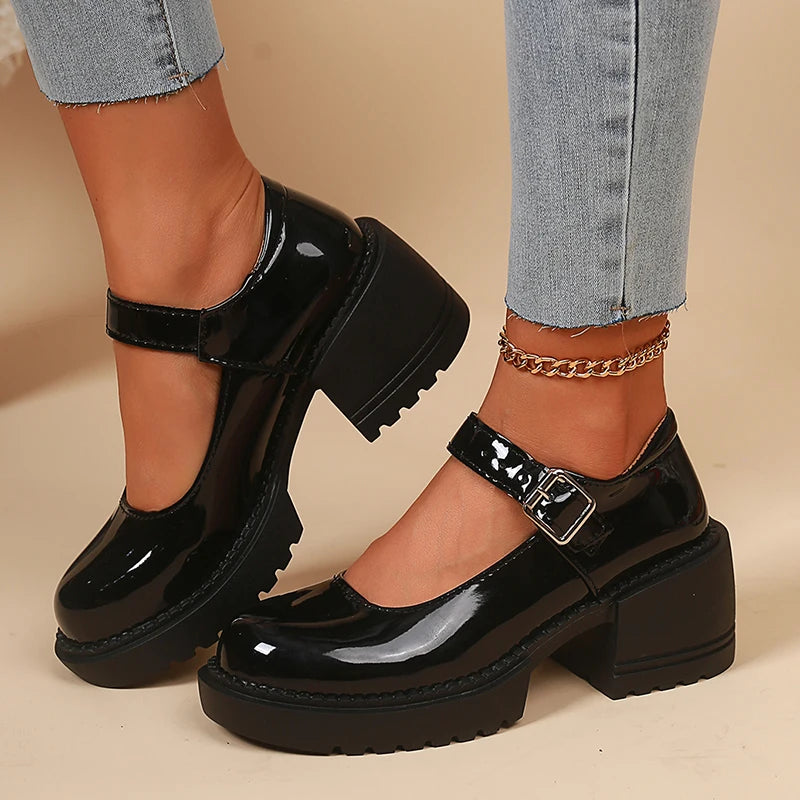 Purpdrank Patent Leather High Heels Mary Jane Shoes for Women Fashion Buckle Strap Platform Pumps Woman Japanese Thick Heel Lolita Shoes