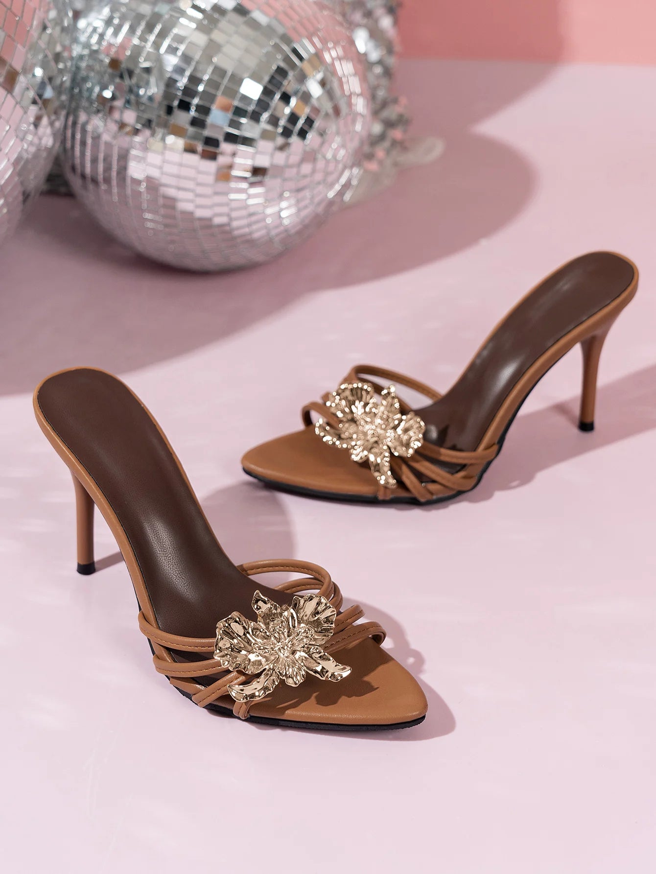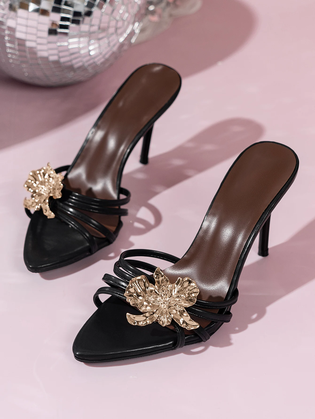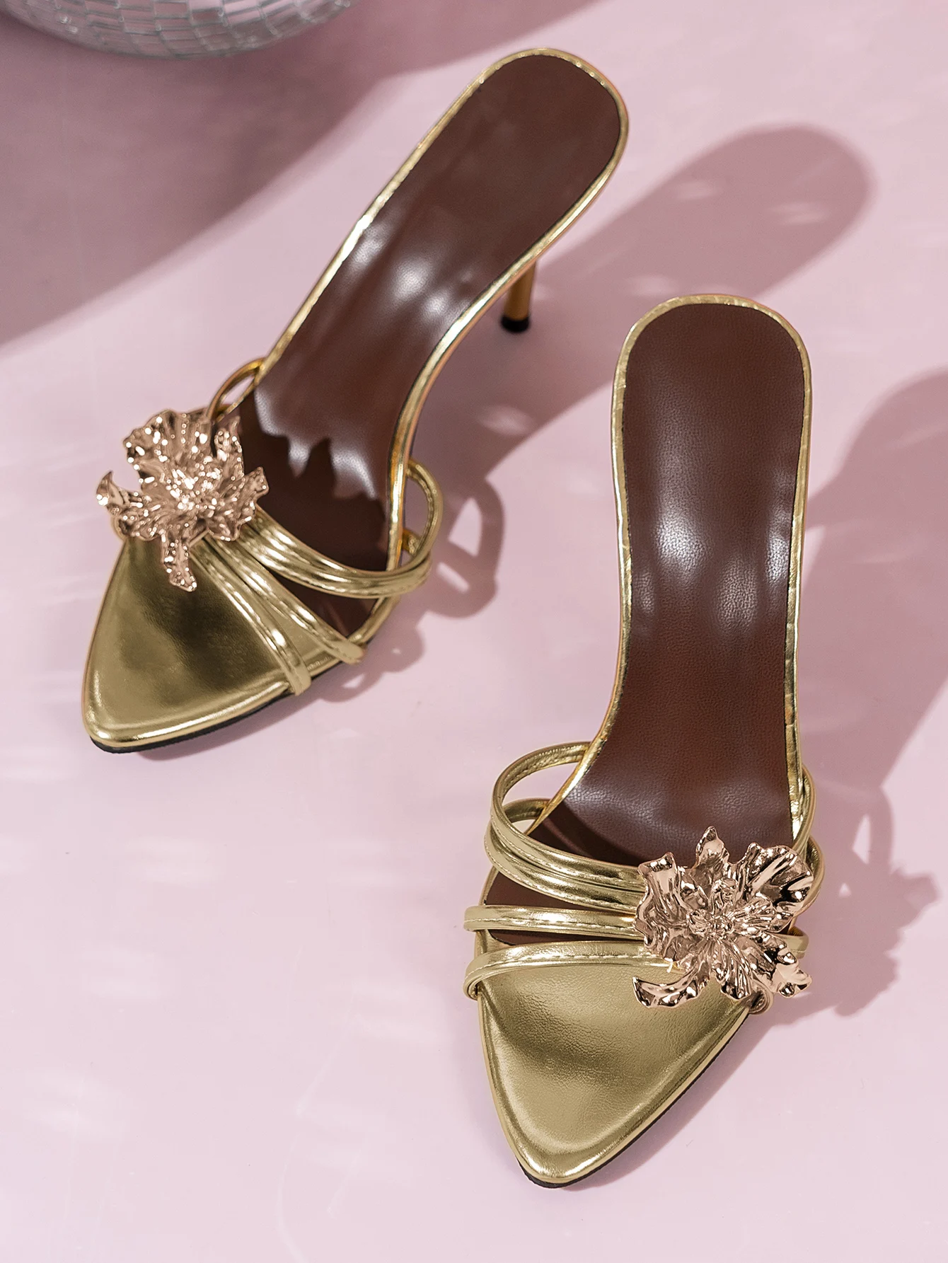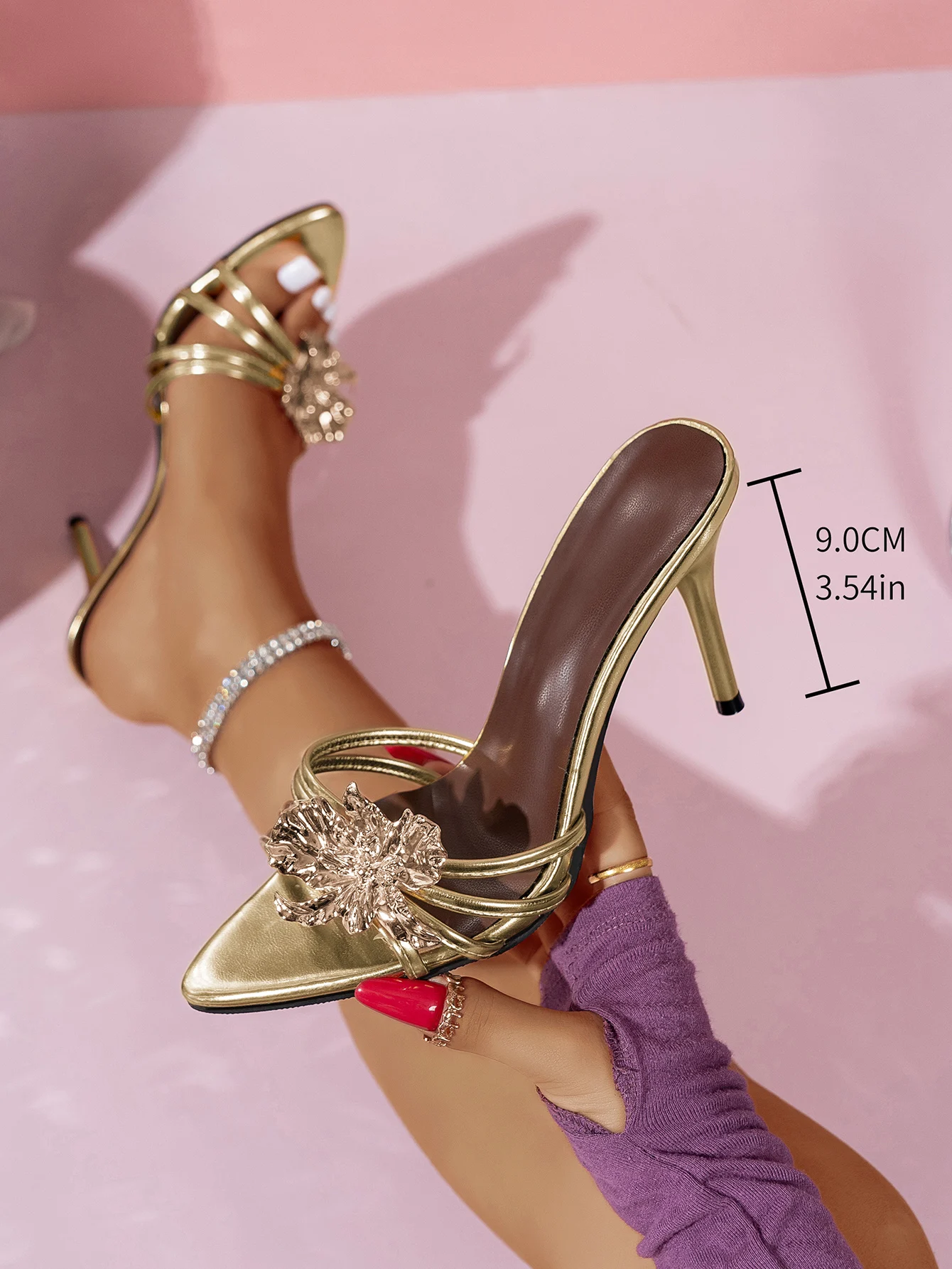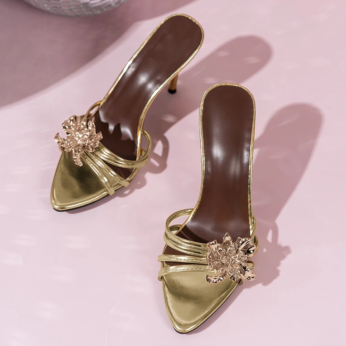 Purpdrank Pointed Toe High Heels Women Slippers Shoes Summer Sexy Party Dress Sandals Stiletto Flower Flip Flop Slingabck Slides
