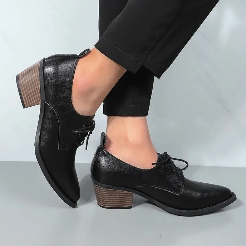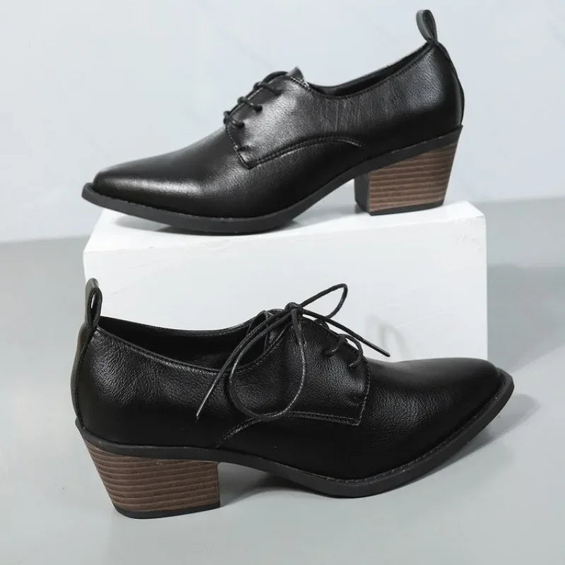 Purpdrank Spring Split Leather Women Shoes Pointed Toe Heels Lace Loafers Shoes for Women French Retro Casual Shoes
