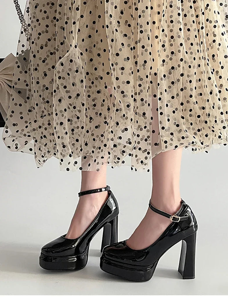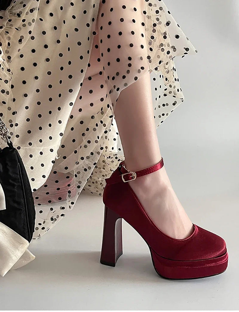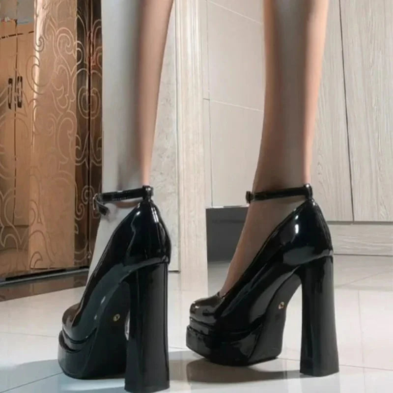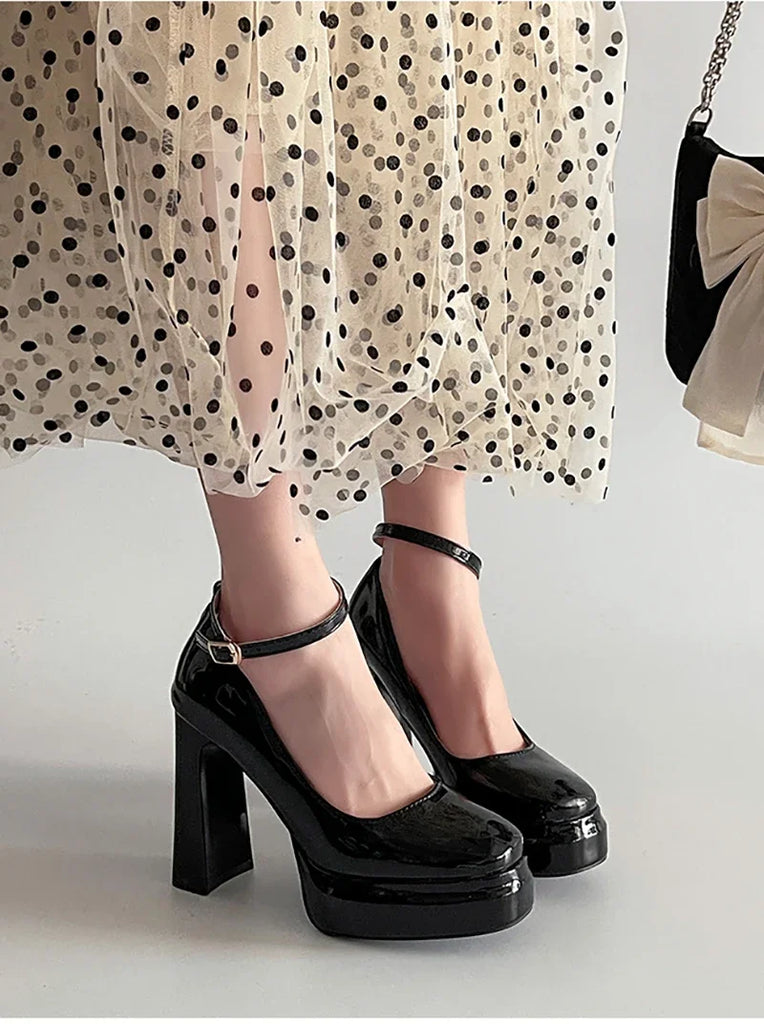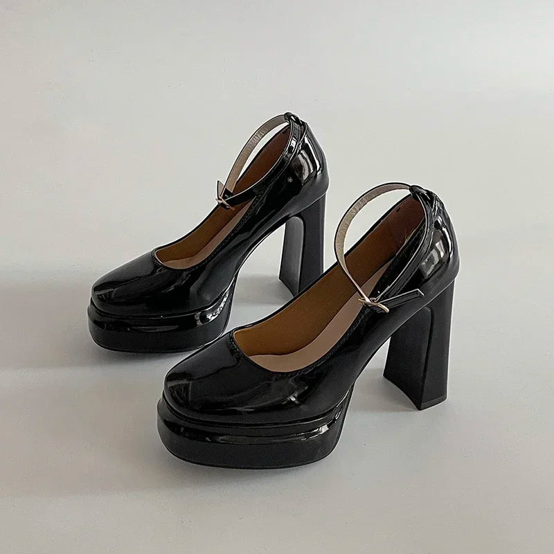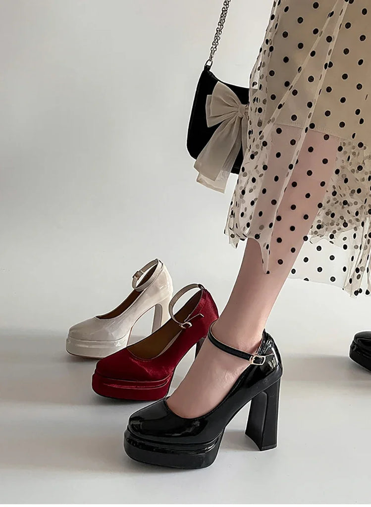 Purpdrank Spring Thick Heel Women Mary Jane Shoes Fashion Ankle Strap Ladies Elegant Wedding Party Pumps