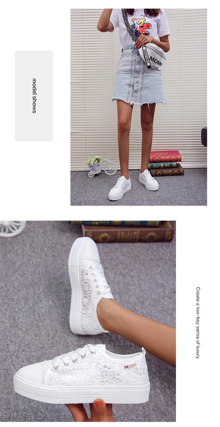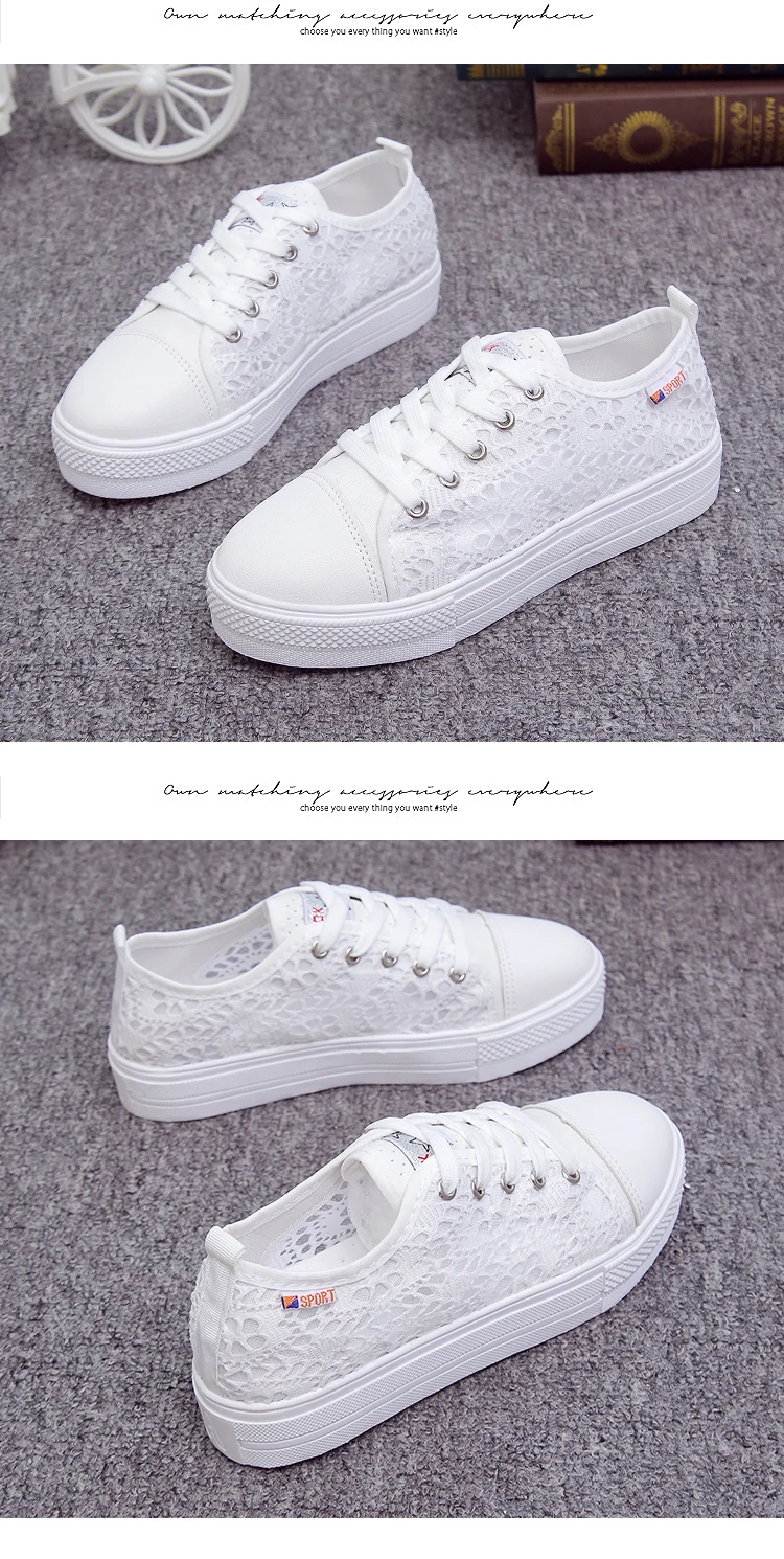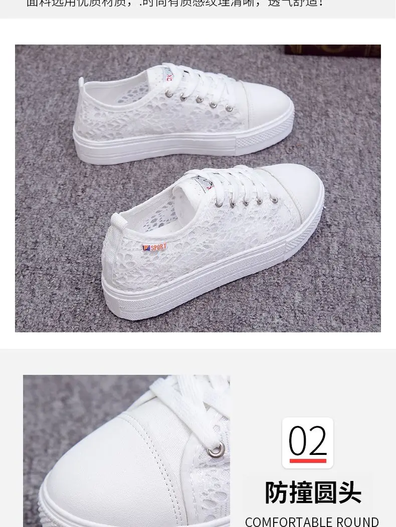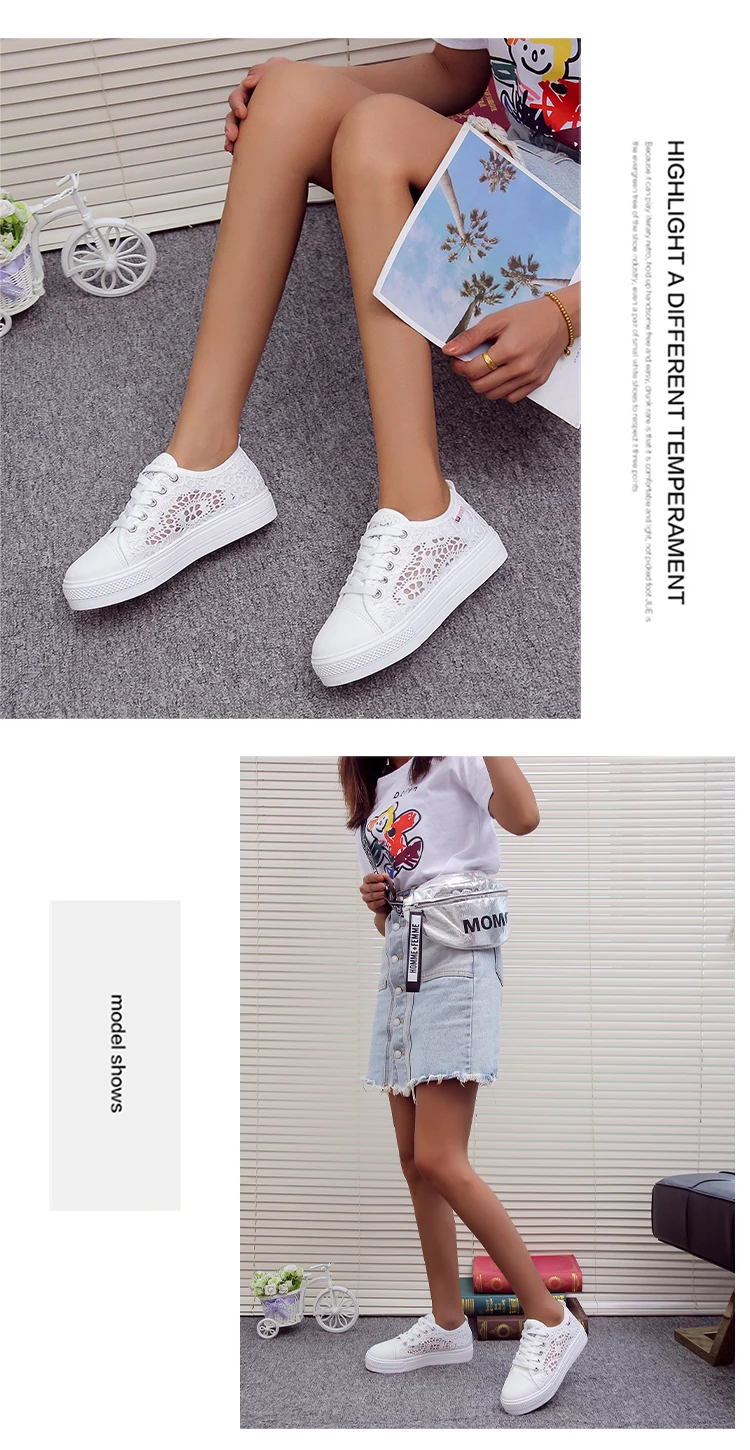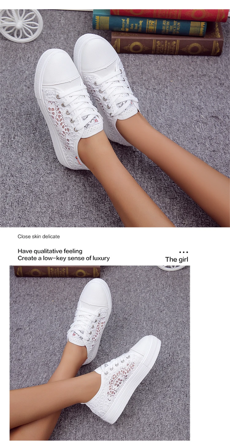 Women Shoes Fashion Summer Casual White Shoes Cutouts Lace Canvas Hollow Breathable Platform Flat Shoes Woman Sneakers