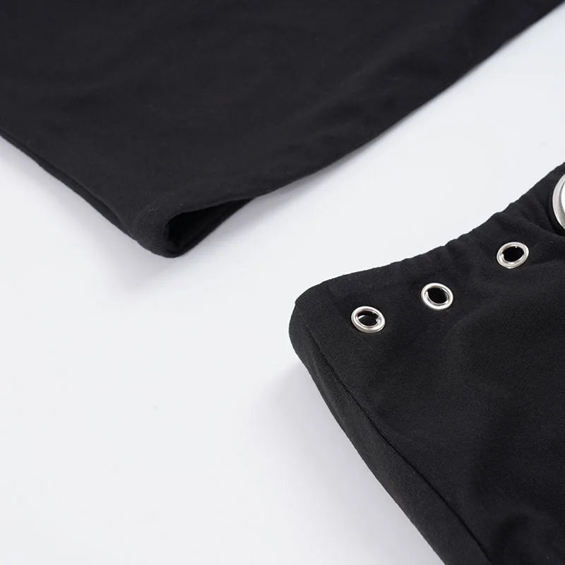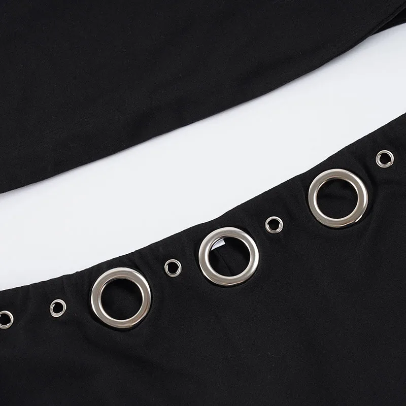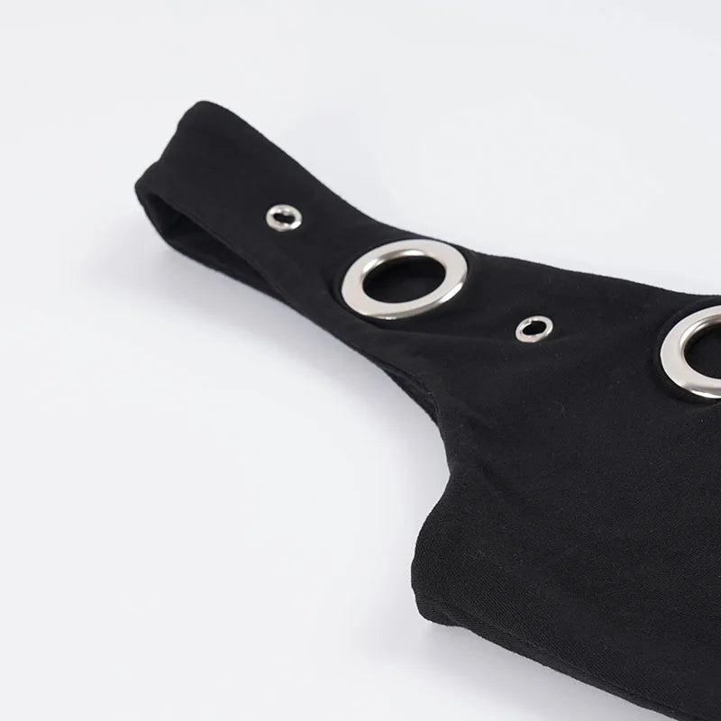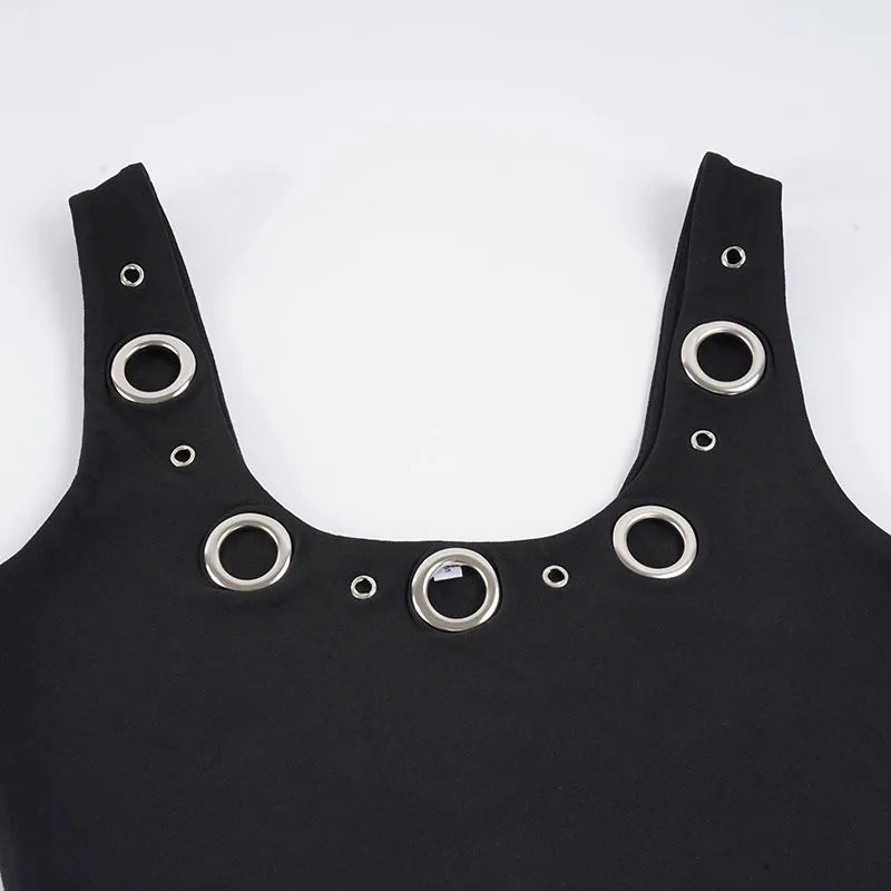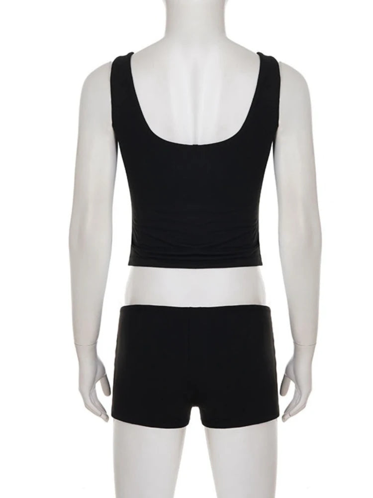 Purpdrank Street Style 2-Piece Set Sexy Metal Eyelet U-Neck Sleeveless Tank Top and Low Rise Slim Shorts Women Casual Sporty Outfit