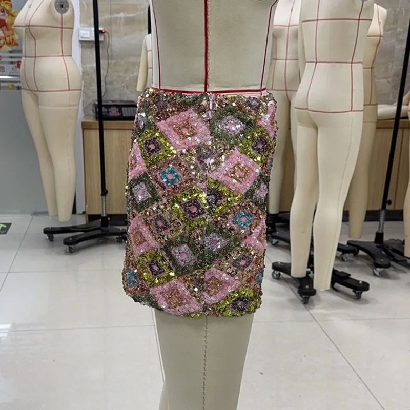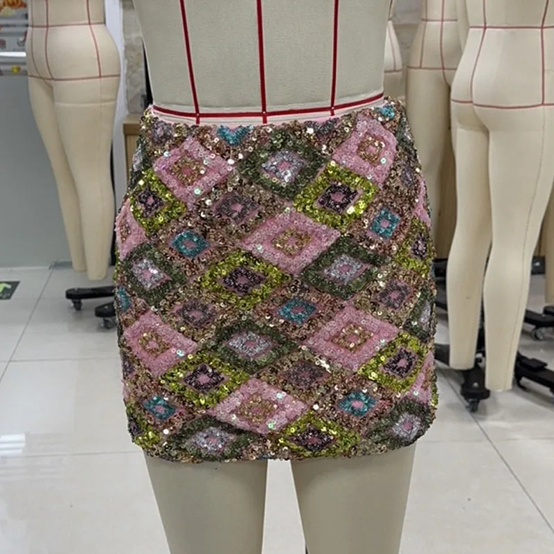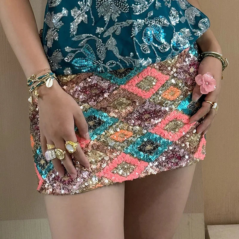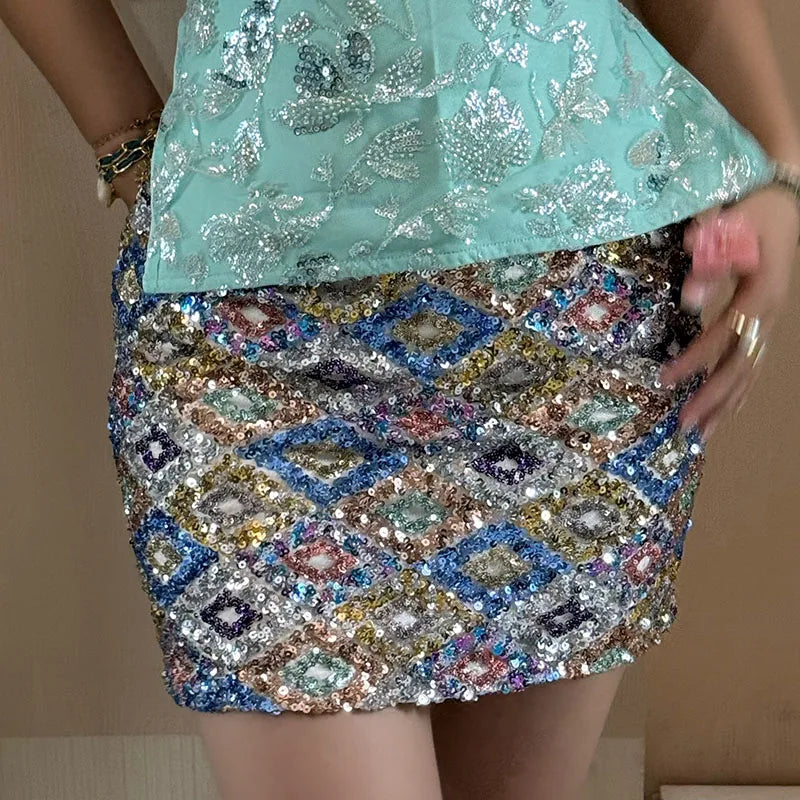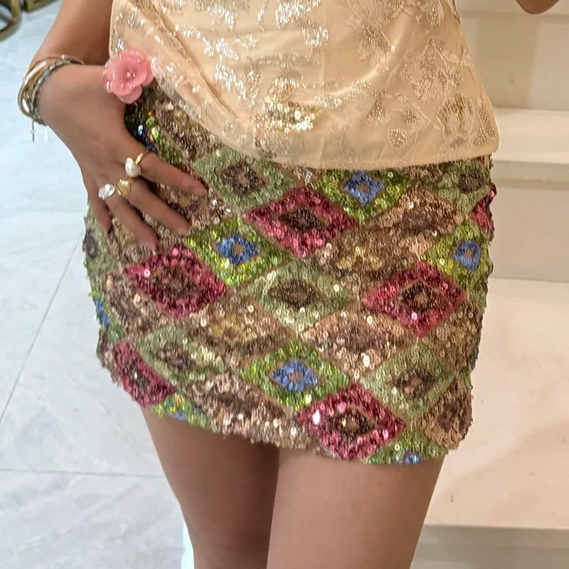 Purpdrank Women's Sequin Mini Skirts with Bulit in Shorts Summer Versatile Low Waist Slim Fit Skirt Club Party Shinny Glitter Pencil Skirt