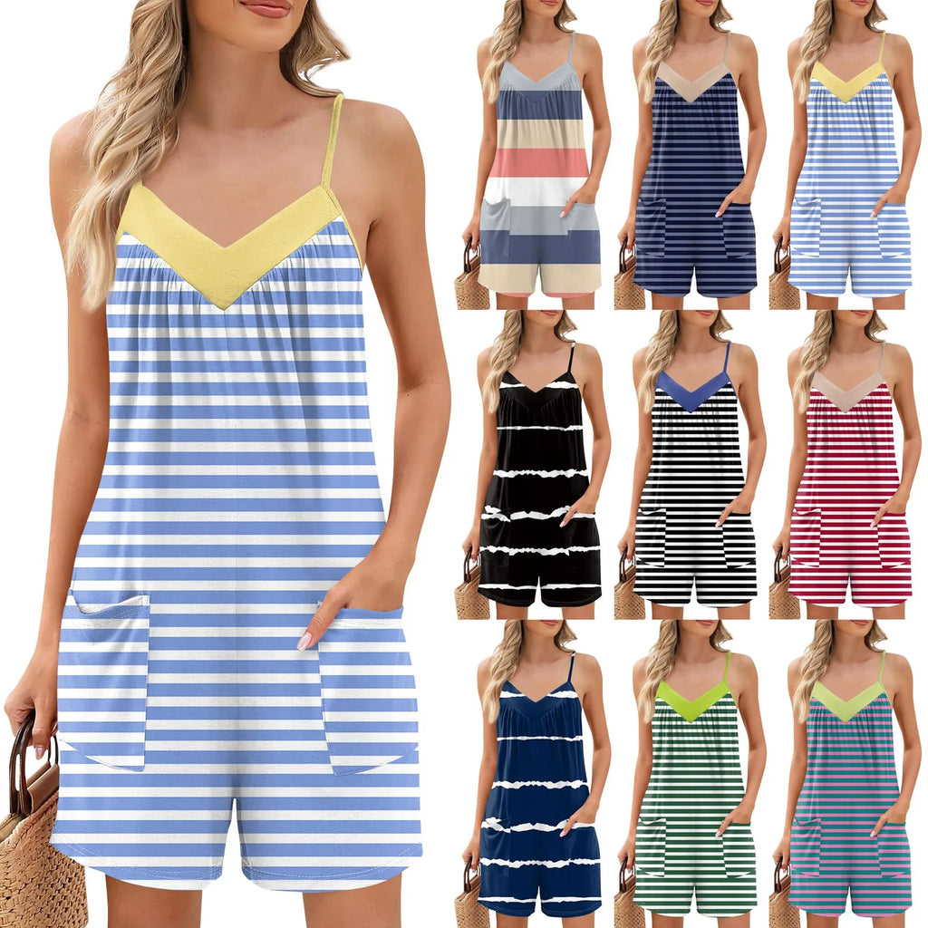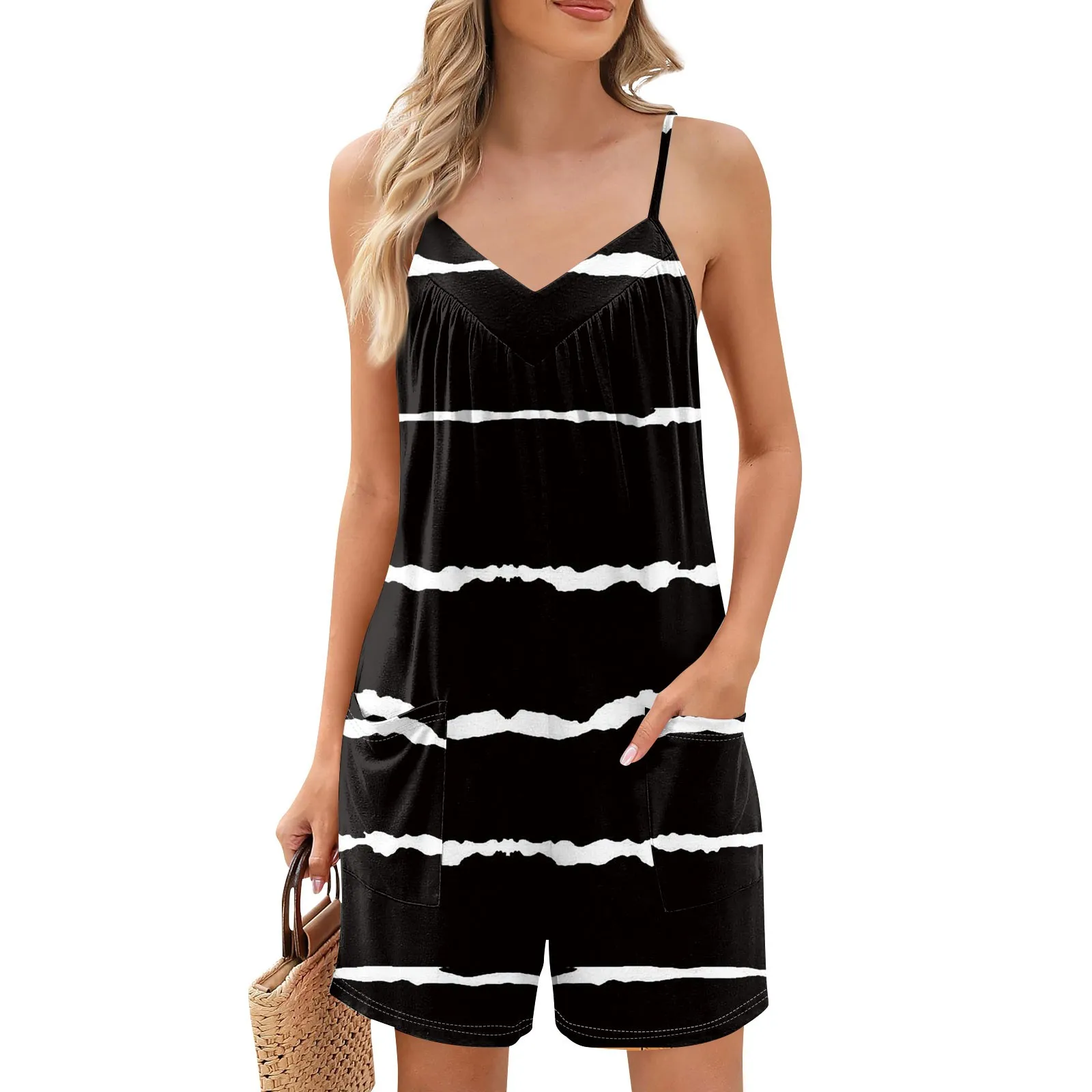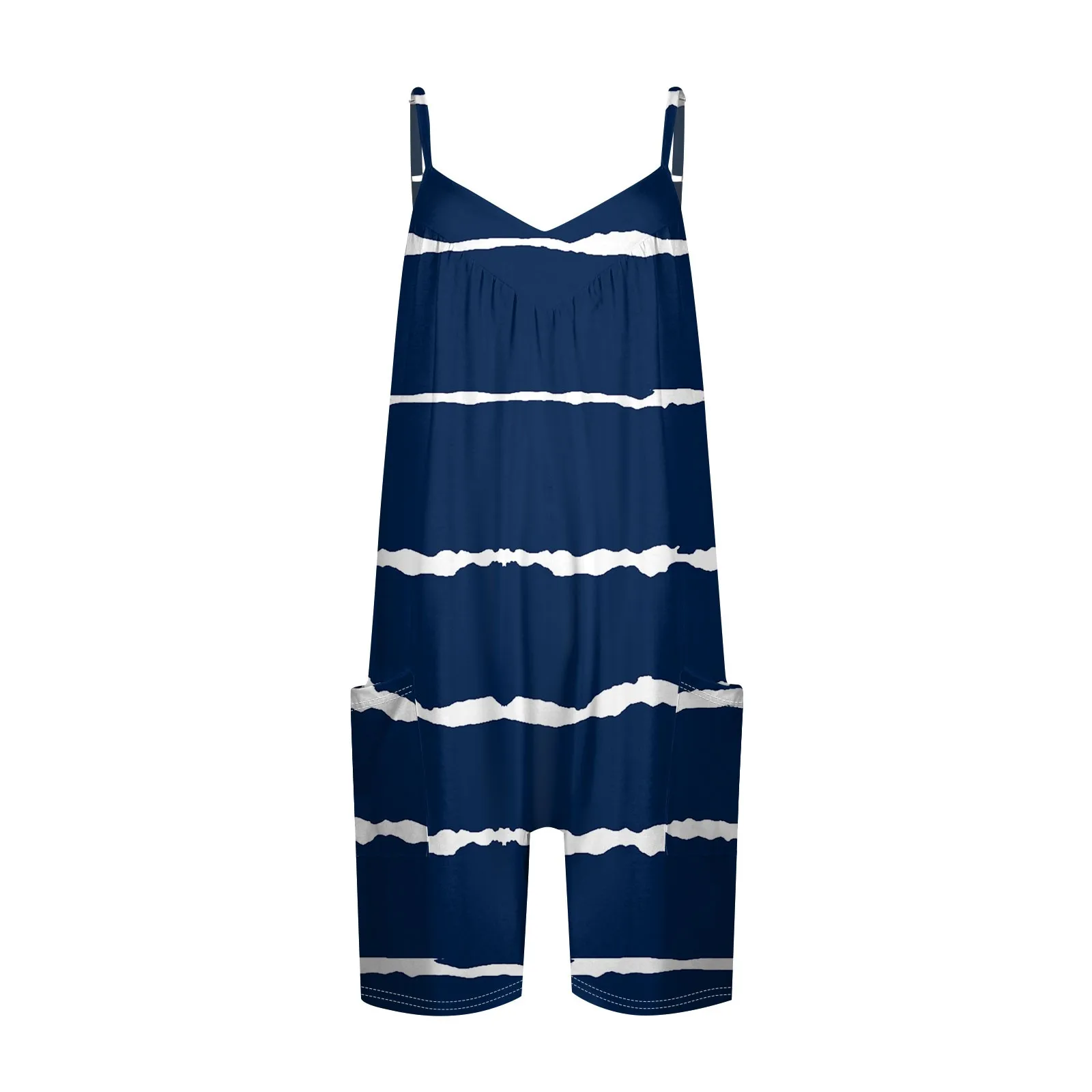 Purpdrank Women's Summer Jumpsuit Shorts,Printed Fashionable Casual Sleeveless Jumpsuit Shorts Rompers With Pockets