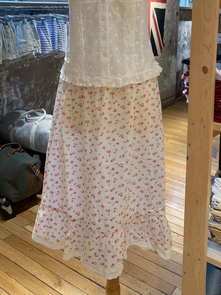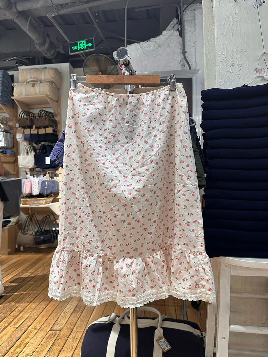 Purpdrank Red Floral Ruffles Midi Skirts Women Summer Elastic High Waist Lace Trim A-line Faldas Casual Sweet Cotton Thin Long Skirts New