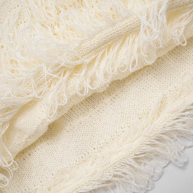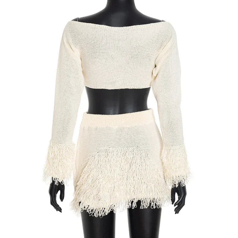 Purpdrank Sexy Tassel Two Piece Women Crocheted Knit Skirts Sets 2025 Autumn Winter Off Shoulder Long Sleeve Cropped Tops and Mini Skirt
