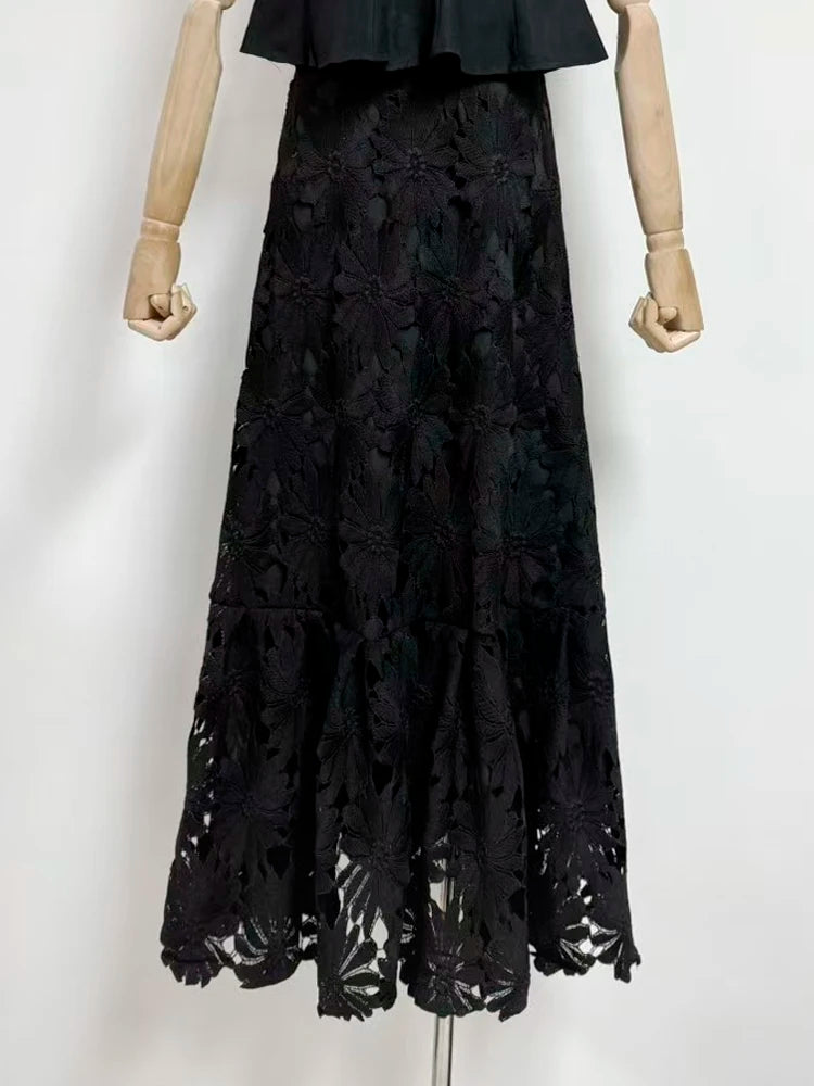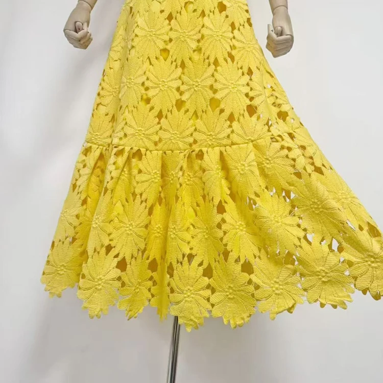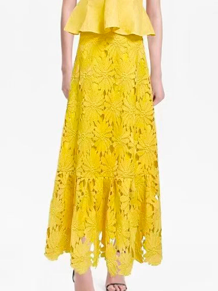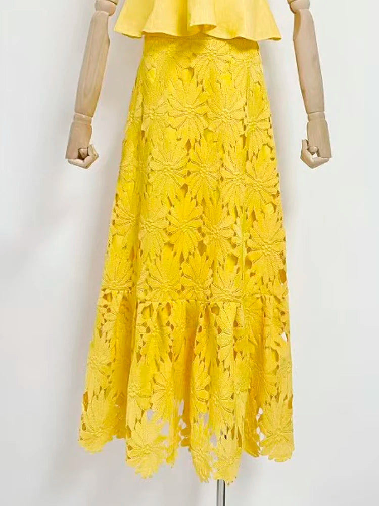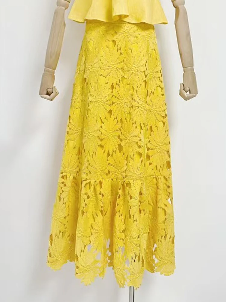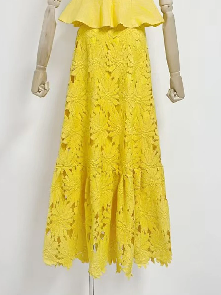 Purpdrank Yellow Crochet Sexy Hollow Out Retro Lace Long Skirts for Women 2025 Summer Fashion High Waist Strechy Elegant Party Skirt Lady