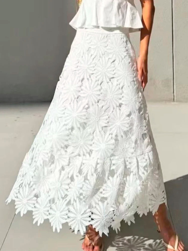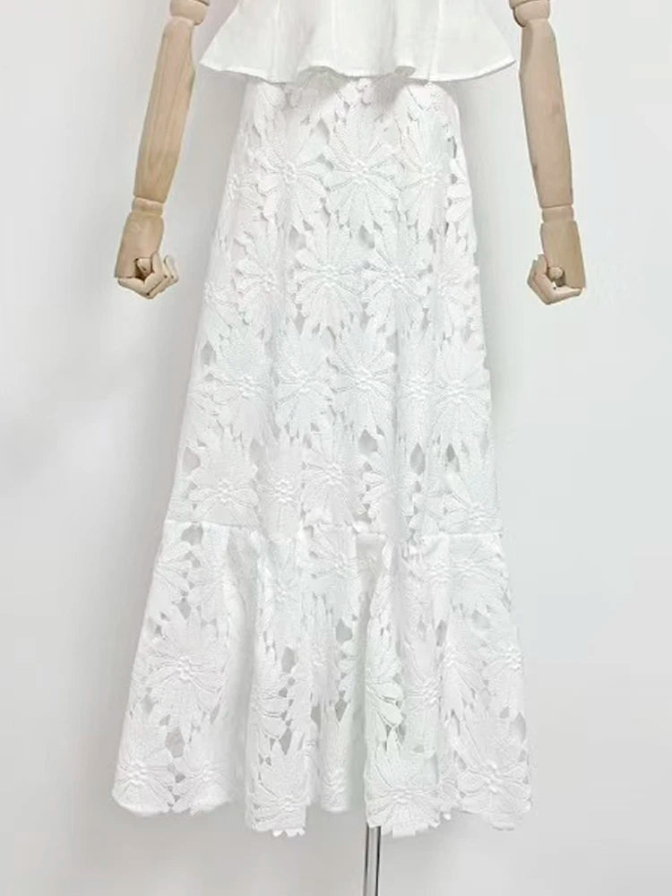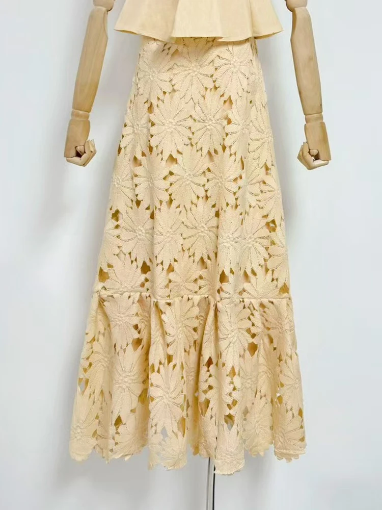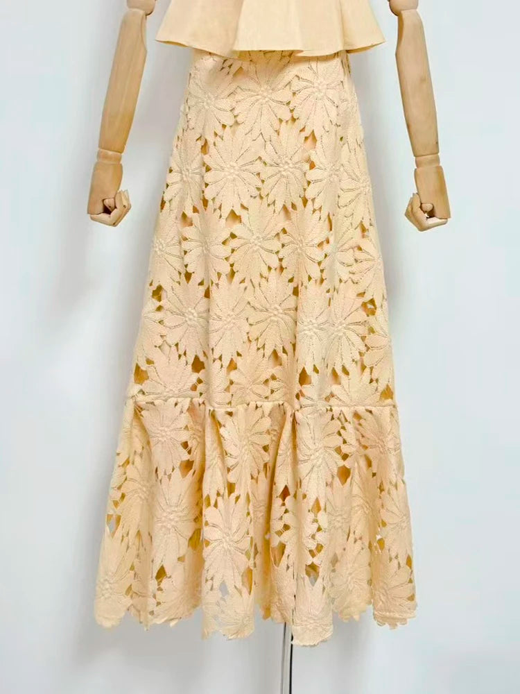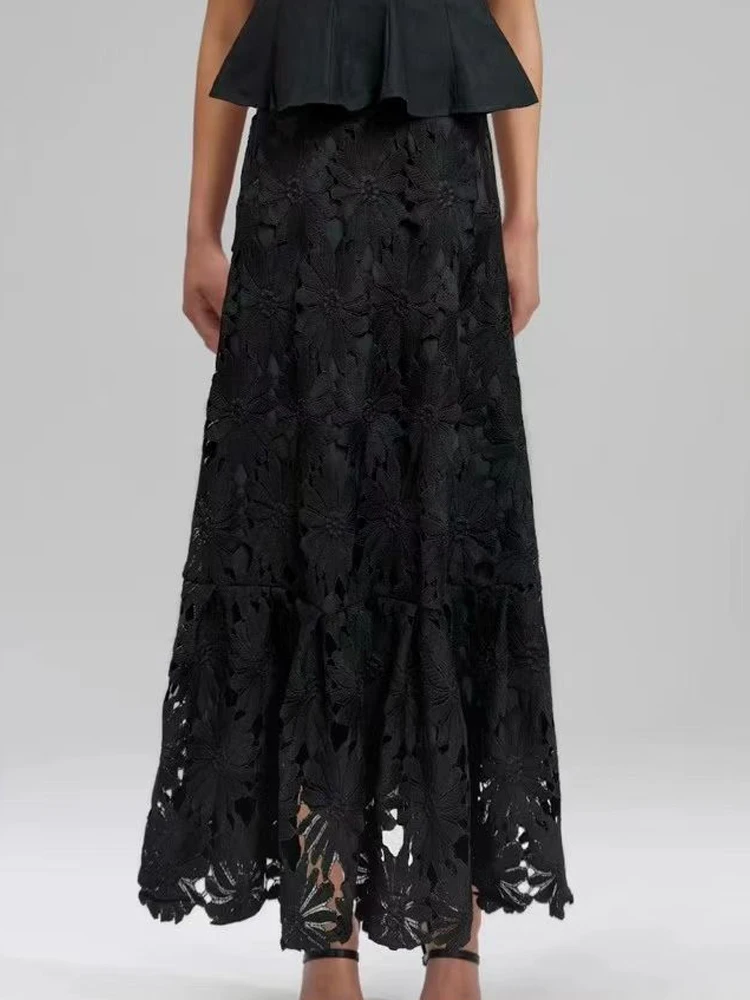 Purpdrank Yellow Crochet Sexy Hollow Out Retro Lace Long Skirts for Women 2025 Summer Fashion High Waist Strechy Elegant Party Skirt Lady