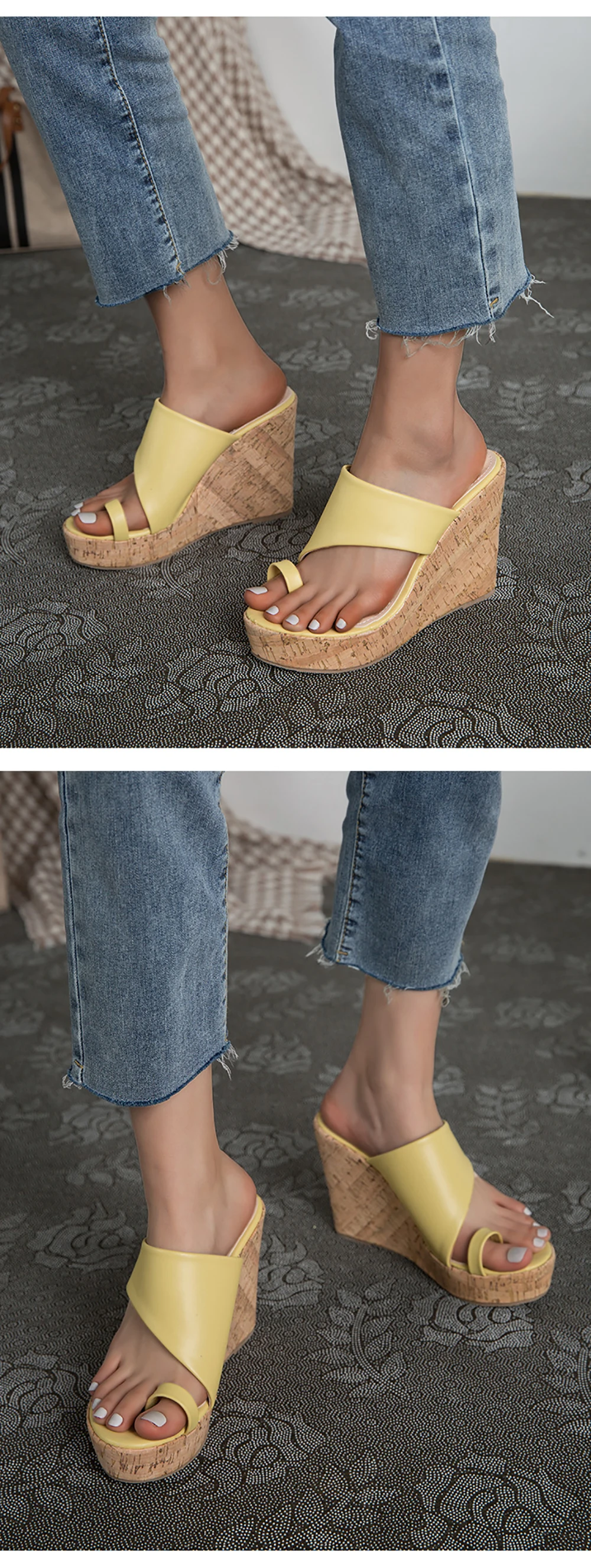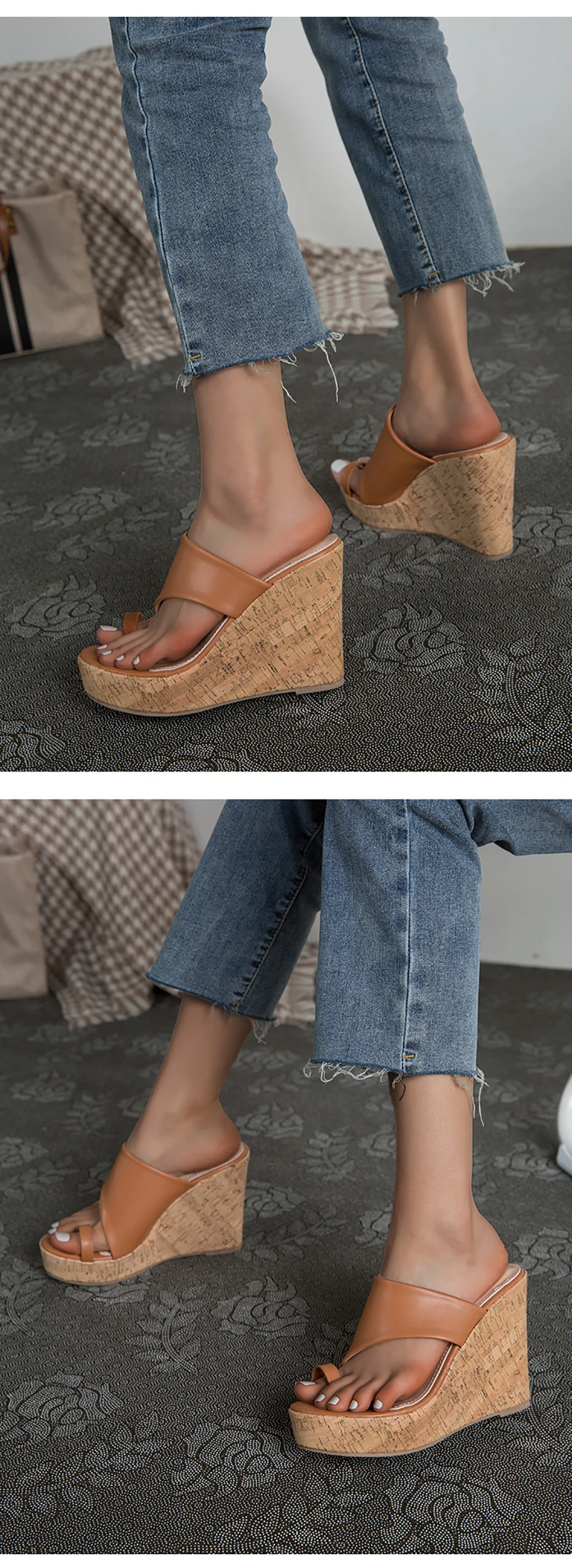 Purpdrank Summer New Large Size Women's Shoes Fashion Wear Slippers Thick Soled Slope Heel Muffin Sandals Women Wedge Heel Flip Flops
