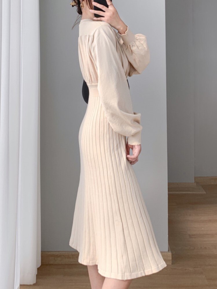 Purpdrank - Fashion New Autumn Women Knitted Long Dress Vintage Casual Pleated A-Line Solid Party Vestidos Female Chic Sweater Robe Mujers