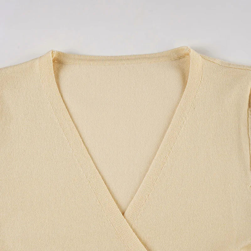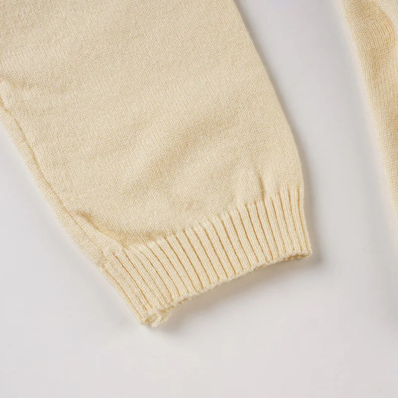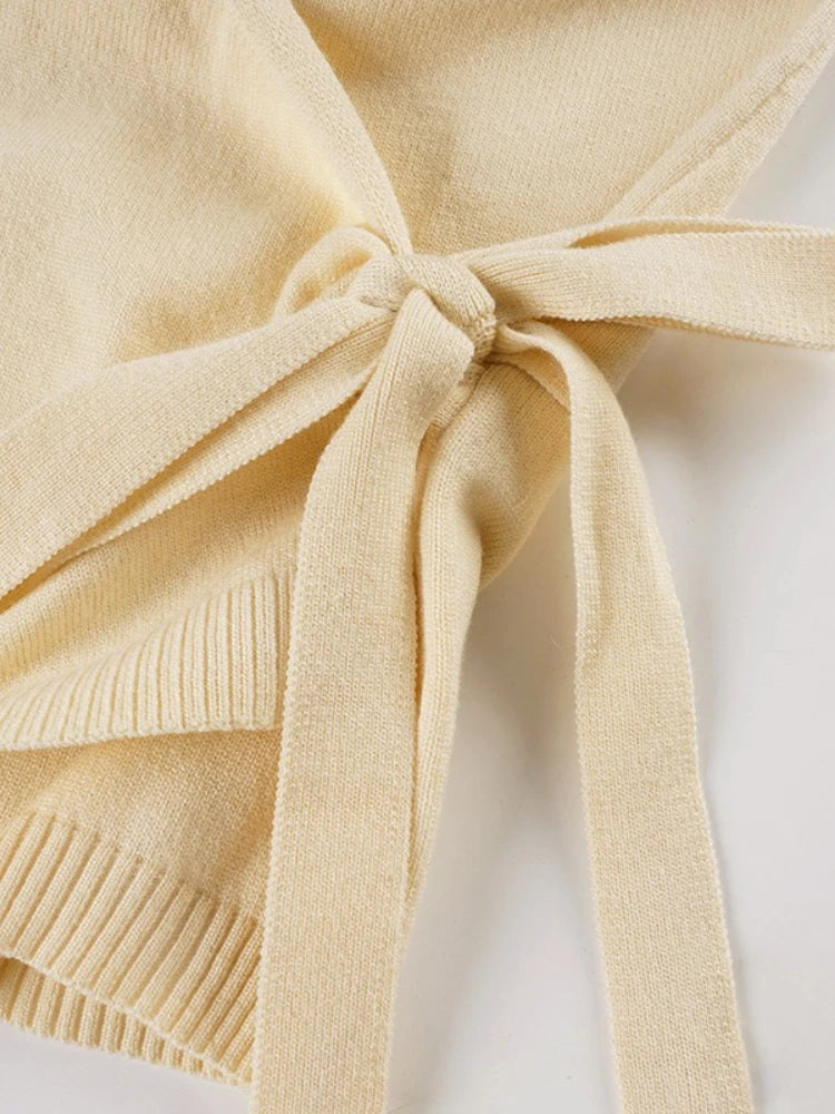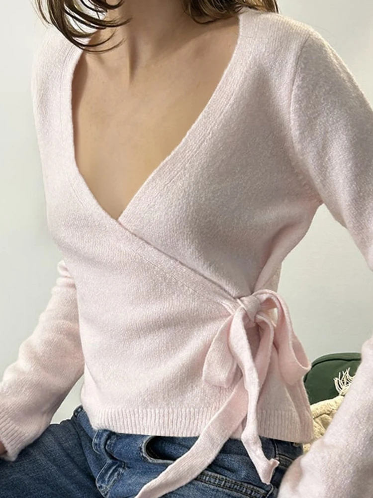 Purpdrank Autumn Streetwear All Match V Neck Long Sleeve Solid Y2k Knitted Bandage Cardigan