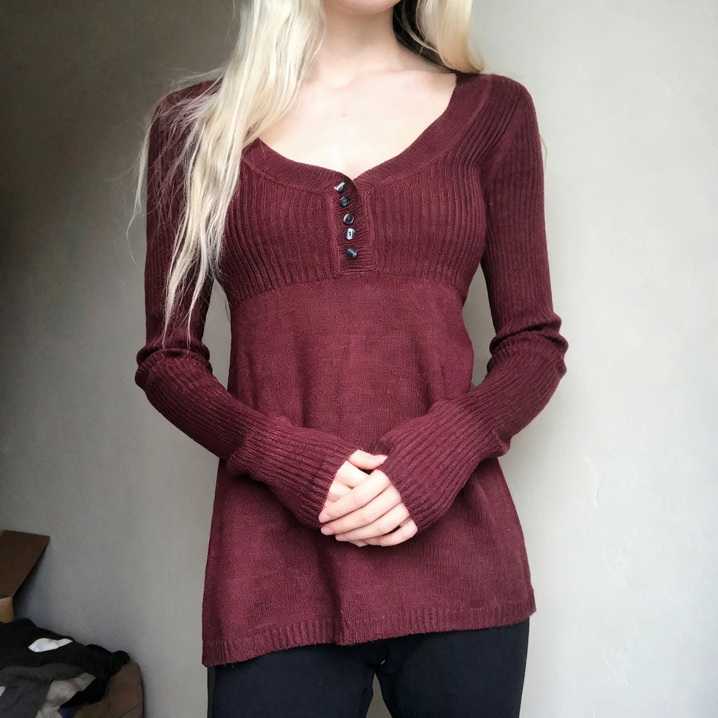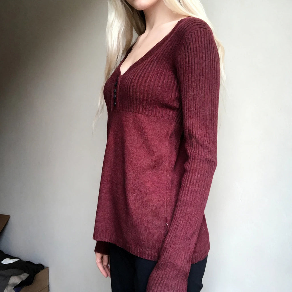 Purpdrank Casual Basic Ribbed Knitted Sweater Solid V-Neck Button Front Long Sleeve Pullover Women Autumn Winter Y2K Streetwear Lady