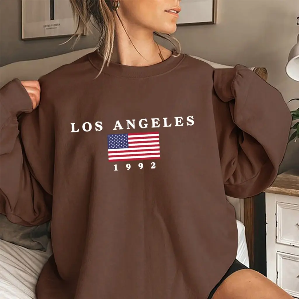 Purpdrank Women's Autumn Winter Fashion Casual Long-Sleeved Fleece-Lined round Neck Pullover Sweater Letter Print Loose Fit with Collar