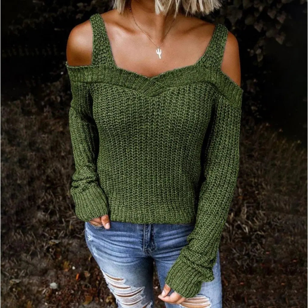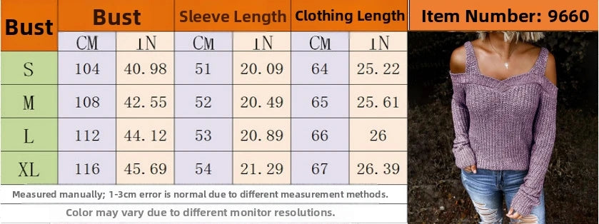 Purpdrank  Women's Off-Shoulder Sweater Sexy Sling Long Sleeve Solid Color Casual Autumn European And American Style