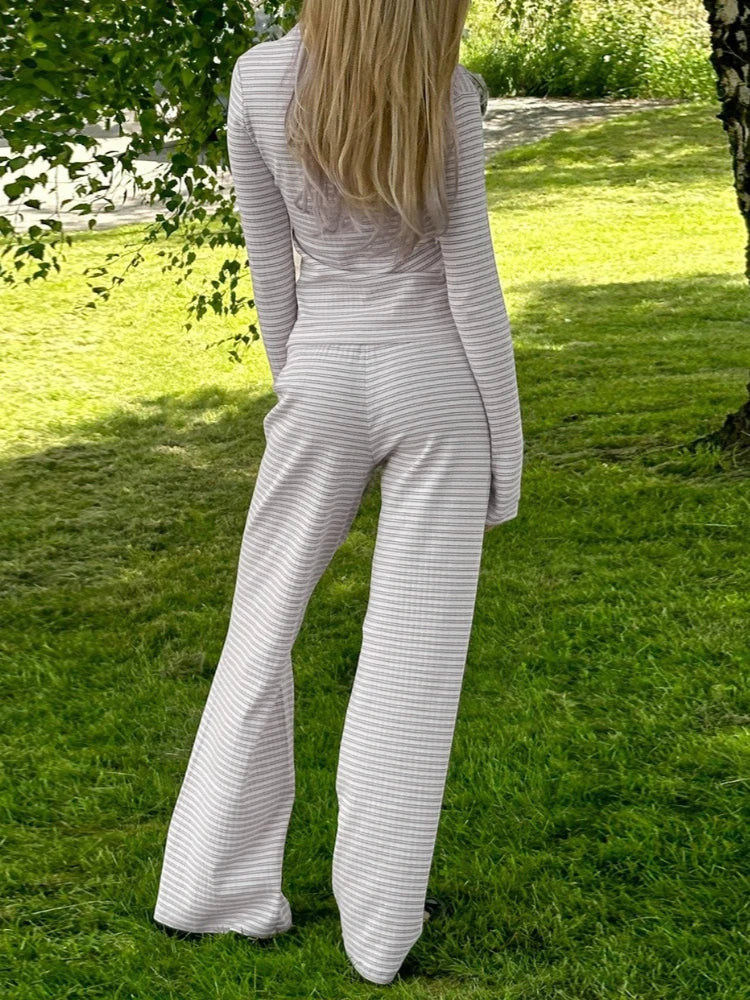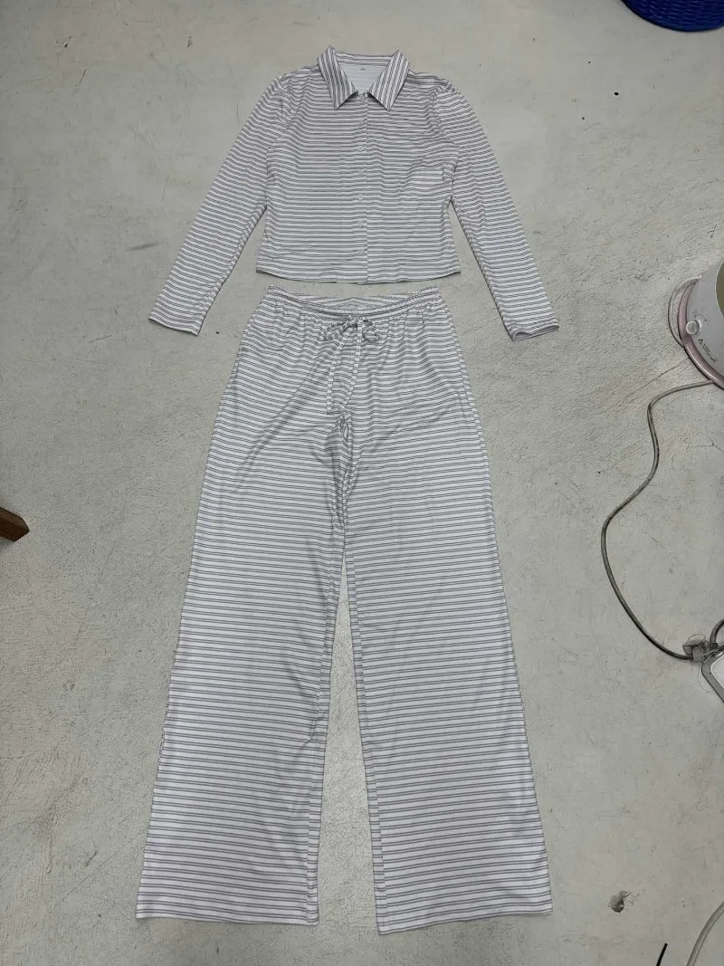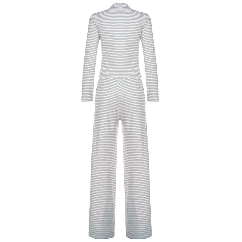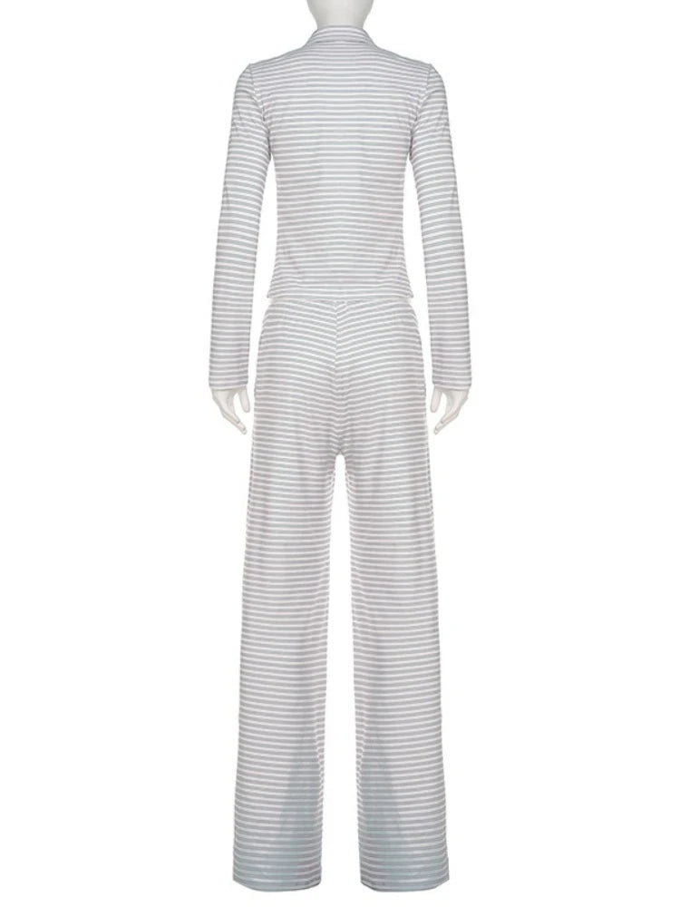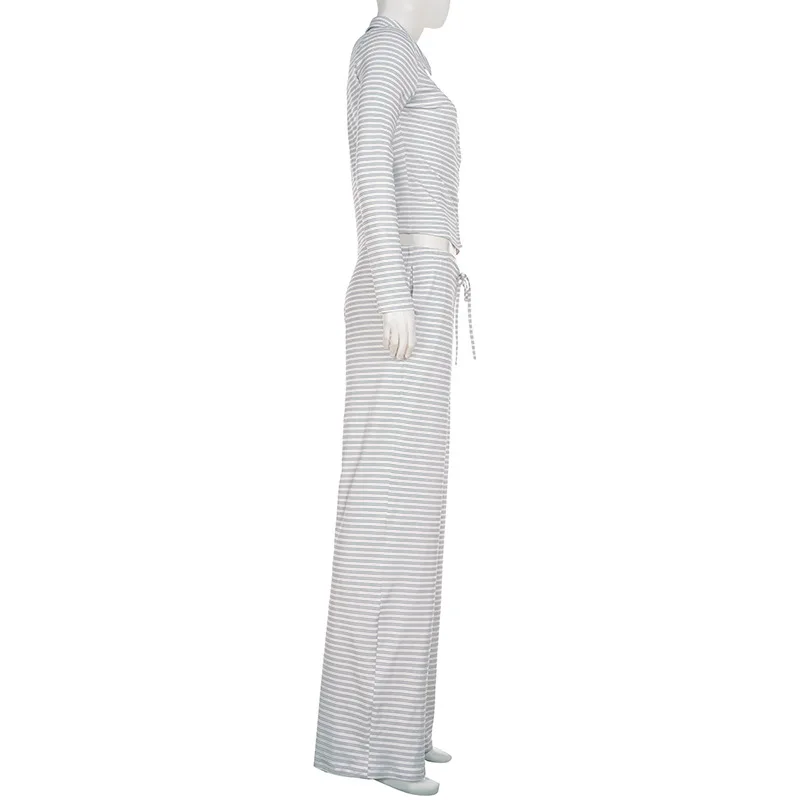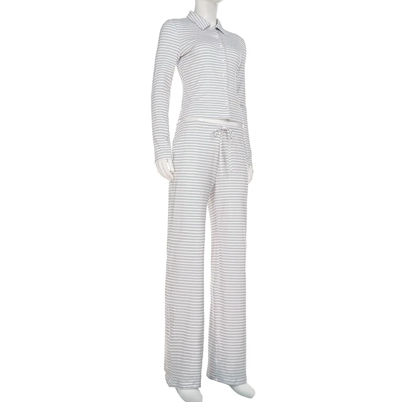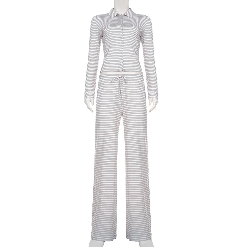 Purpdrank Women's Striped Lounge Set Casual Lapel Collar Long Sleeve Button Front Cardigan Top and Drawstring Long Pants 2 Piece Set