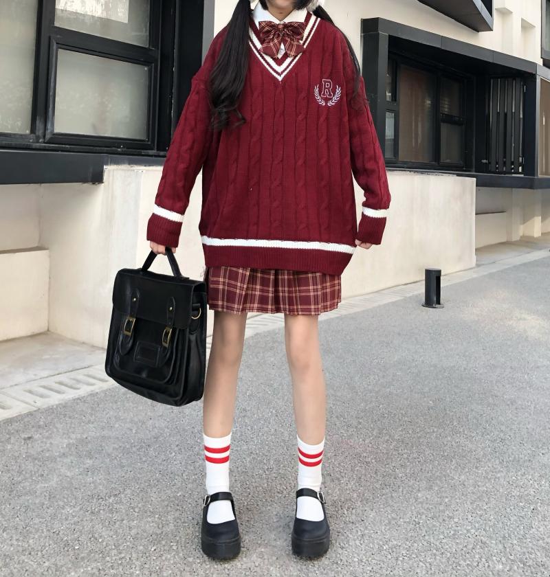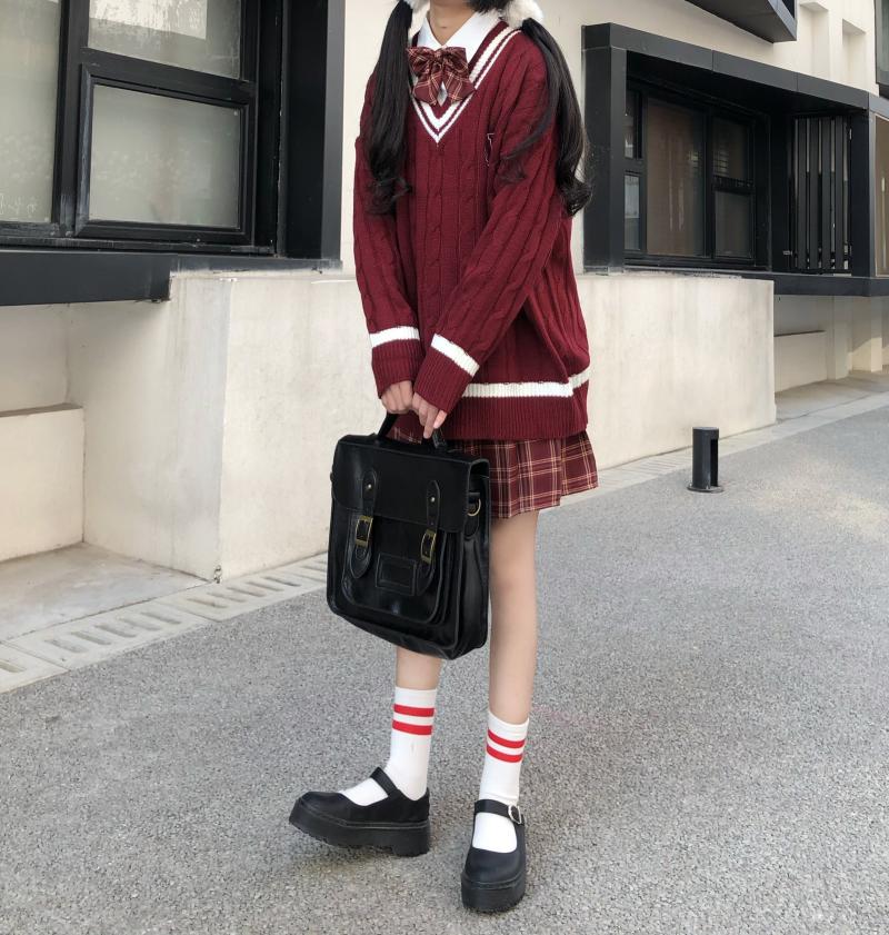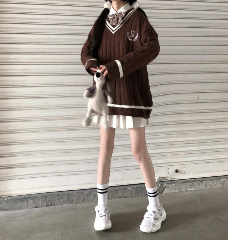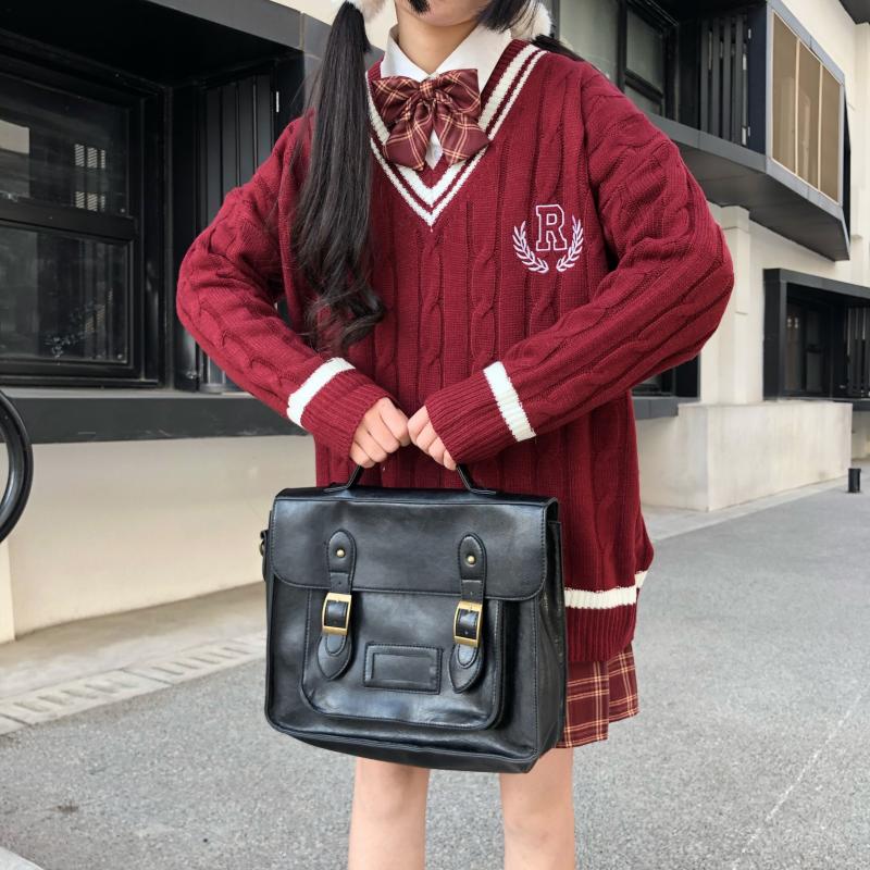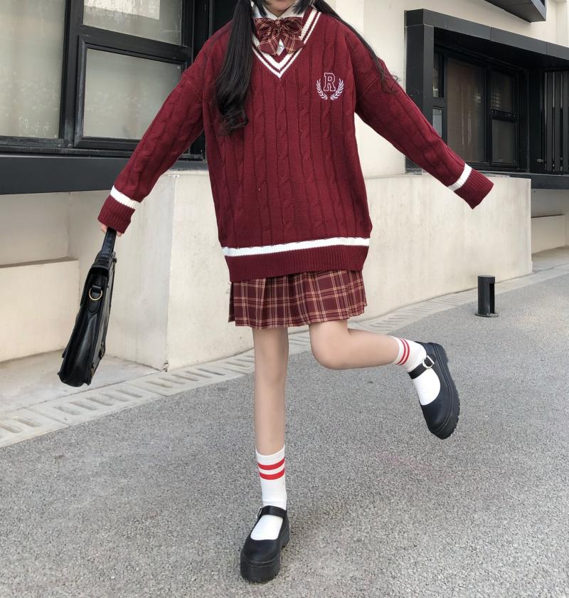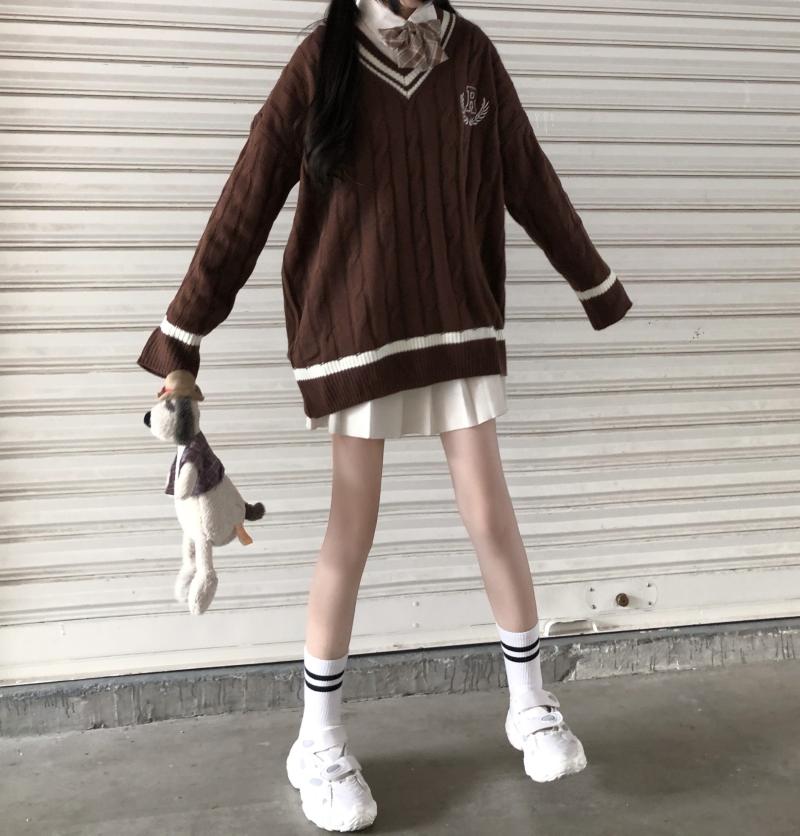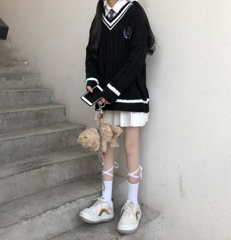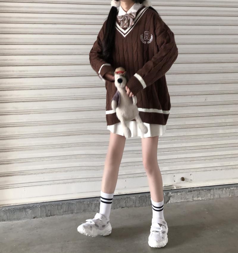 Purpdrank - New Japanese Wear Pullover Jk Sweater Loose V-Neck Regular Long SleevesStudent Hollow Out Knitting Loose Women Pullover