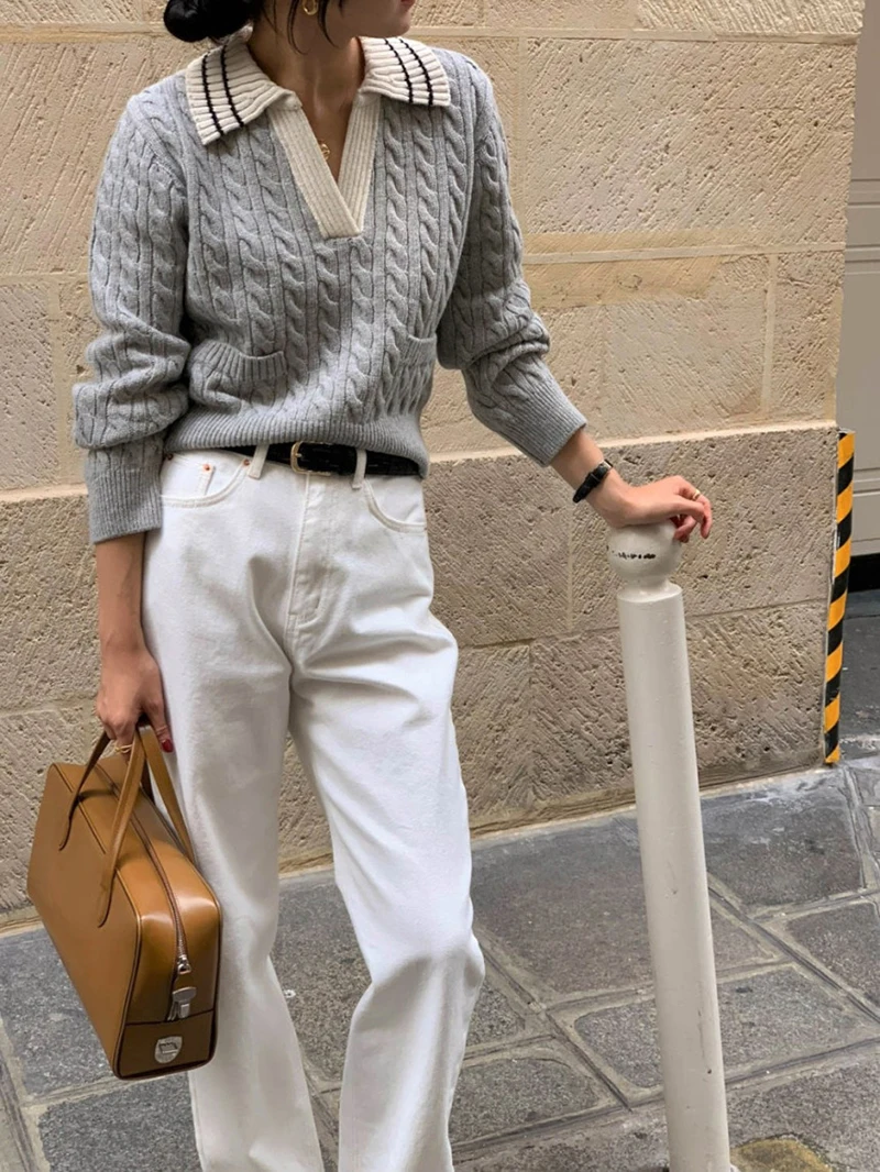 Purpdrank Streetwear Striped Sweater Women Fashion Patchwork Knitted Pullovers Korean V Neck Knitwears Fall Winter Long Sleeve Jumpers New