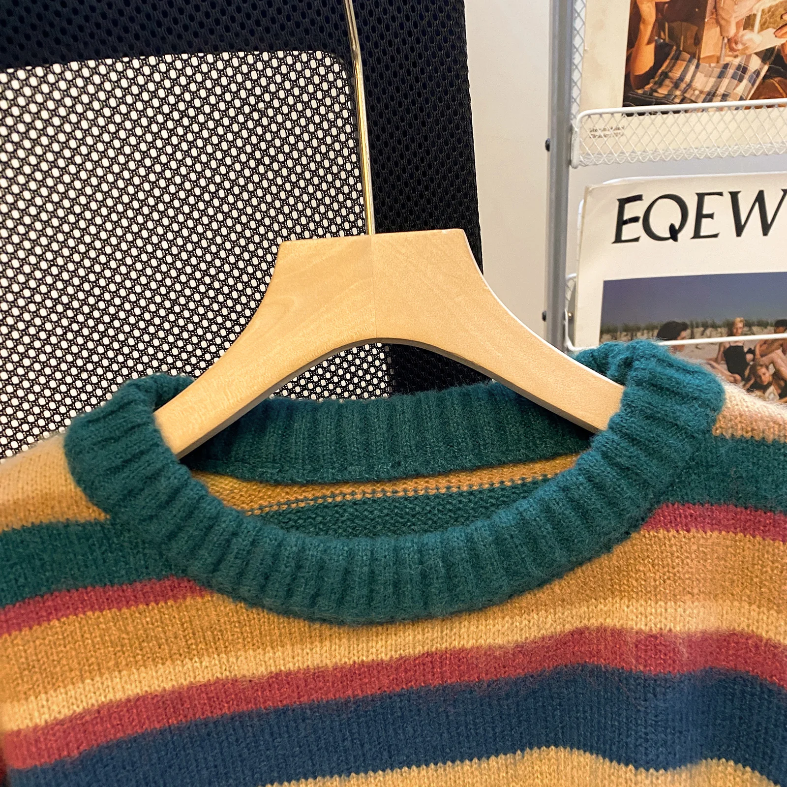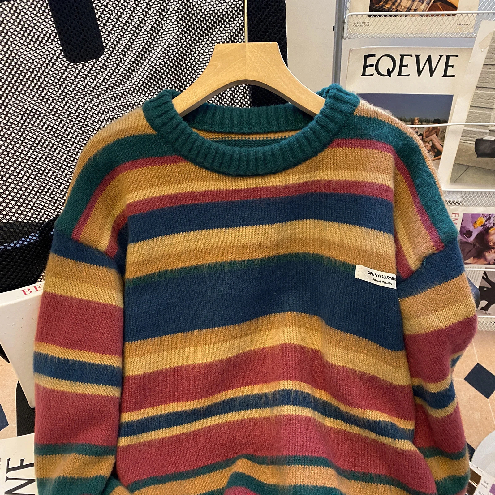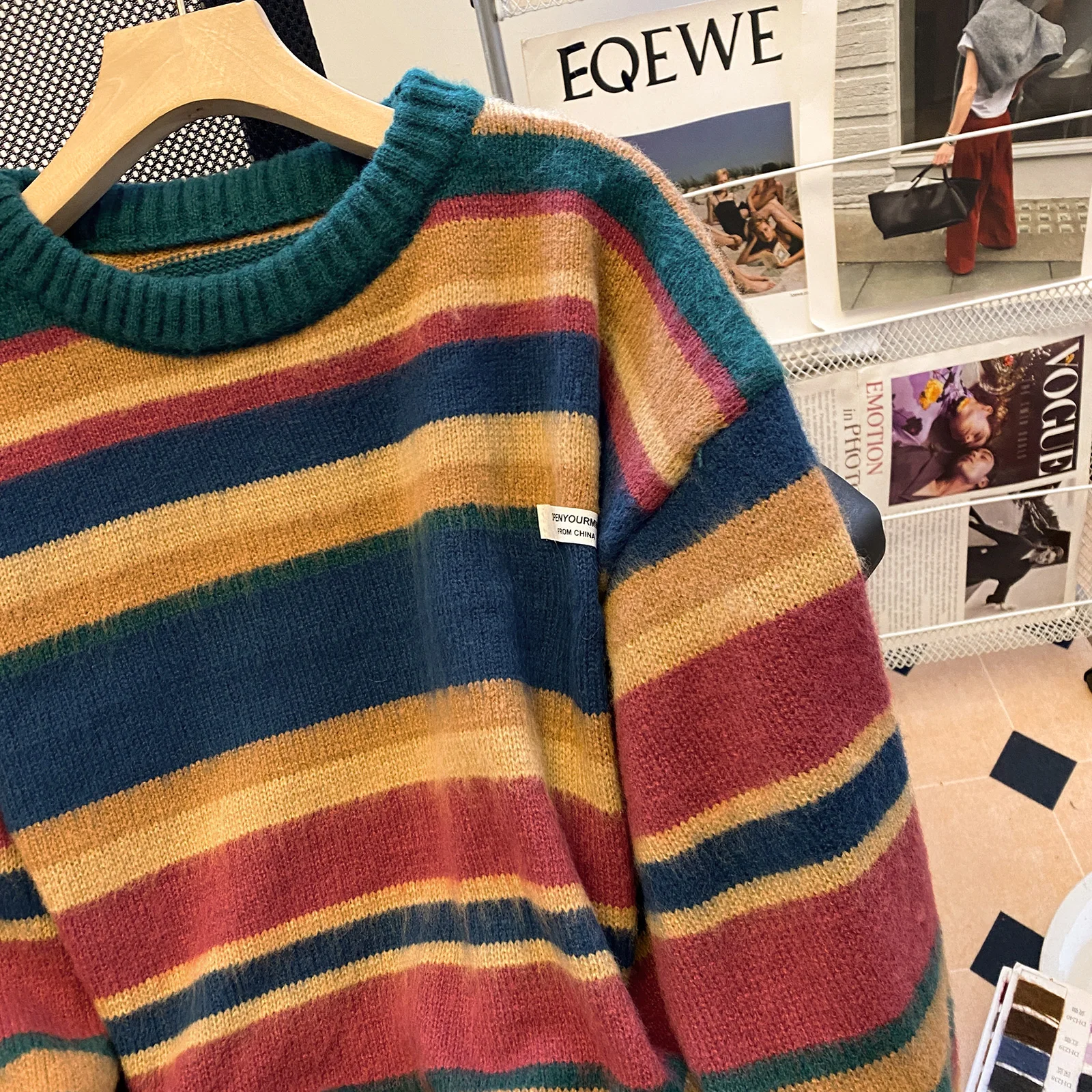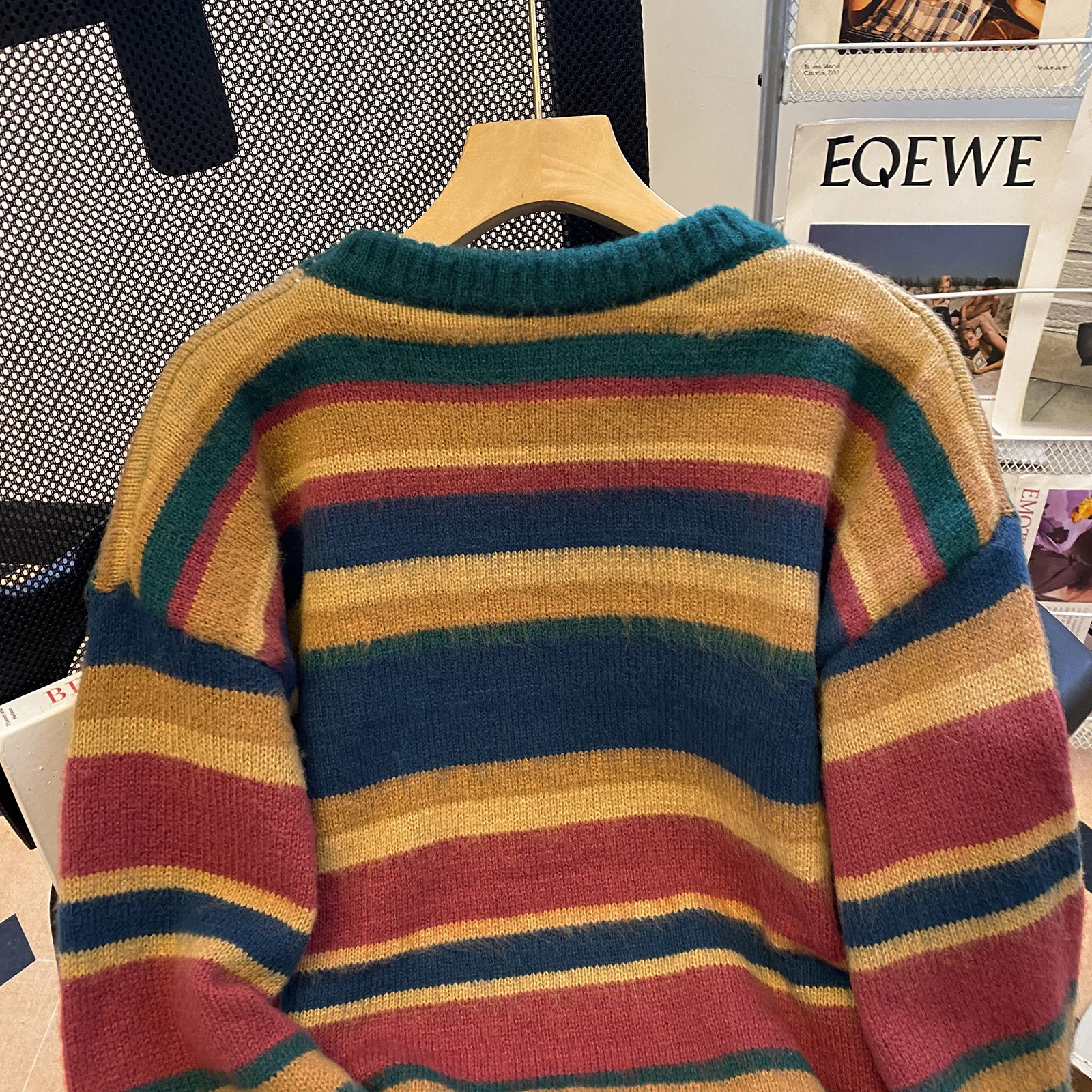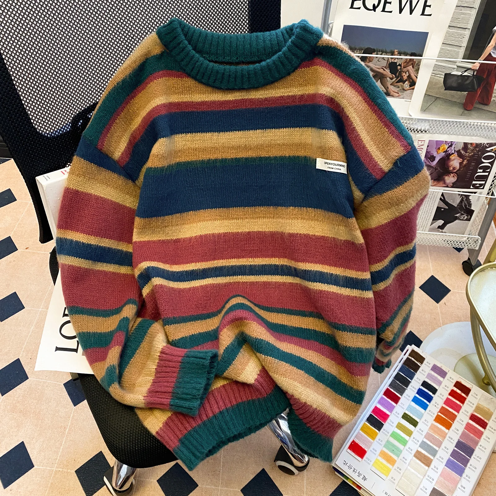 Purpdrank Striped Pullovers Women Baggy Casual Soft Long Sleeve Vintage Sweaters Warm Streetwear Ulzzang Fashion All-match Sueter Mujer
