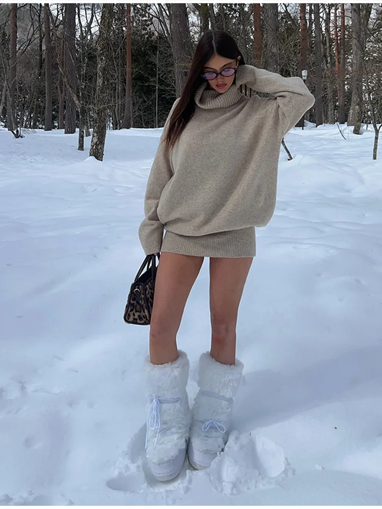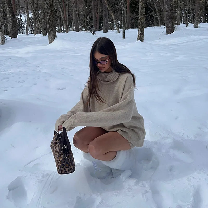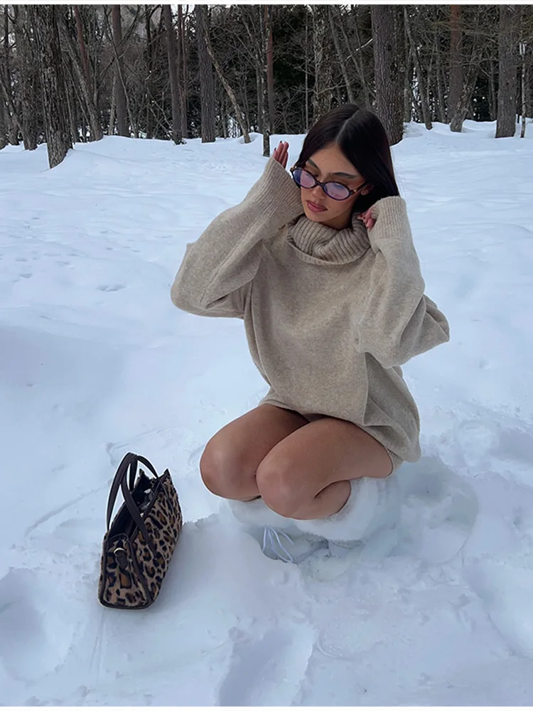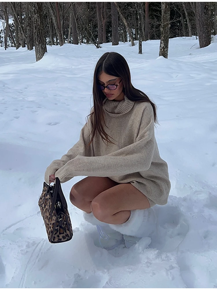 Purpdrank Stylish Solid High Collar Knitted Sweater Women's Thicken New Lazy Style Loose Pullovers 2025 Autumn Winter Lady Casual Knitwear
