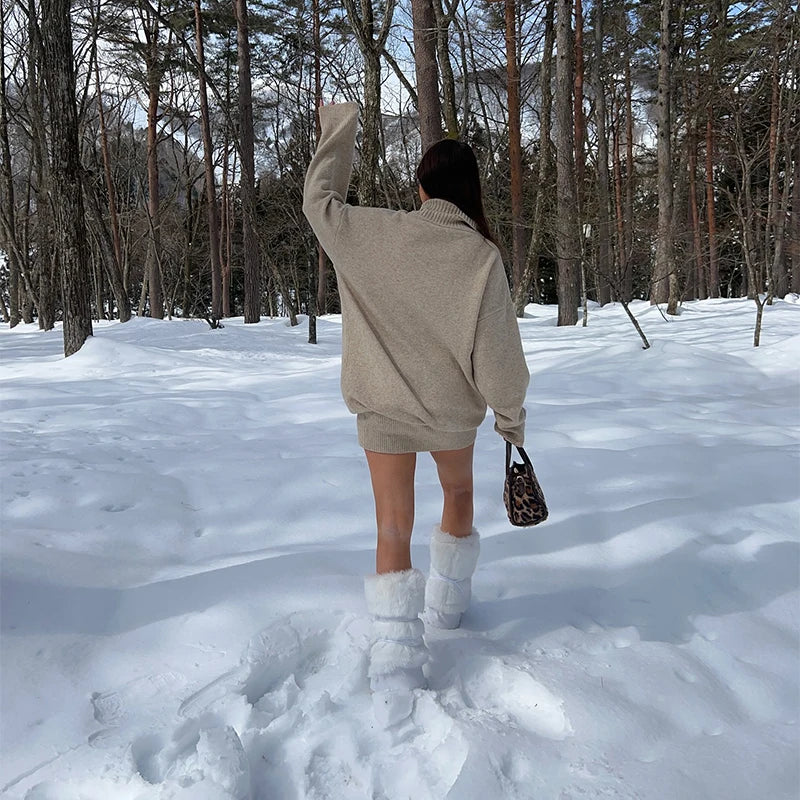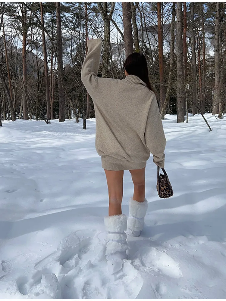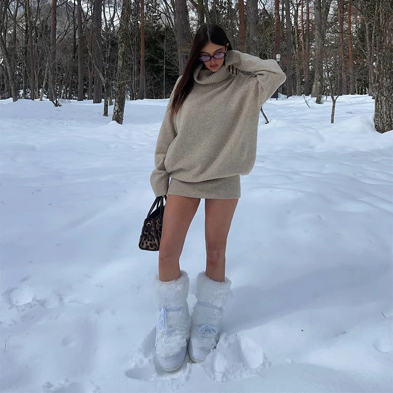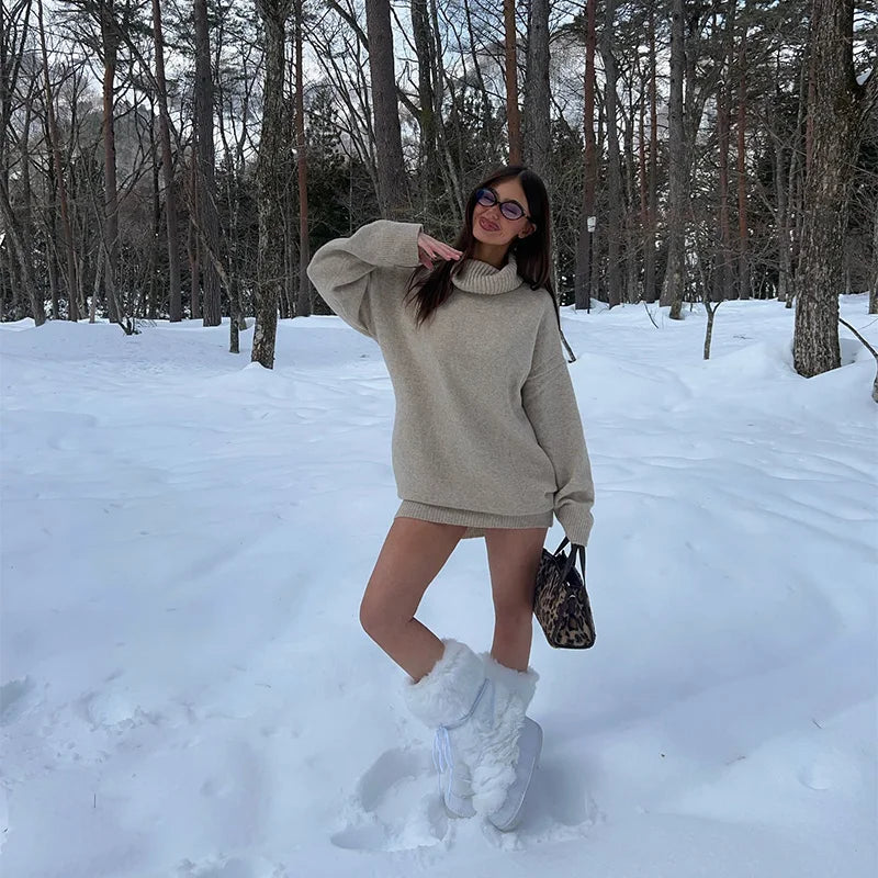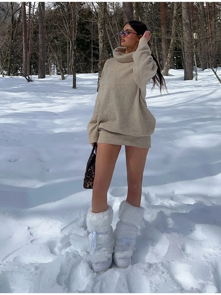 Purpdrank Stylish Solid High Collar Knitted Sweater Women's Thicken New Lazy Style Loose Pullovers 2025 Autumn Winter Lady Casual Knitwear