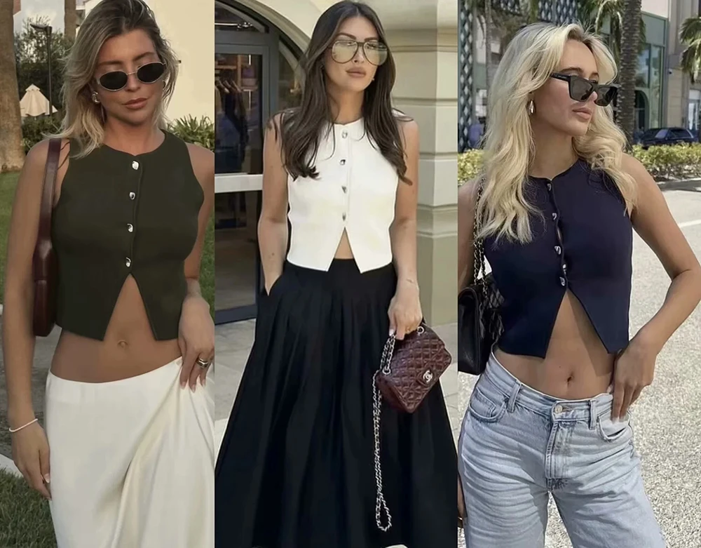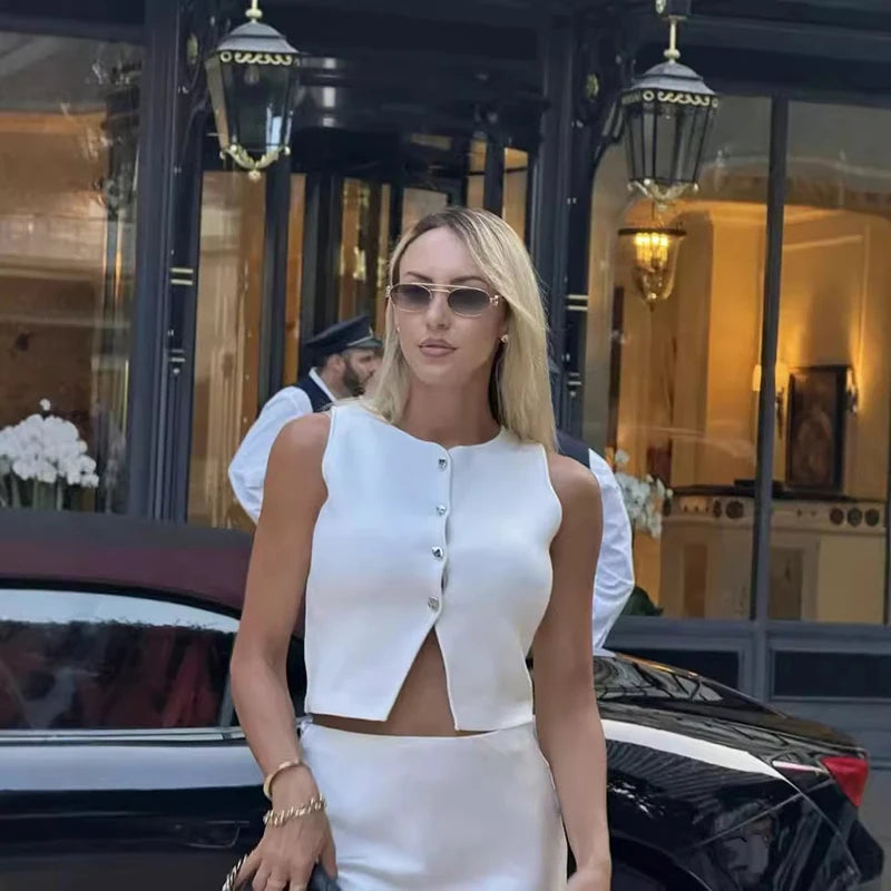 Purpdrank Women's 2025 Fall Slim Fit Cropped Knit Vest Asymmetrical Ribbed Sleeveless White Sweater Vest for Office Casual Summer Wear