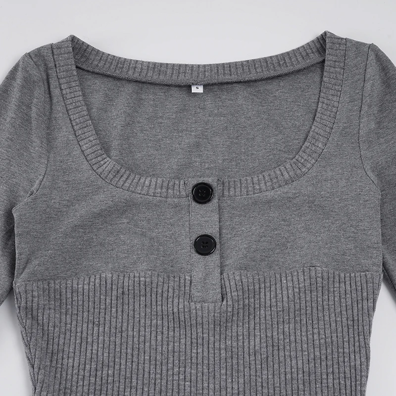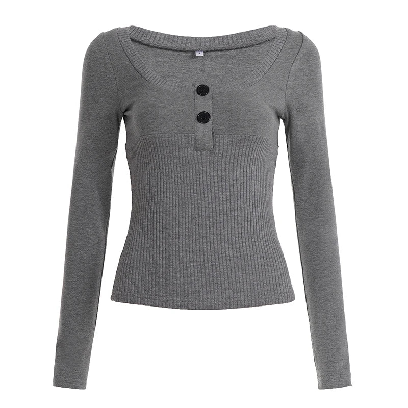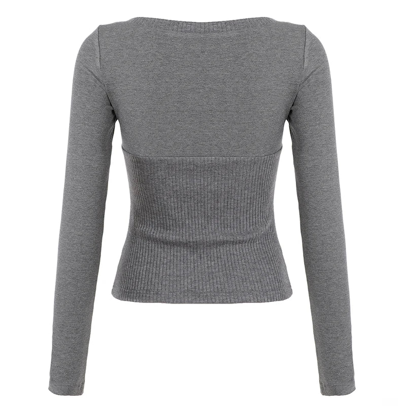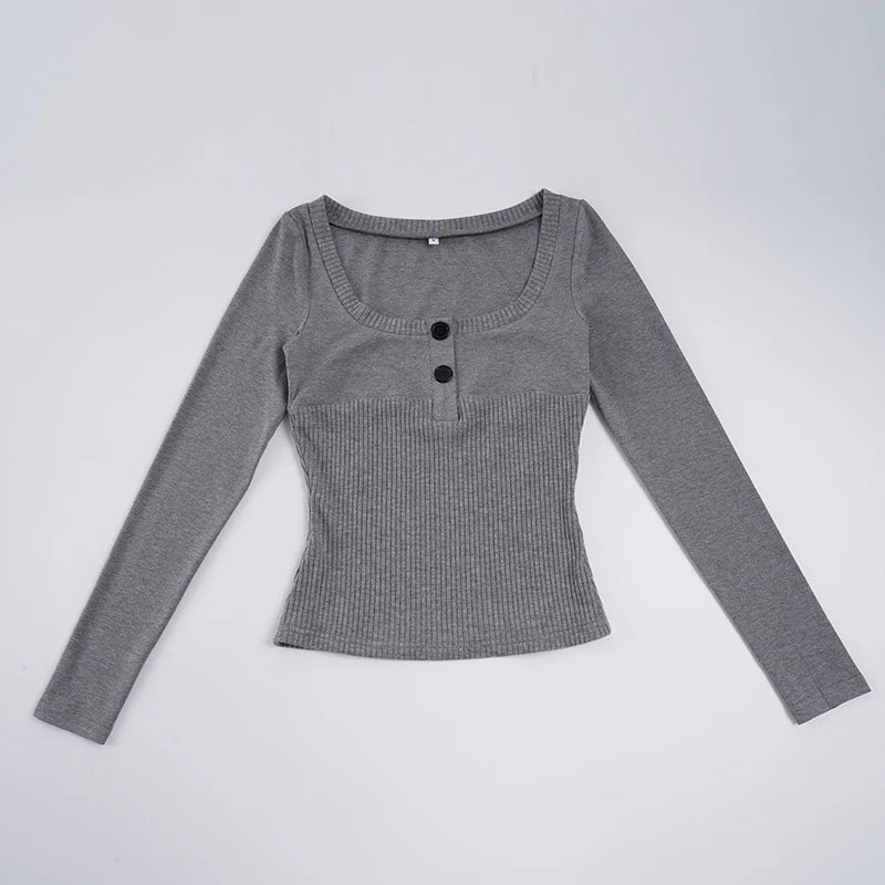 Purpdrank Casual Solid T Ribbed Shirt Basic Slim-Fit U-Neck Long Sleeve Tees Women Autumn Spring Fashion Streetwear Layering Tops
