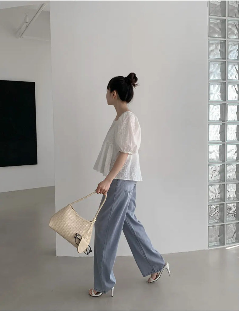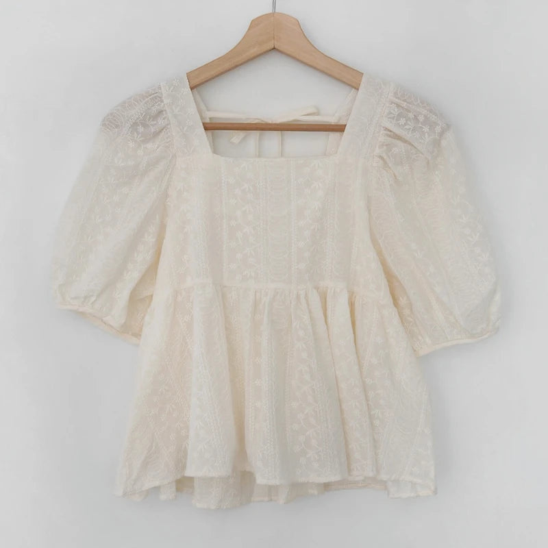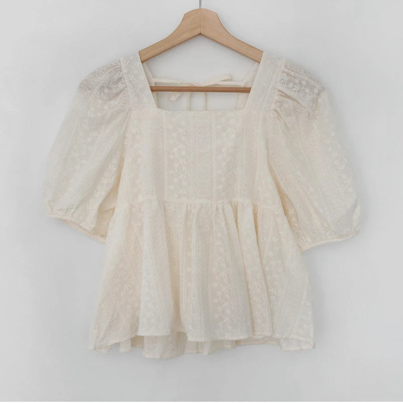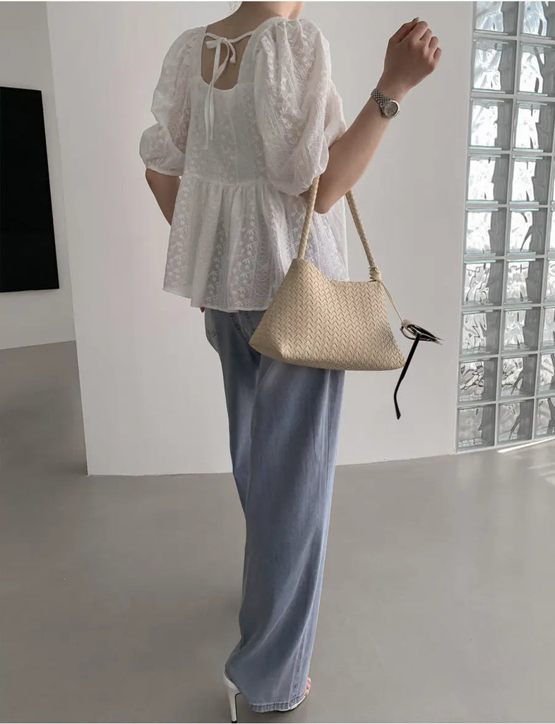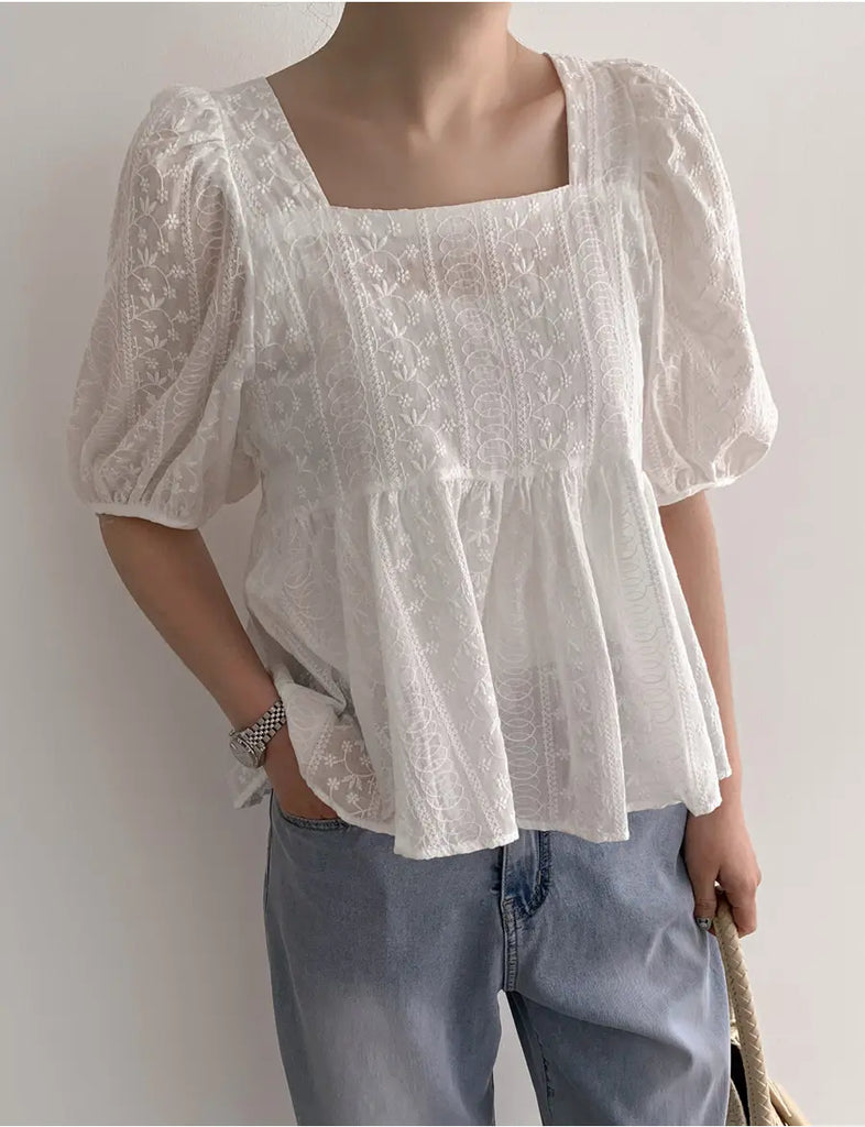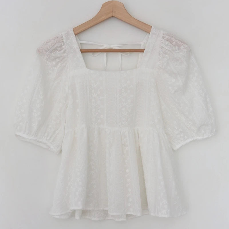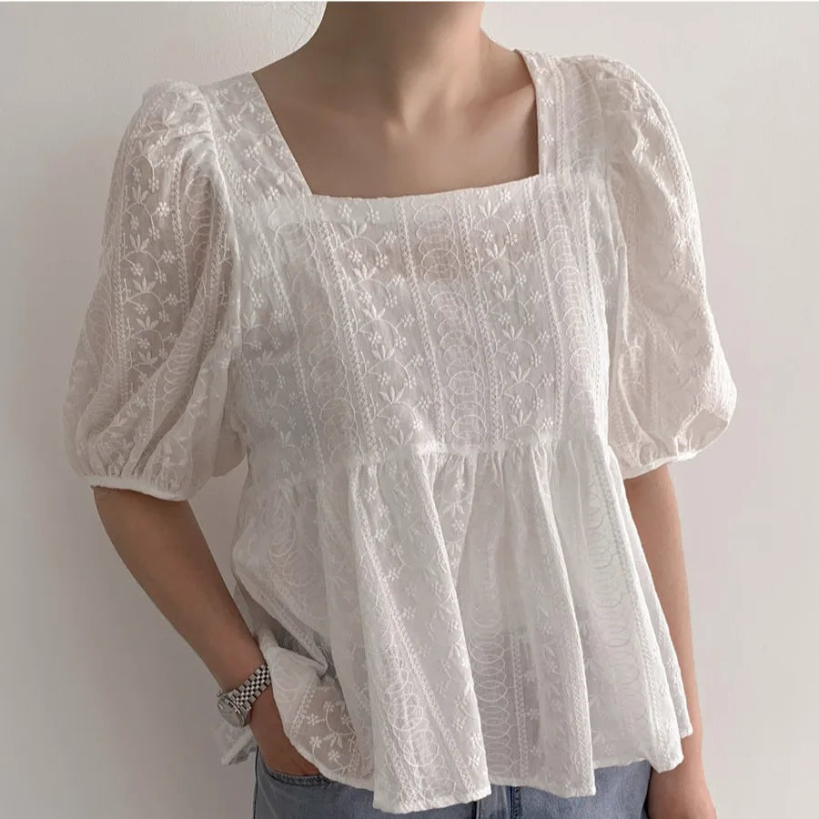Purpdrank Summer Cotton Puff Sleeve Women's T-shirts 2025 New Square Collar Backless Hollow Out Casual Loose Shirts Tops Female