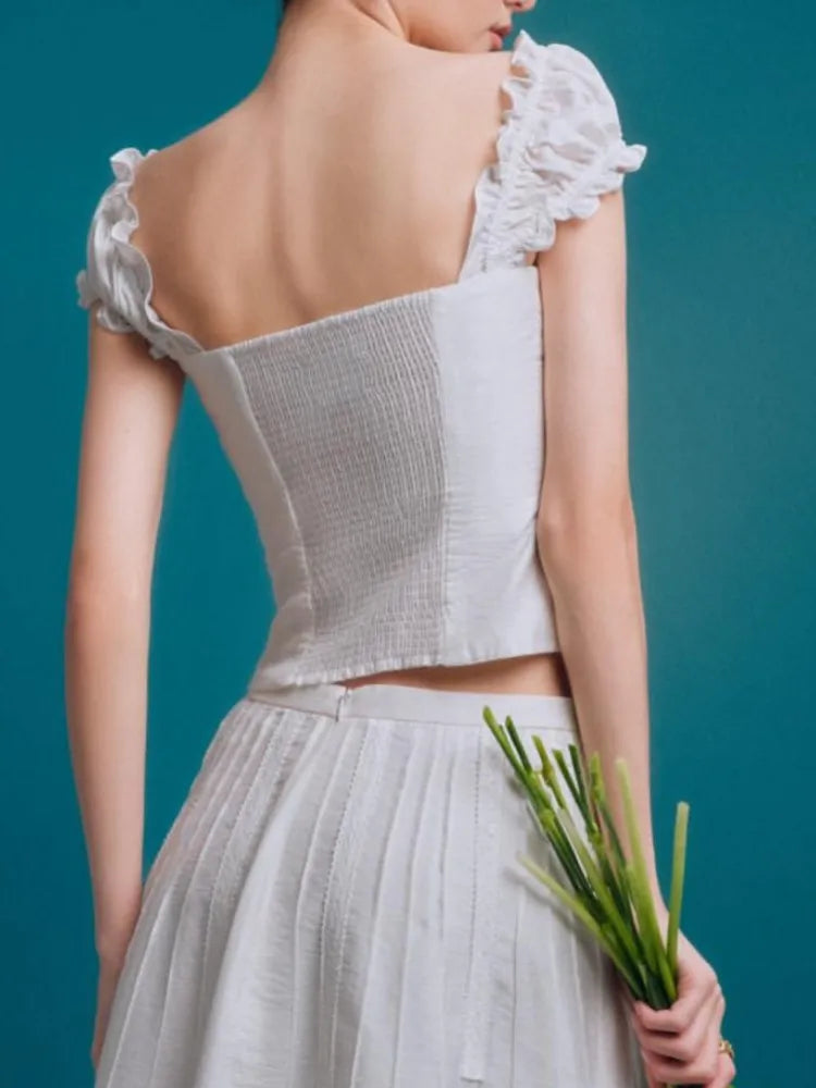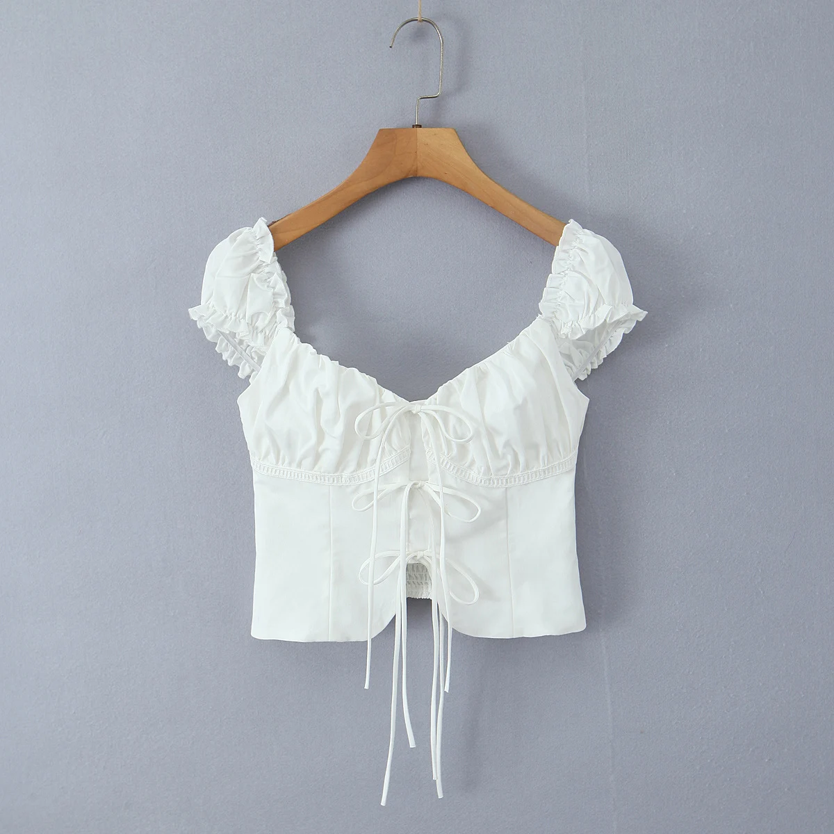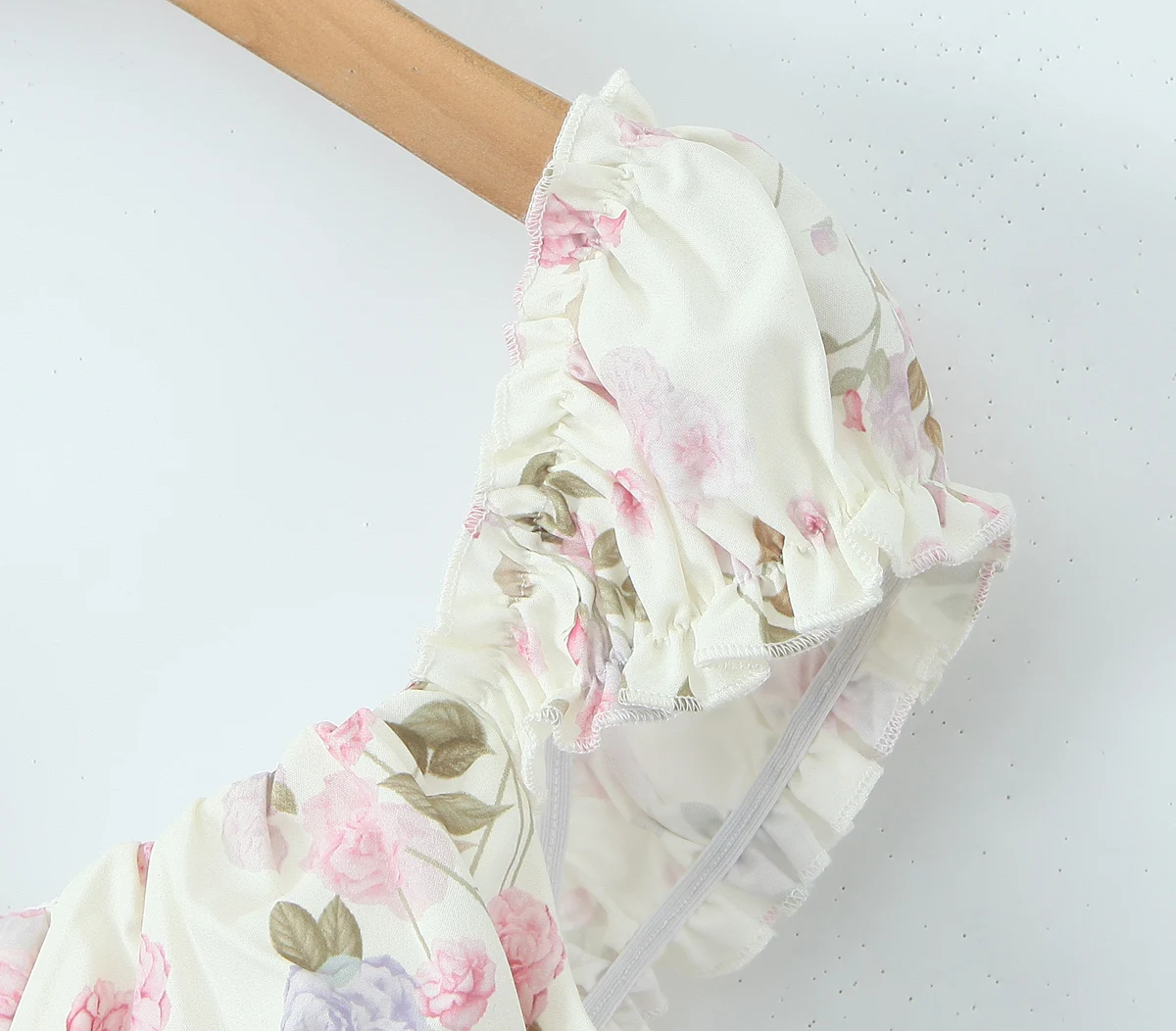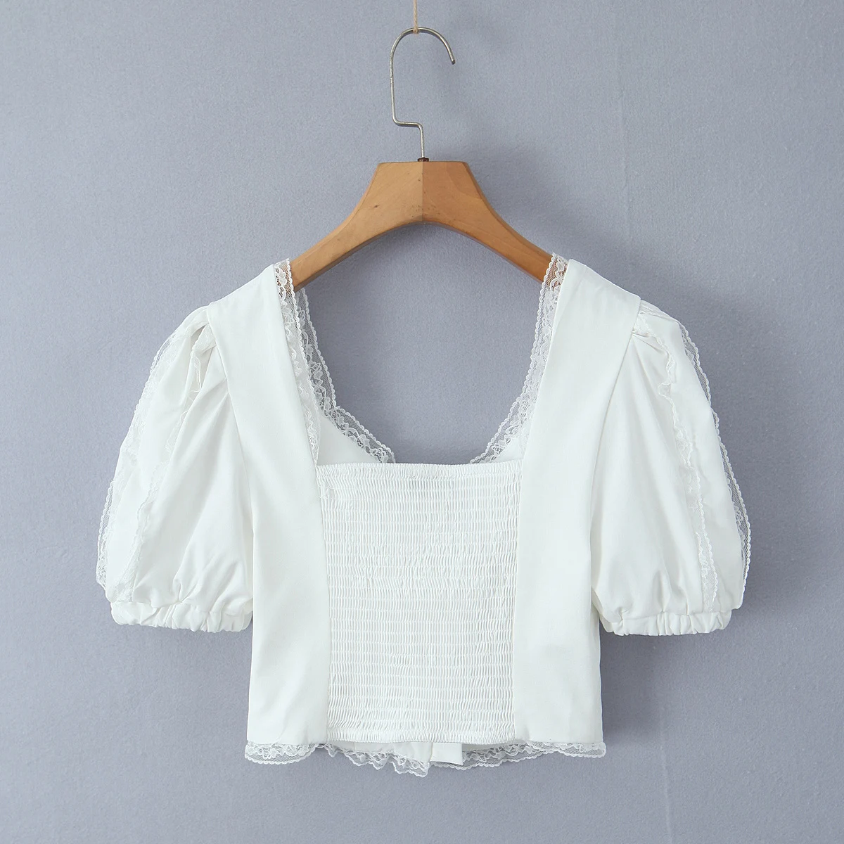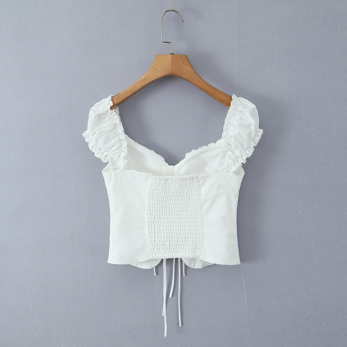 Purpdrank Summer Puff Sleeve French Floral Printed Shirts Elastic Back Sexy Crop Tops Slim Short Top