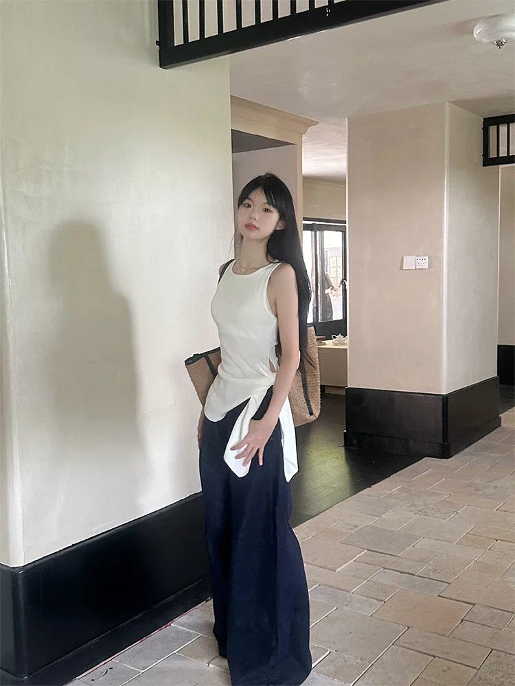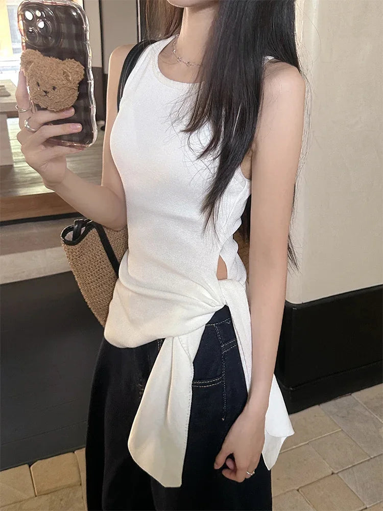 Purpdrank Summer Strap Knitting Camisole Women Sexy Silm All-Match White Tight Tops Female Streetwear Blue Tank Clothes 2025
