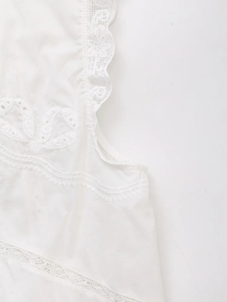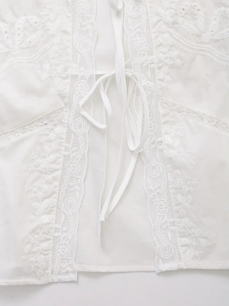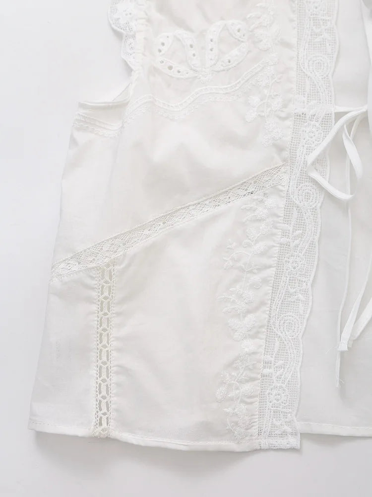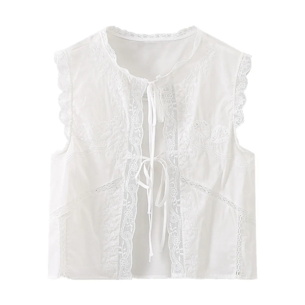 Purpdrank Summer White Embroidery Flower Spliced Lace Sleeveless Tank Women Lacing Up Bow Front Loose Tank Top Crop Tops