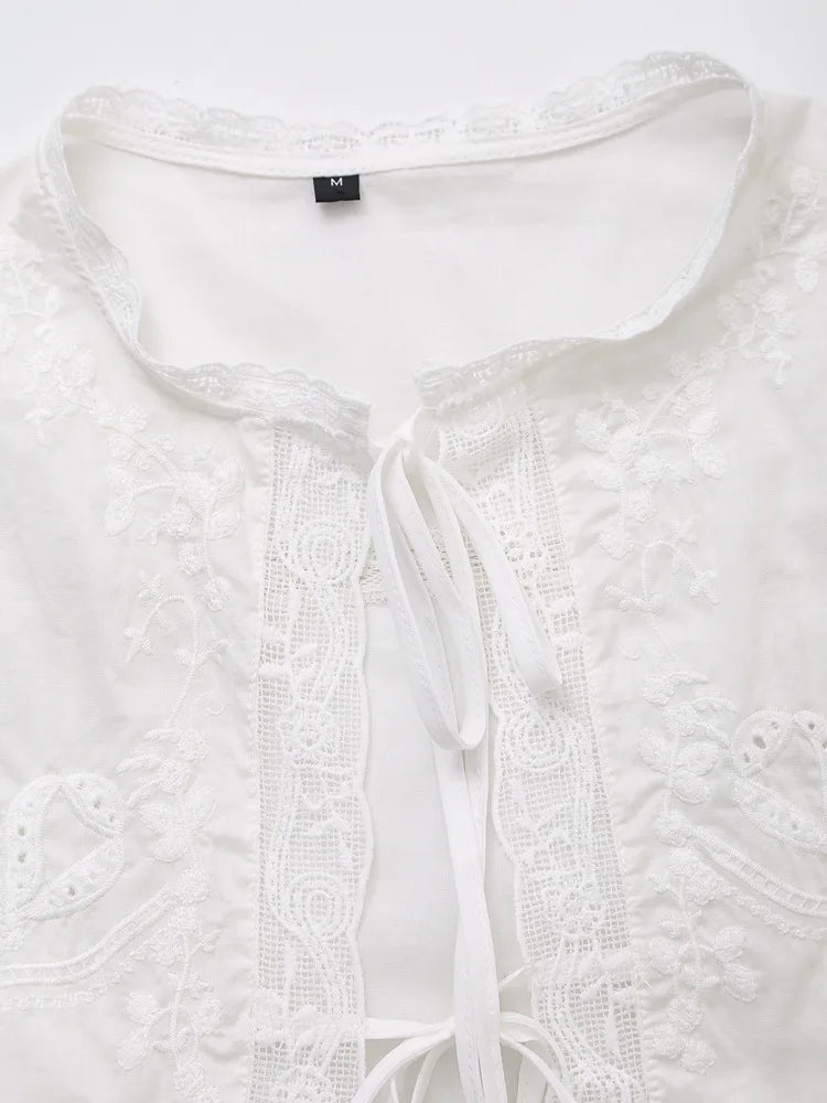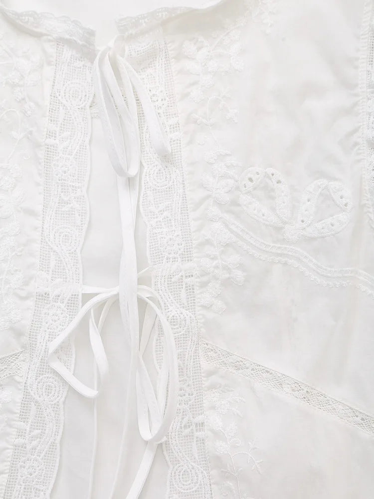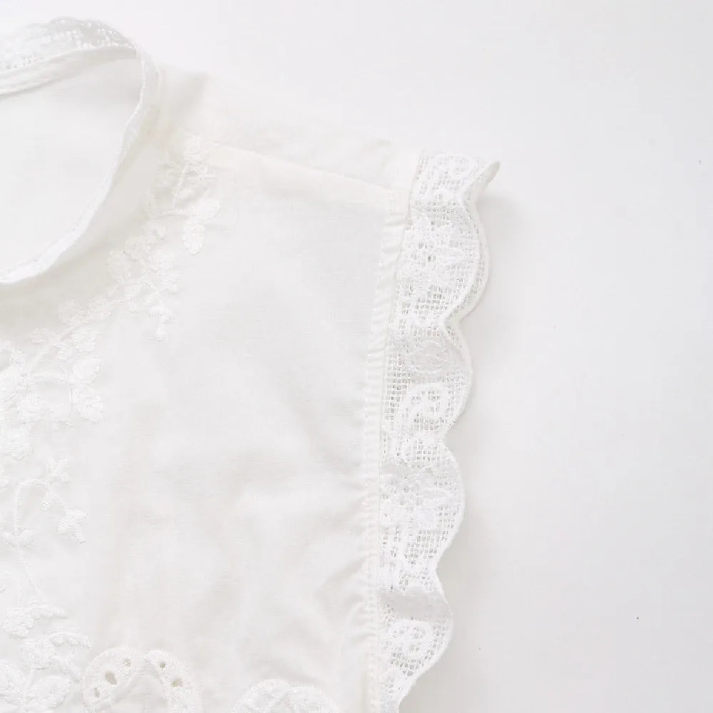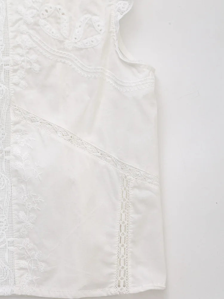 Purpdrank Summer White Embroidery Flower Spliced Lace Sleeveless Tank Women Lacing Up Bow Front Loose Tank Top Crop Tops