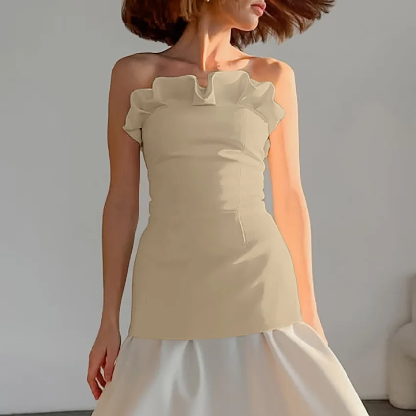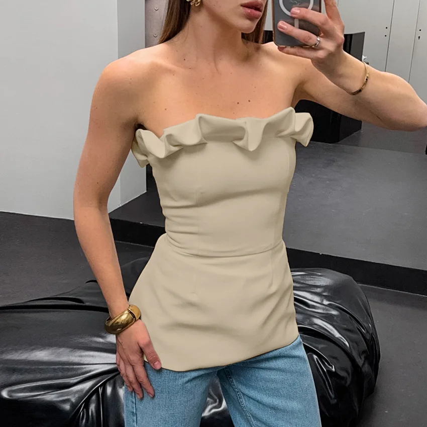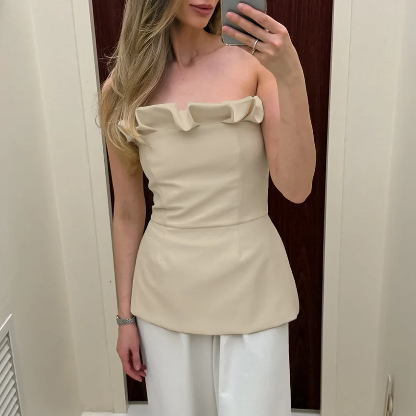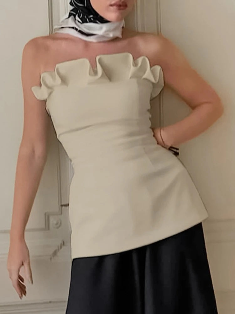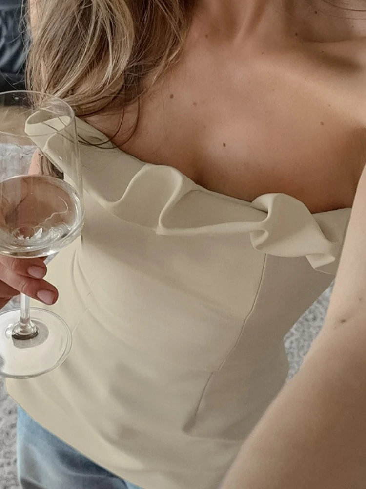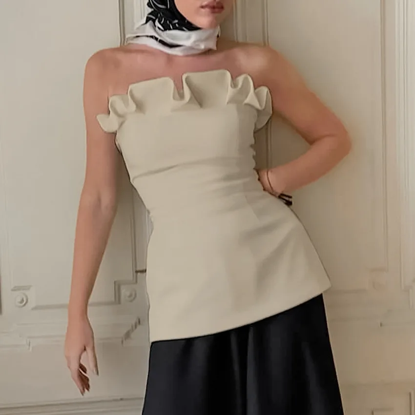 Purpdrank Summer Y2k Sexy Solid Off Shoulder Ruffles All Match Slight Strech Tank Tops