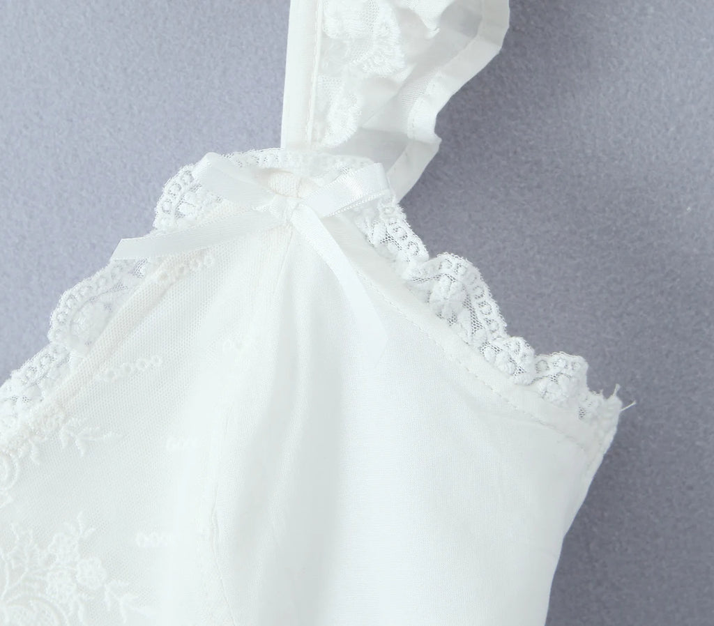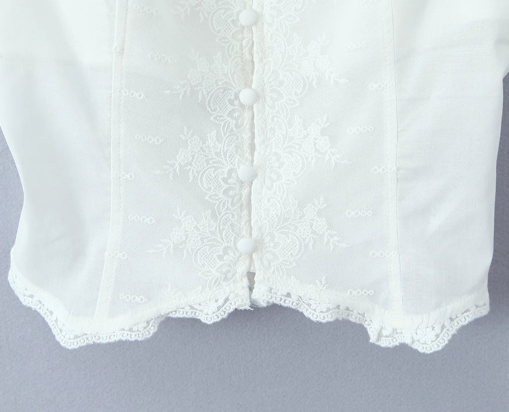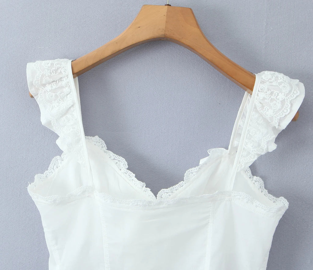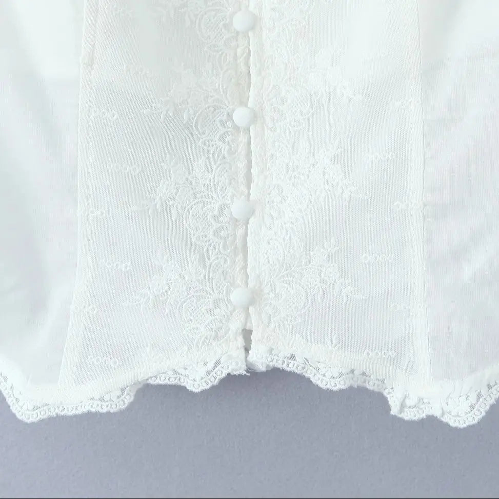 Purpdrank White Spliced Mesh Lace Sexy Corset Women Summer Tank Tops Wood ears V neck Front Buttons Slim Through Buttons Crop Top