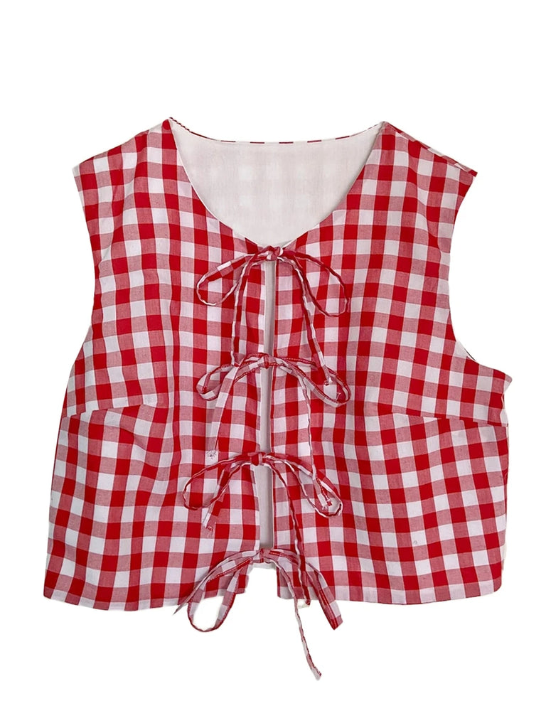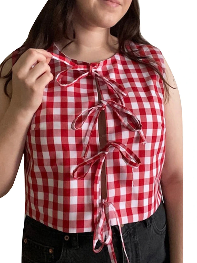 Purpdrank Women Tie Front Crop Tank Tops Casual Summer Plaid Print Reversible Vest Sleeveless Shirt Aesthetic Clothes for Streetwear