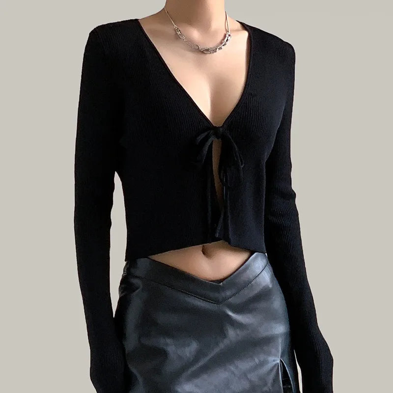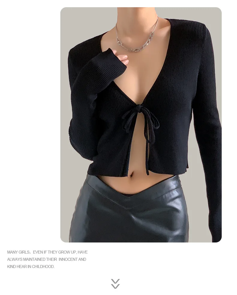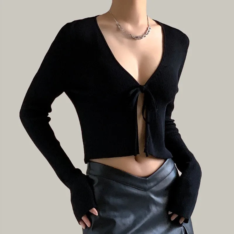 Purpdrank Women's Spring Autumn Knitwear Tops Sexy Long Sleeve Short Solid Color Pullover Round Neck Casual Design Retro Simple Advanced