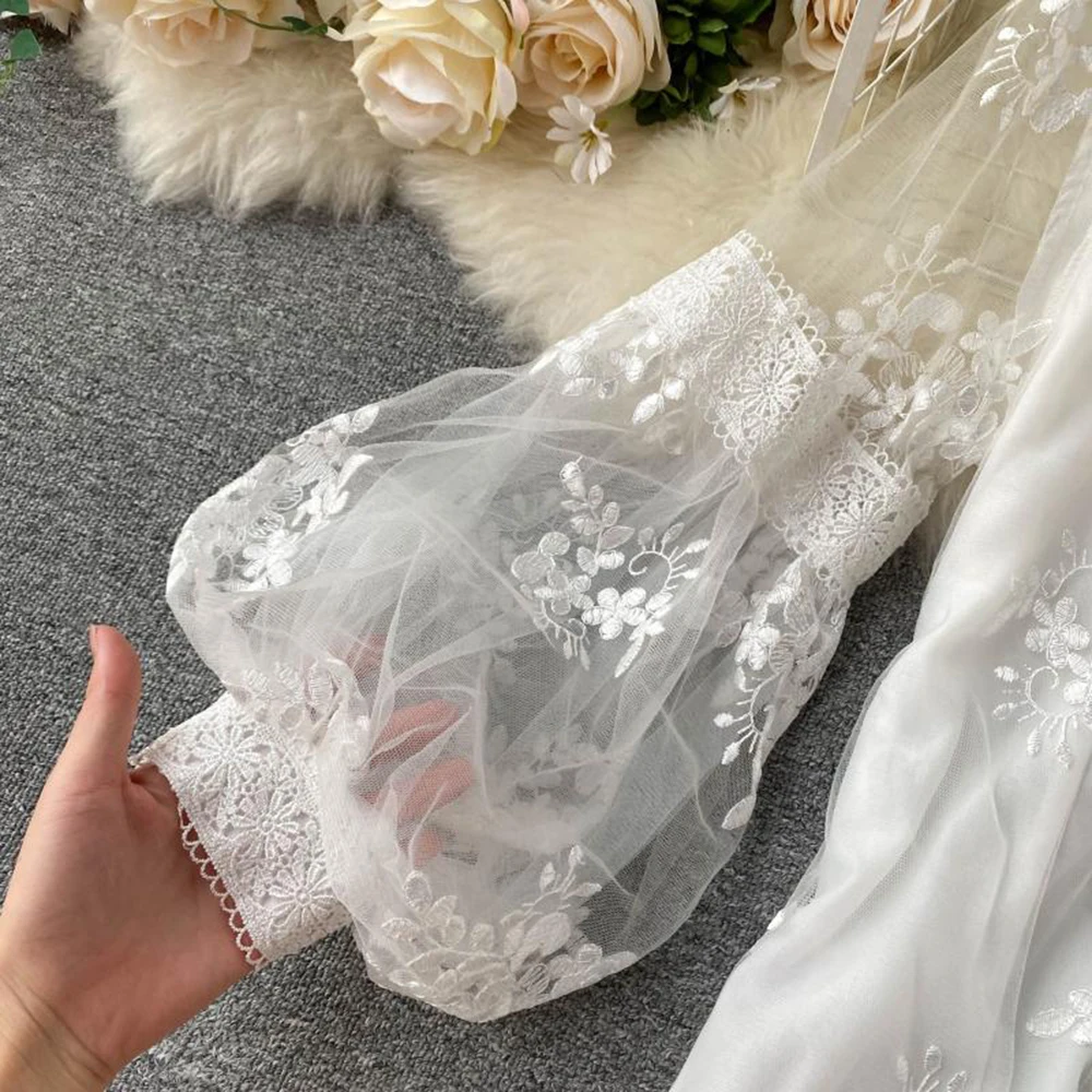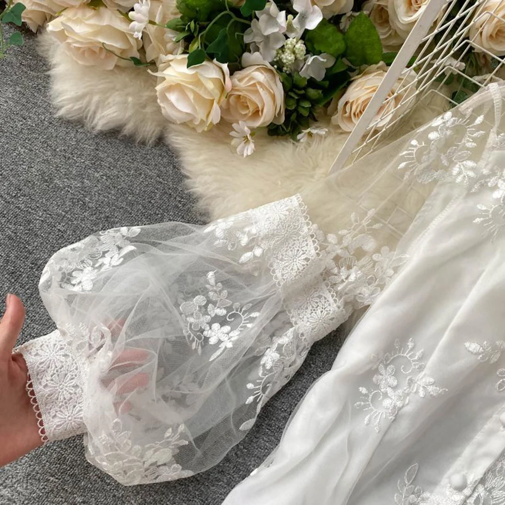 Purpdrank Womens Tops And Blouses Solid Lace White Shirt For Women Casual Long Sleeve O Neck Embroidery Elegant Spring Female Tunic