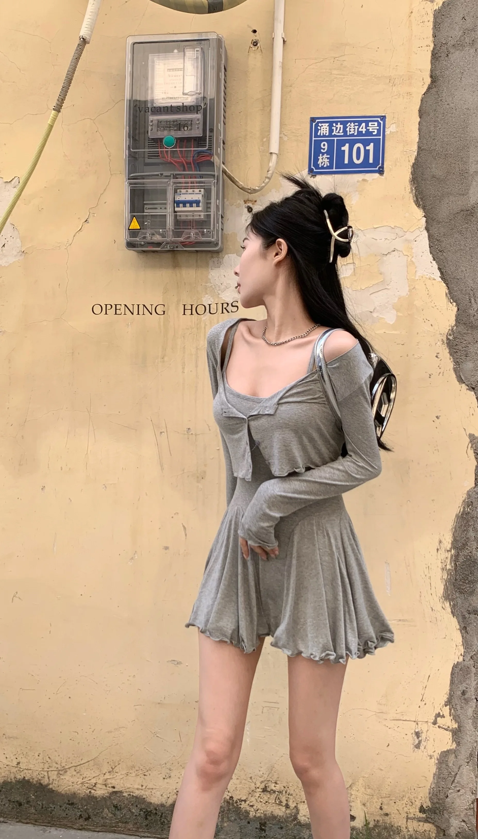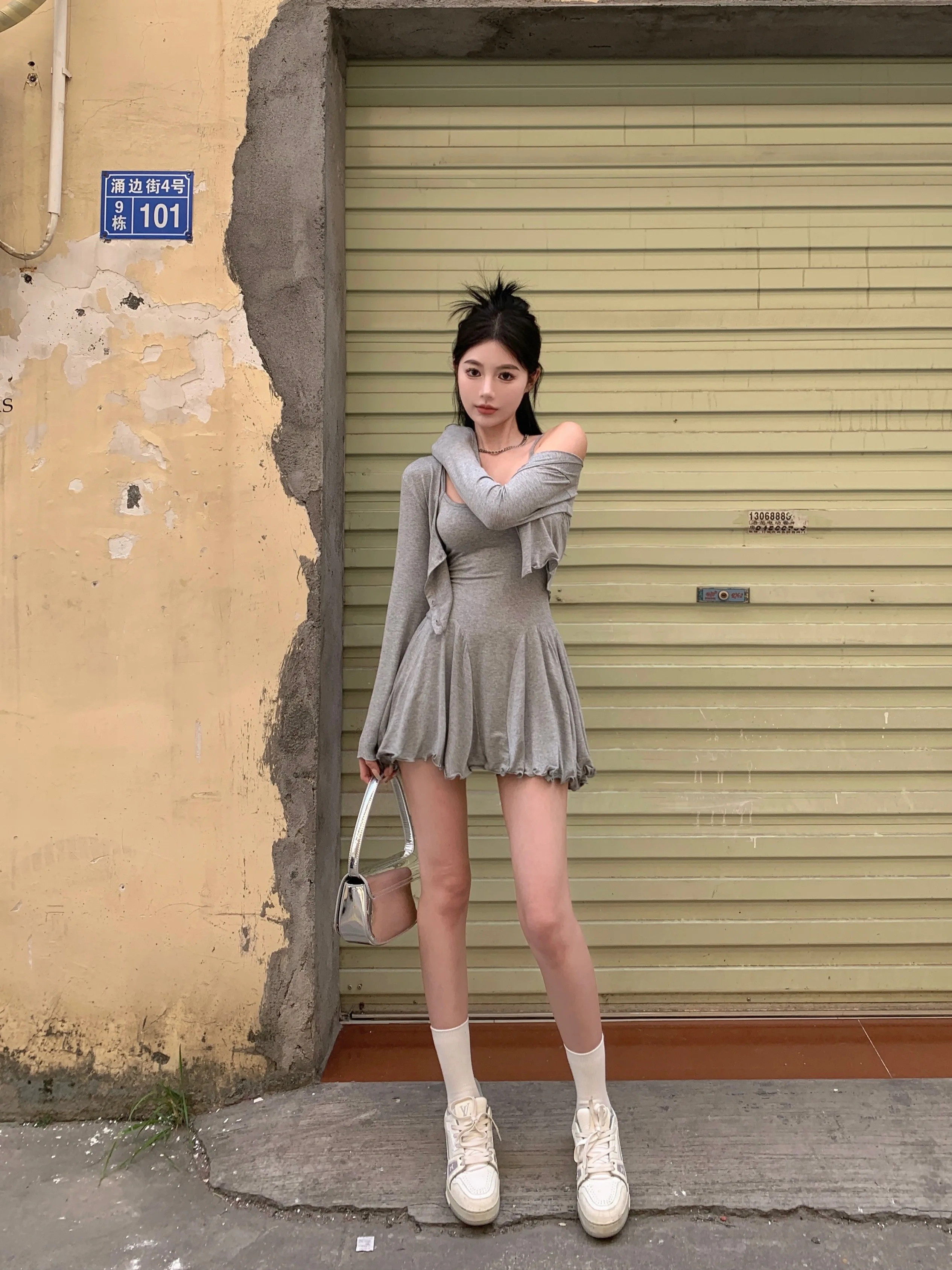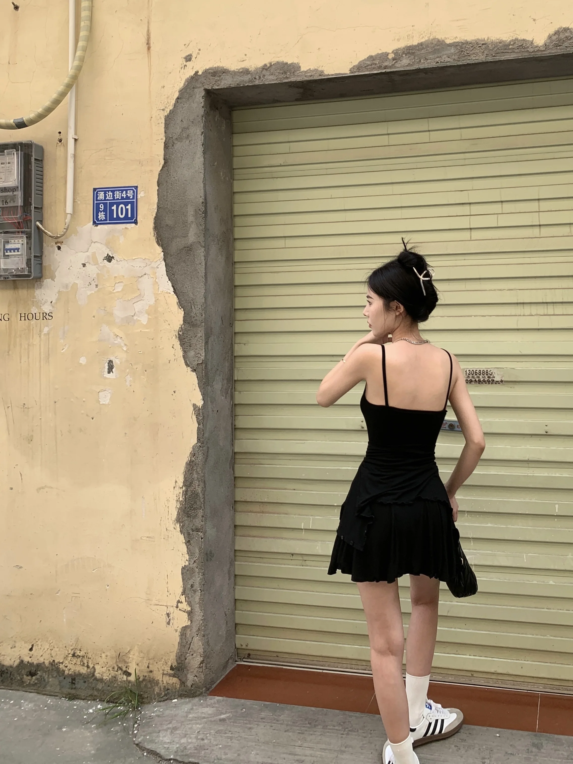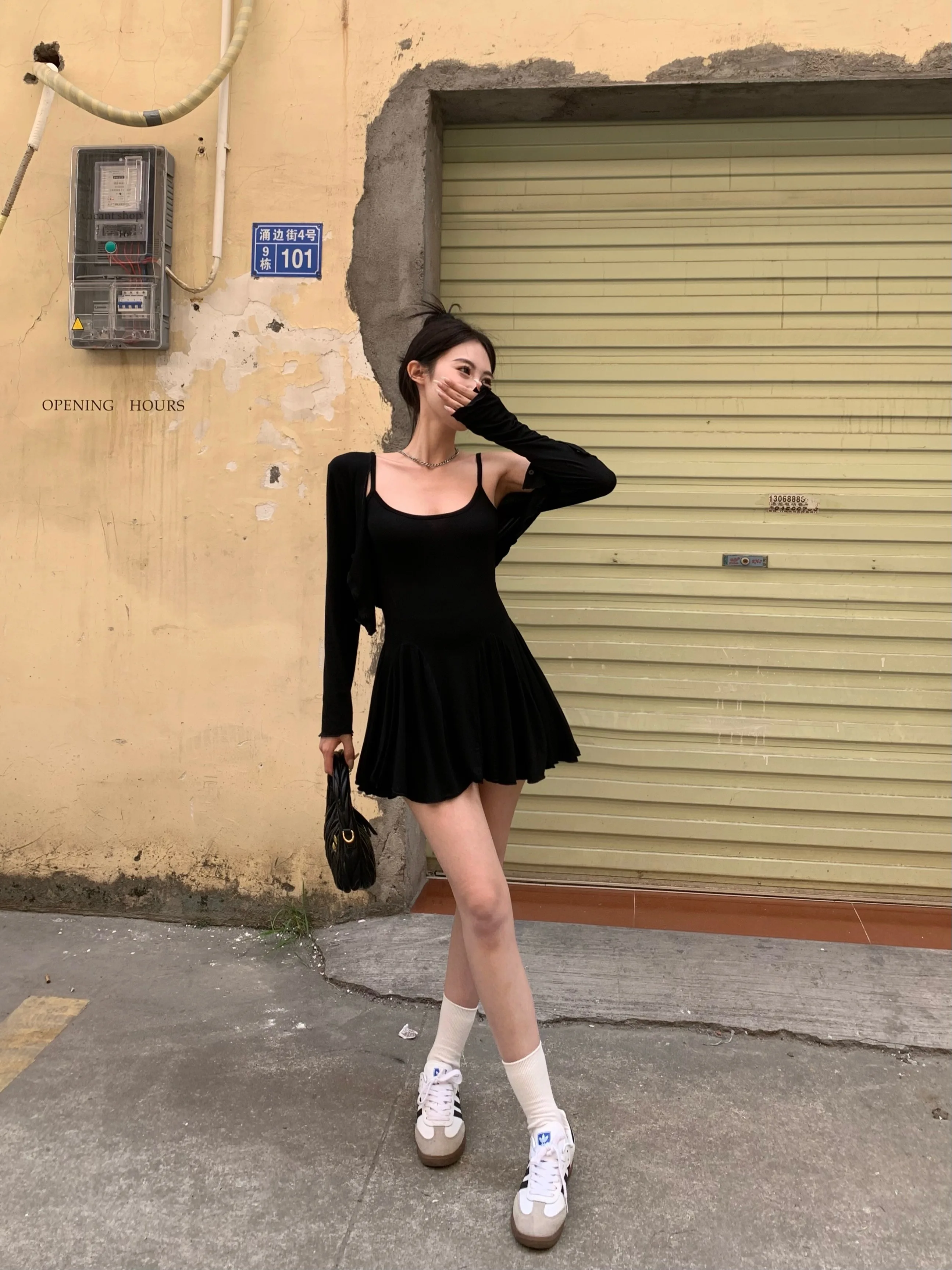 Purpdrank Autumn New Sling Short Black Dress Sets Women High Street Spicy Girls Crop Top & Short Mini Dress Sexy Club Two Piece Tracksuit