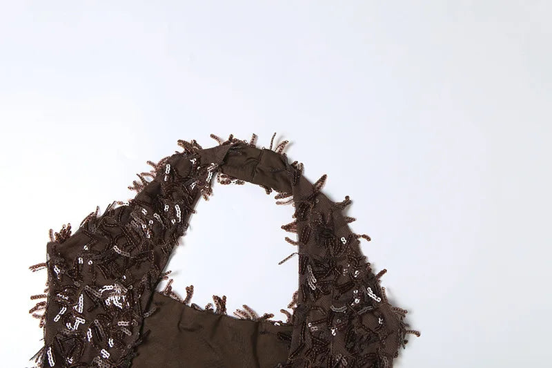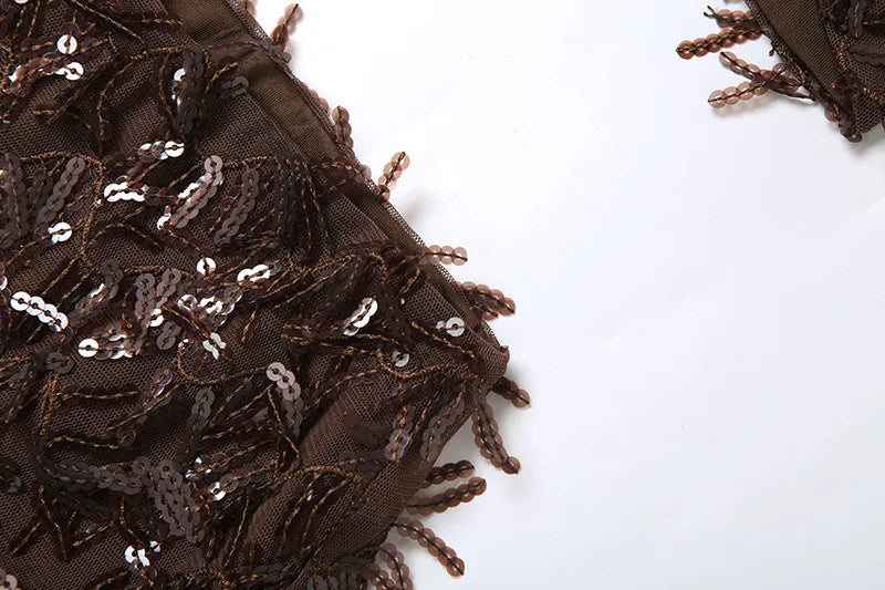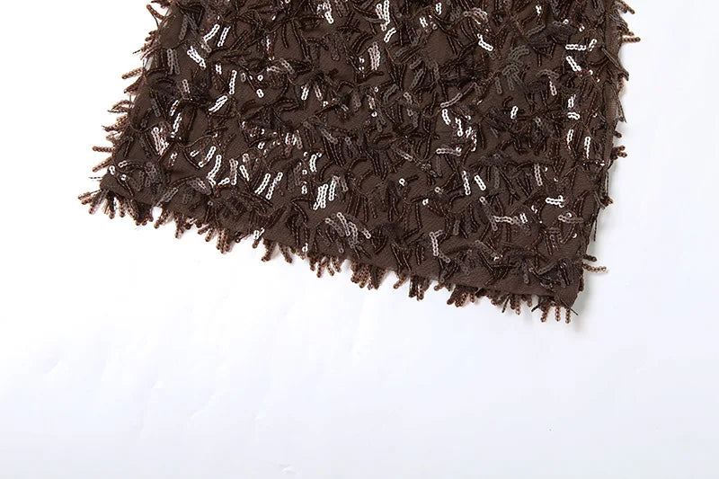 Purpdrank Deep V-Neck Sexy Sequins Tassel Women Two Piece Dress Sets 2025 Fashion Summer Halter Backless Cropped Top and Mini Skirts Suit