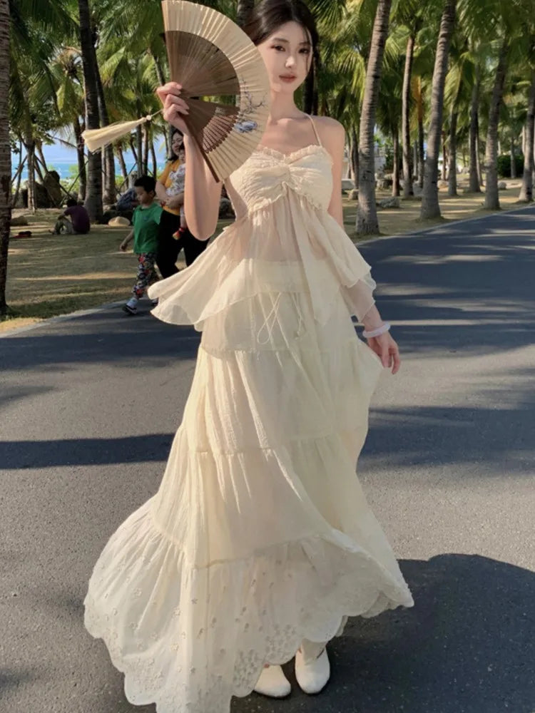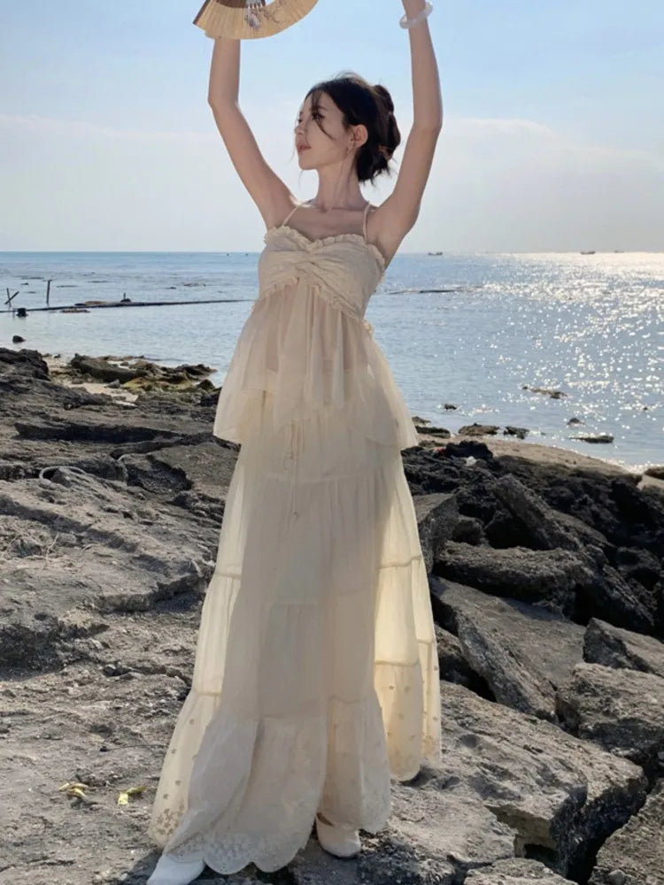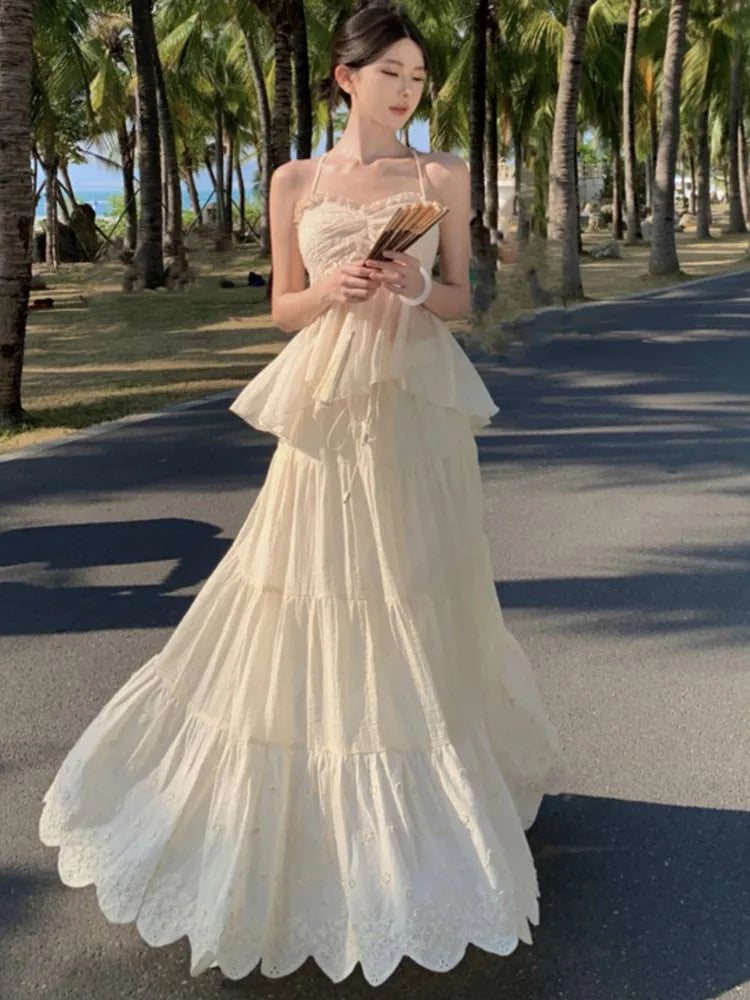 Purpdrank Elegant Casual Solid Skirt Suit Summer Halter Spaghetti Strap Top + A-line Loose Skirt Chiffon Womens Two Pieces Set New Outfits