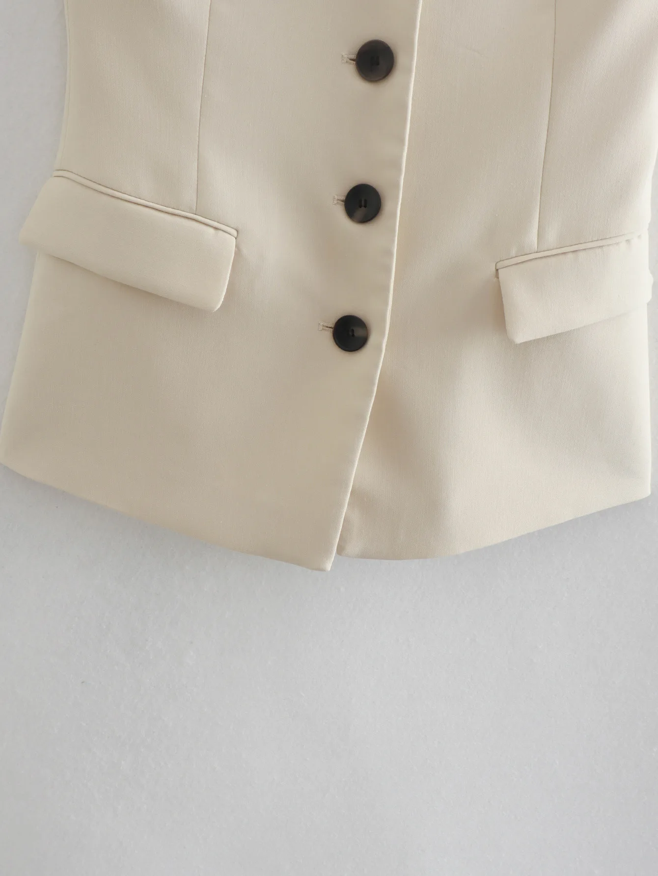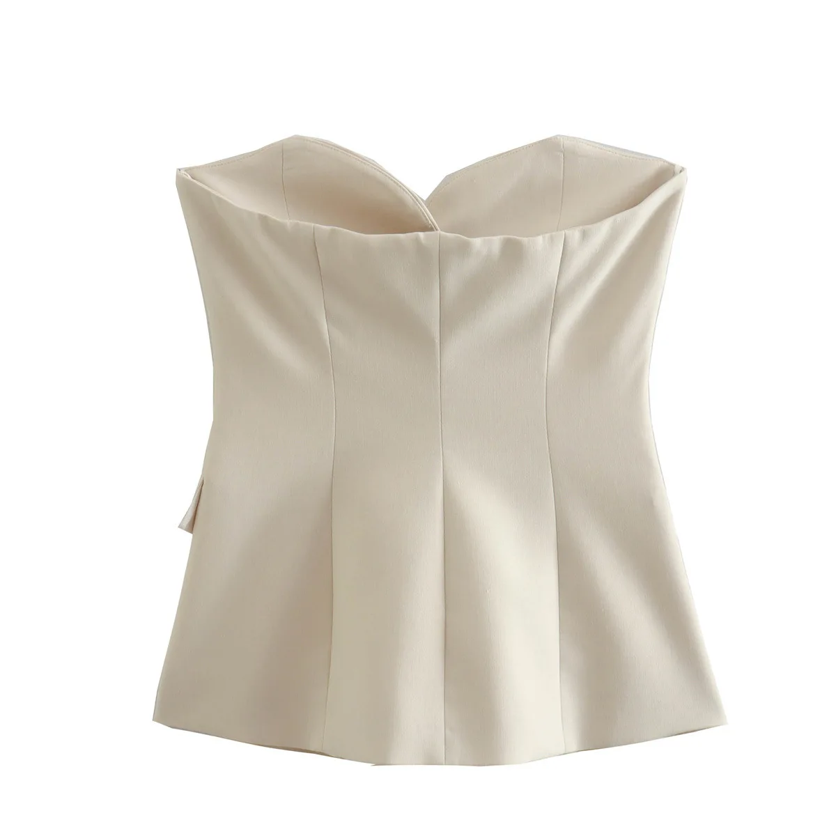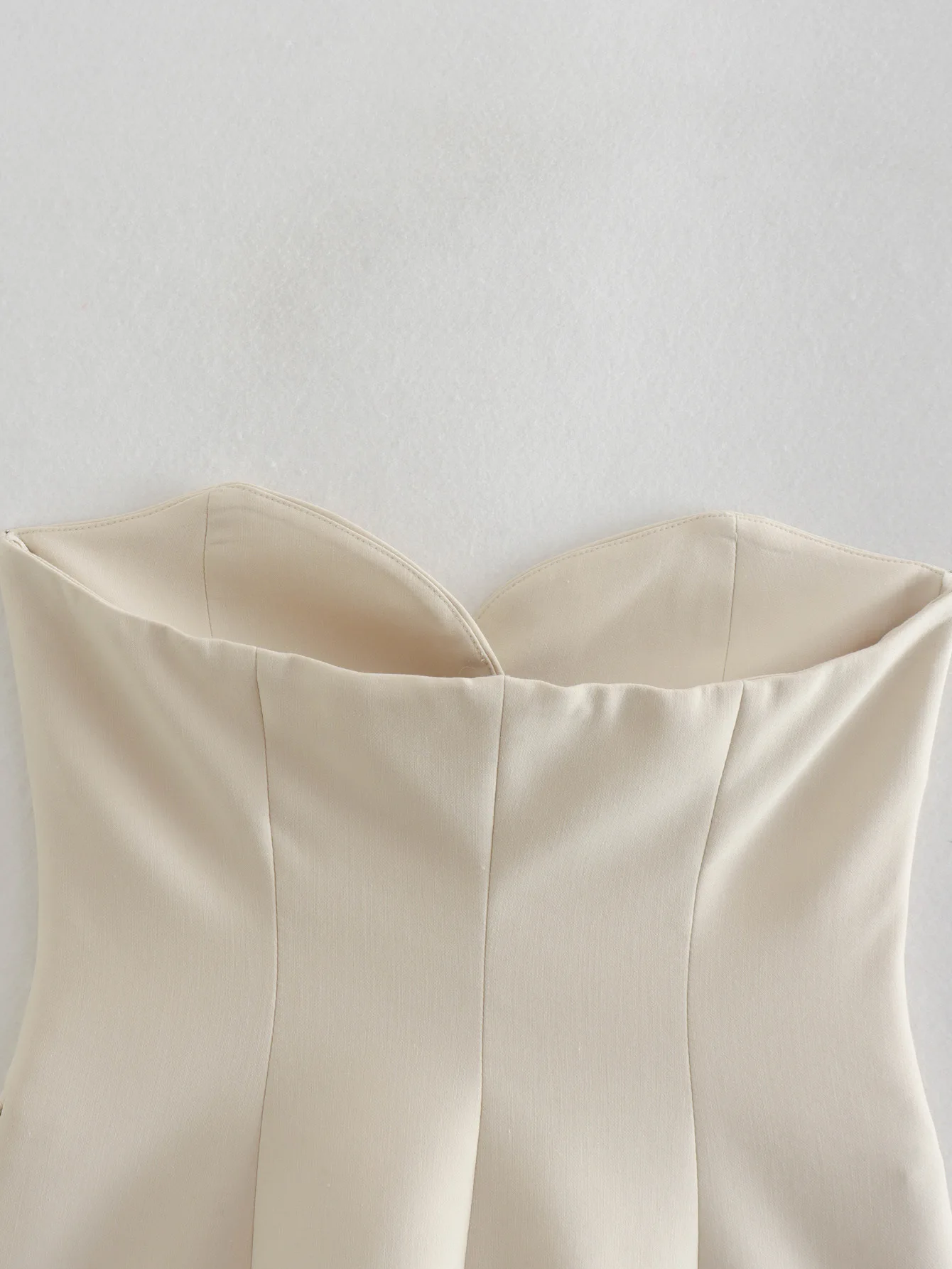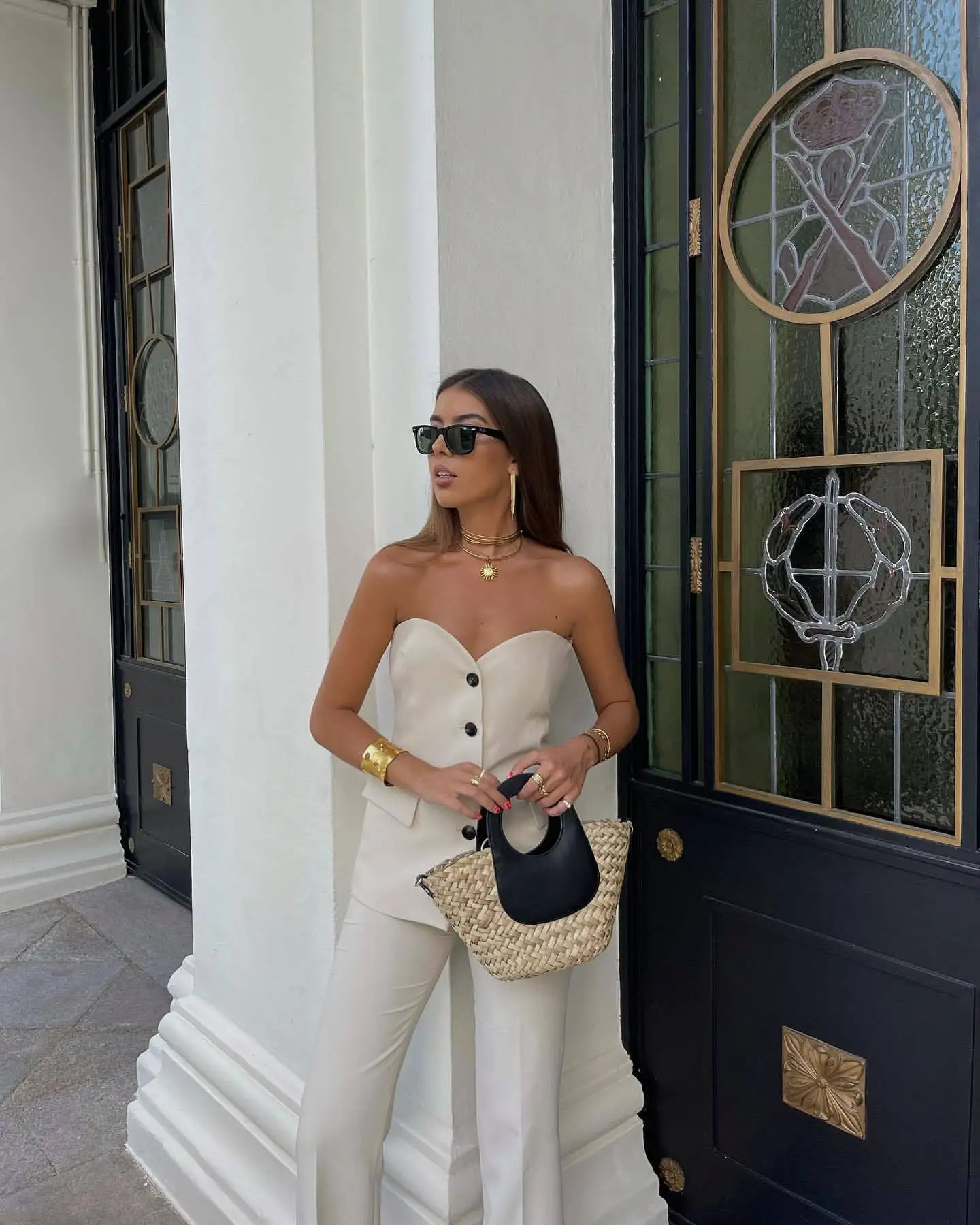 Purpdrank Elegant Solid 2 piece Pant Sets 2025 Button Strapless Sexy Tank Tube Tops + Straight Leg Slit Trouser Female Chic Streetwear