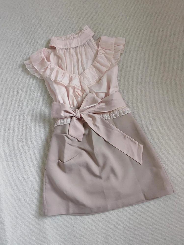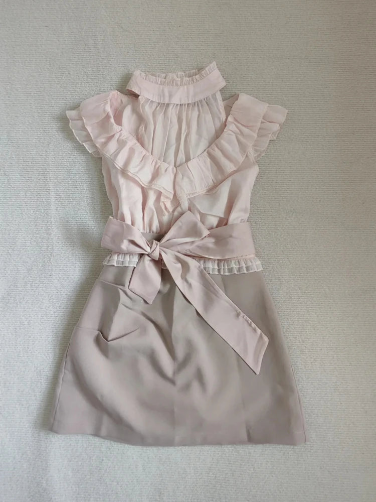 Purpdrank French Sweet Elegant Women 2 Piece Set Ruffled Neck Y2k Top + High Waist A-line Skirt Fashion Female Chic Korean Popular Clothes