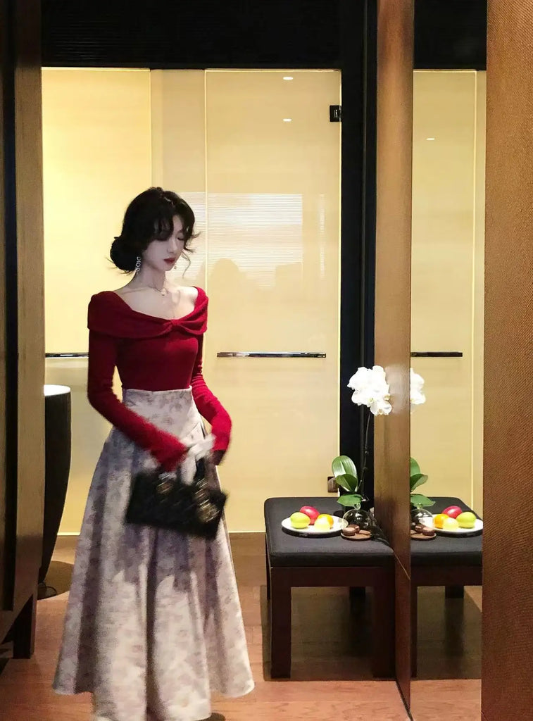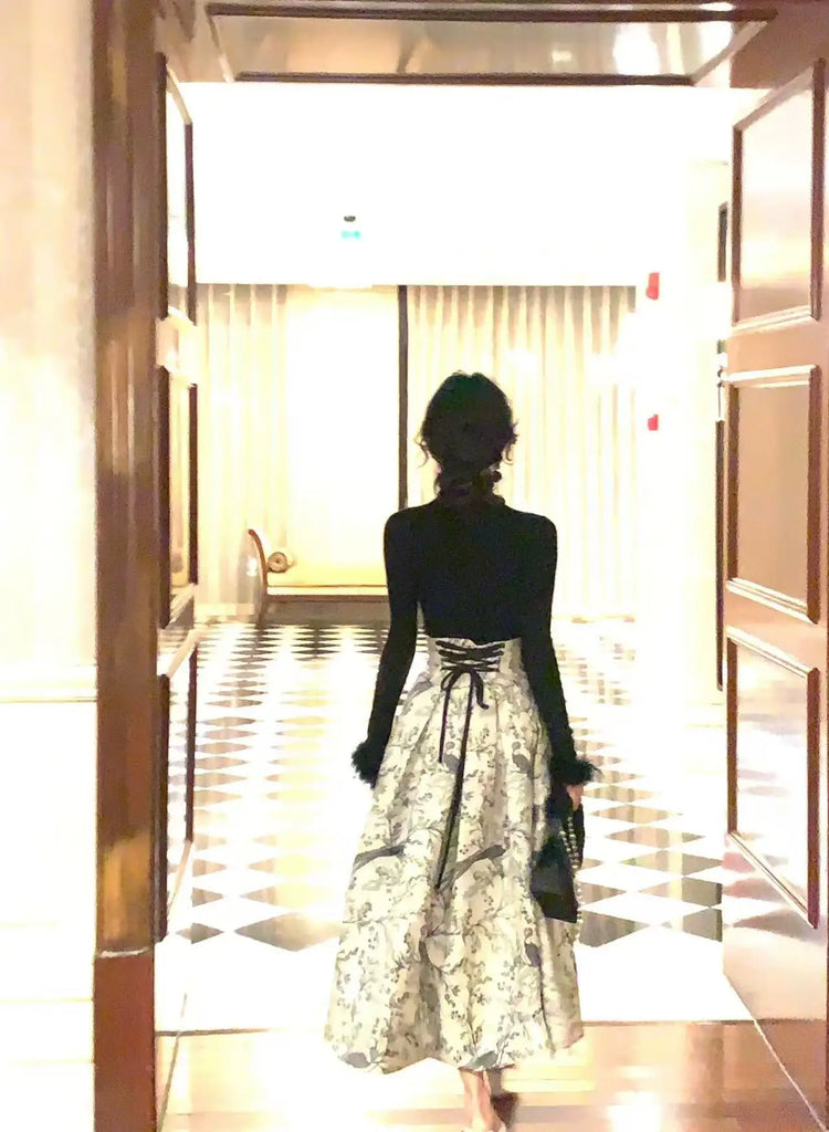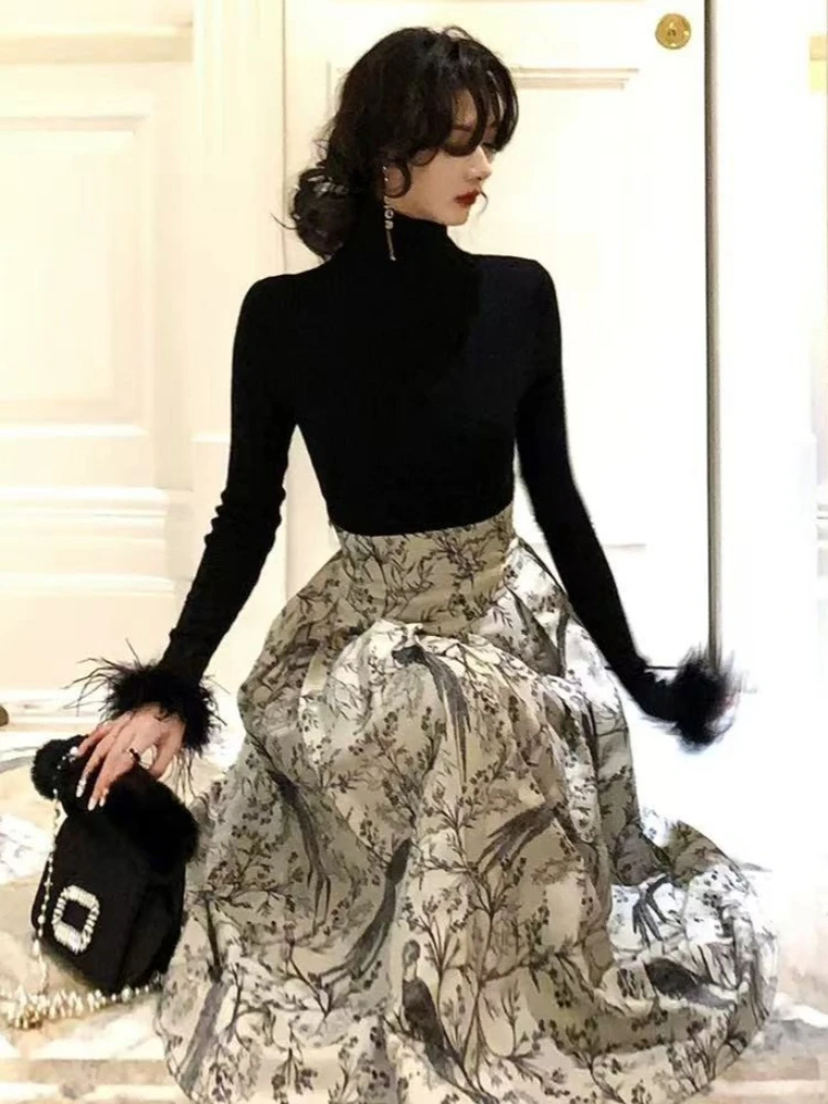Purpdrank French Vintaeg Elegant Knit 2 Piece Sets Woman Turtleneck Design Warm Evening Party Suit Feamale Princess Korean Popular Clothes