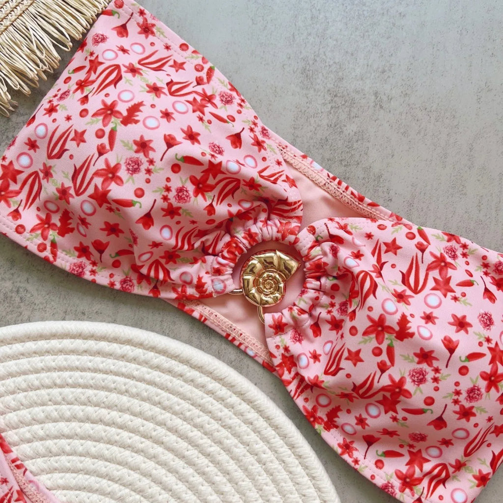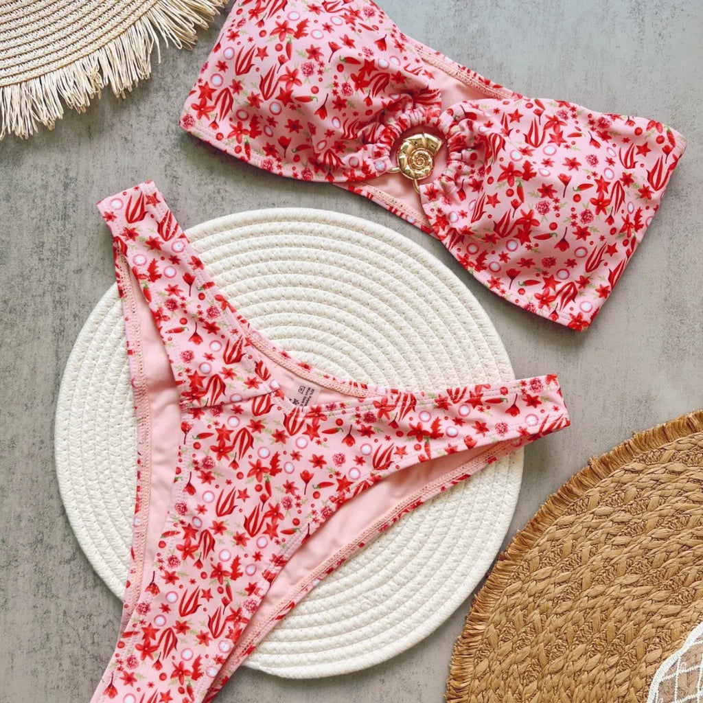 Purpdrank Pink Floral Pirnted Sexy Sleeveless Low Waist Bikini Set For Women Boho Beach Swim Wear Suit Casual Two Pieces Sets Swimsuit