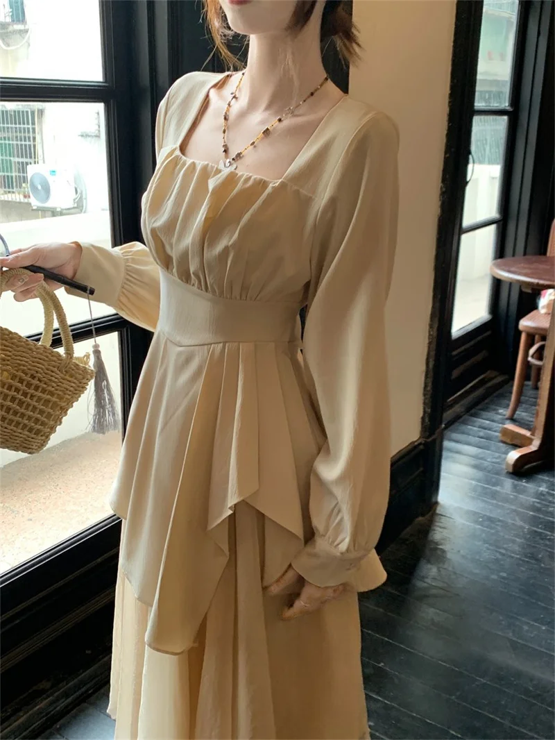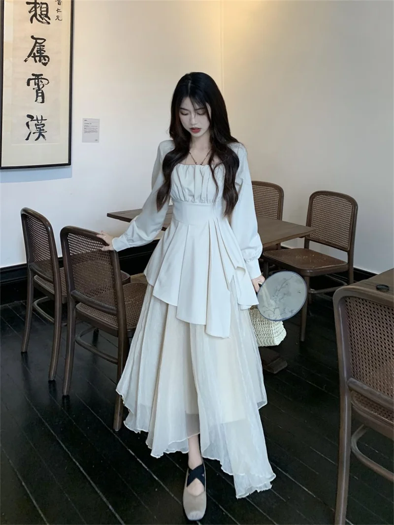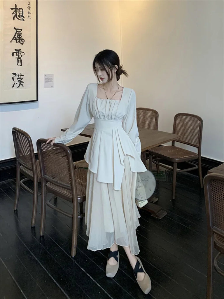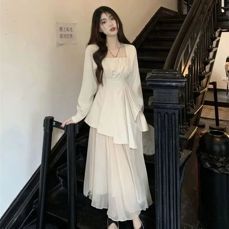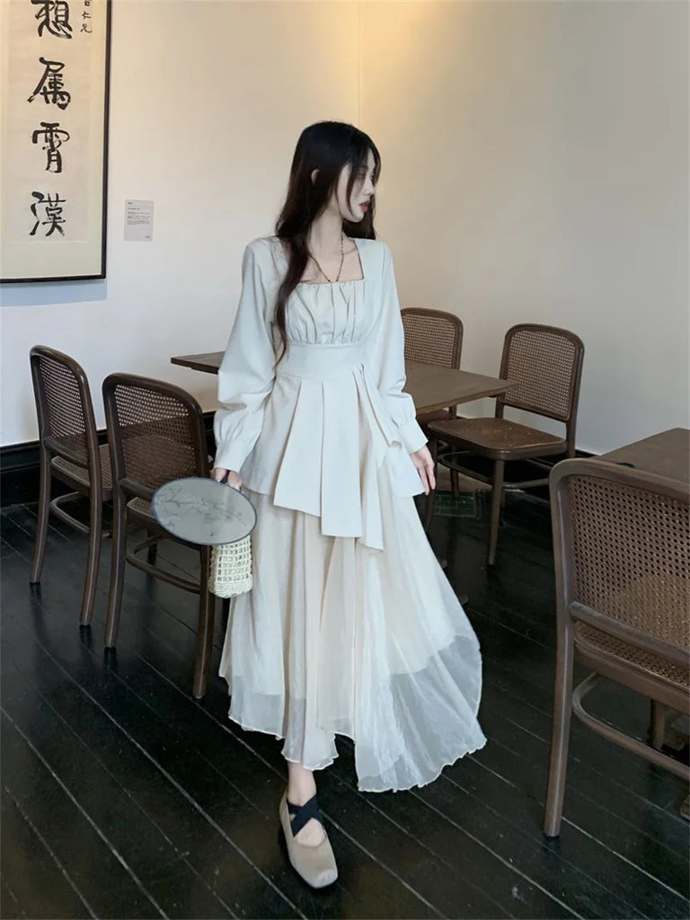 Purpdrank Pure Desire Wind Set Autumn New Style Square Collar Irregular Belly Covering Top Mesh Half Skirt Two Piece Set Women's Wear