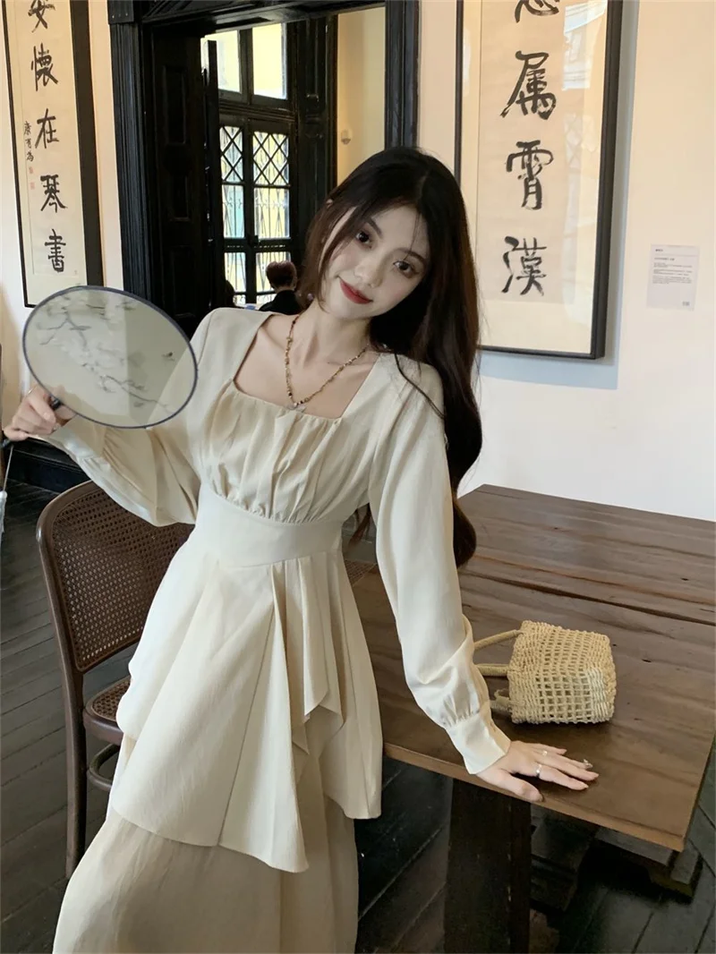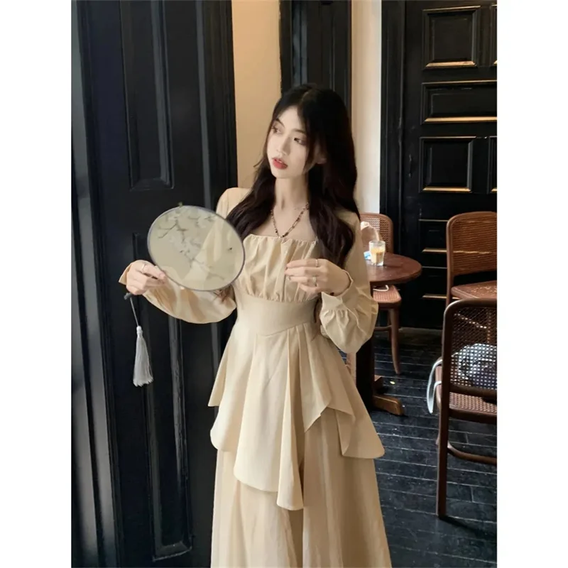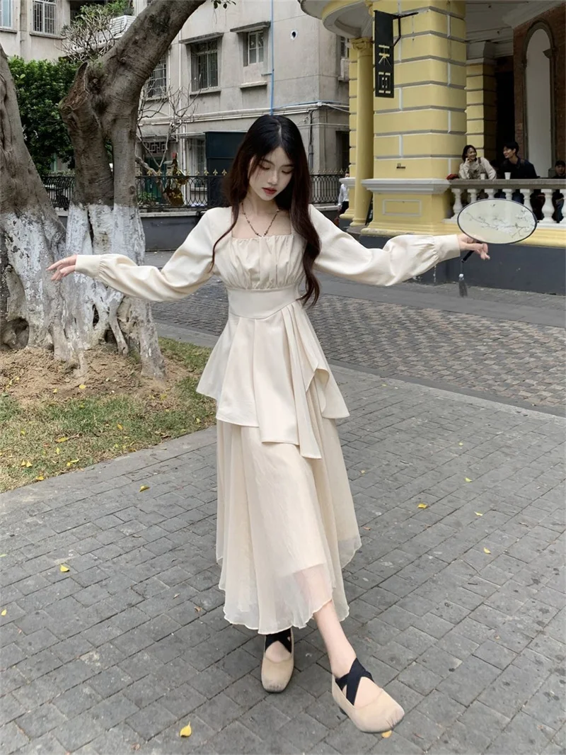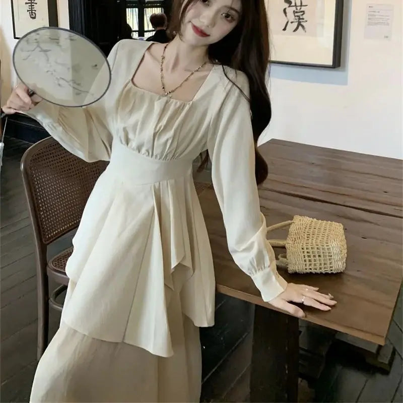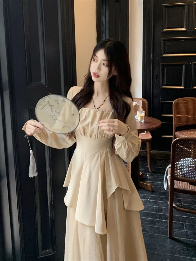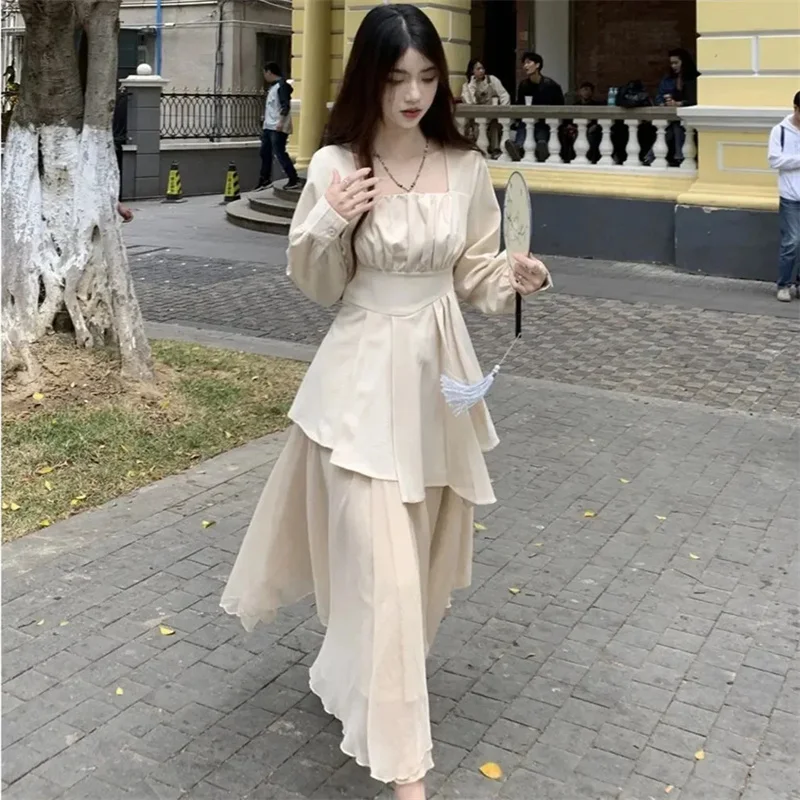 Purpdrank Pure Desire Wind Set Autumn New Style Square Collar Irregular Belly Covering Top Mesh Half Skirt Two Piece Set Women's Wear