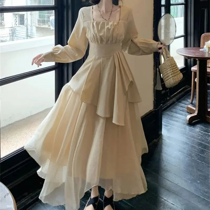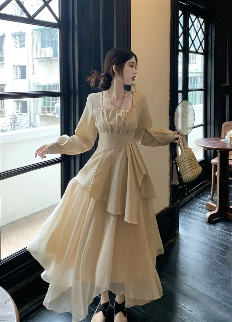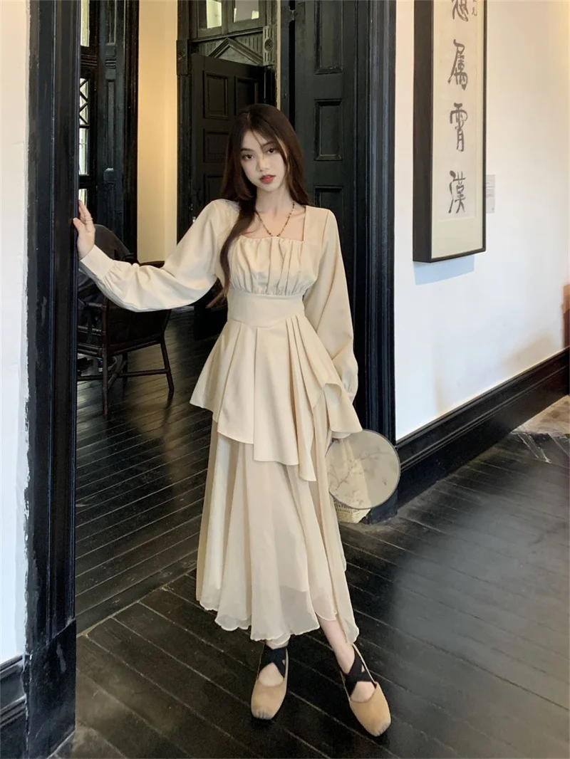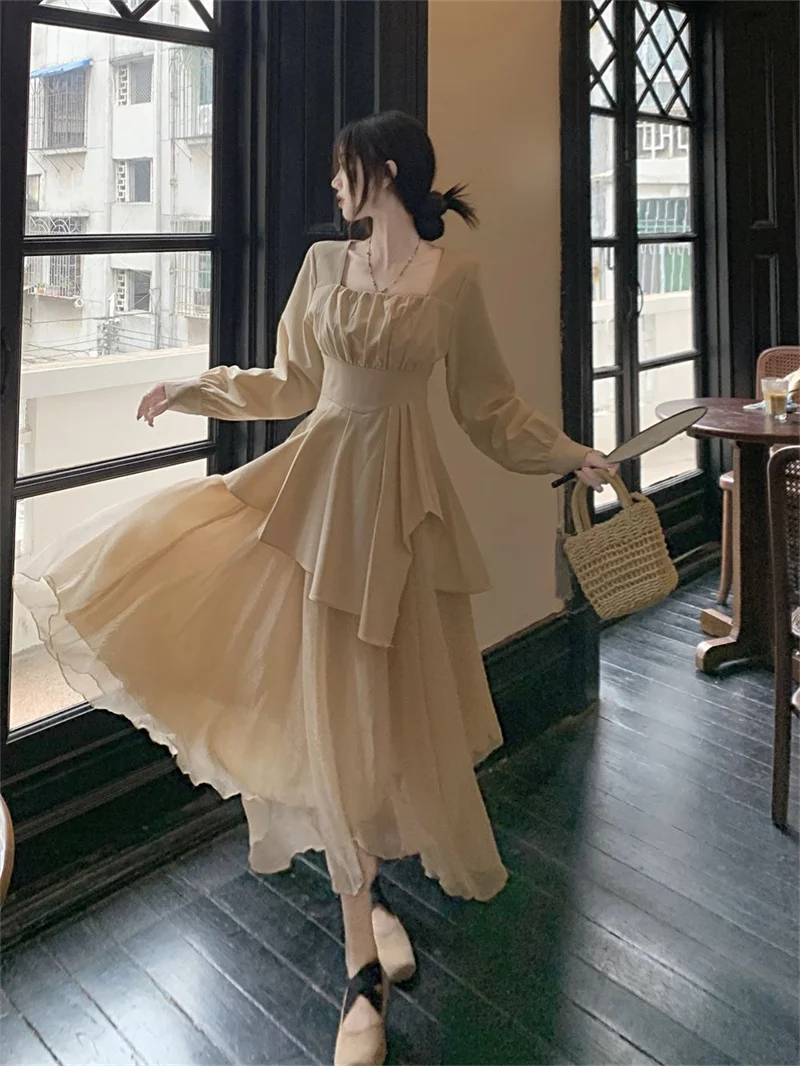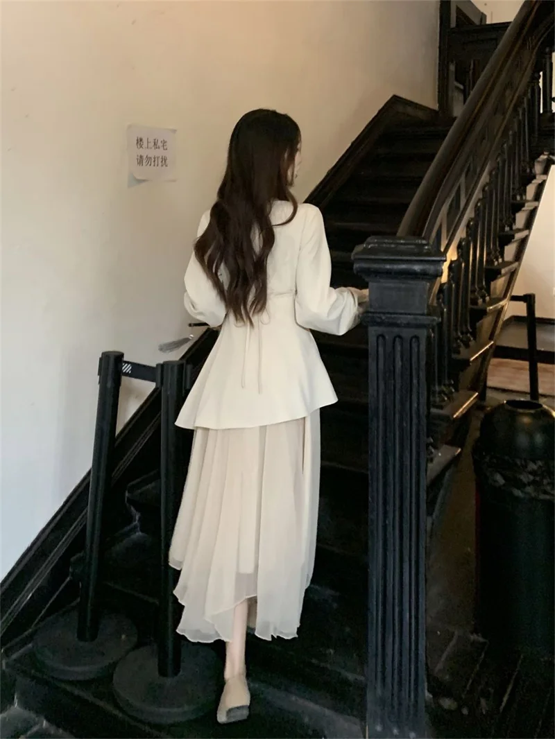 Purpdrank Pure Desire Wind Set Autumn New Style Square Collar Irregular Belly Covering Top Mesh Half Skirt Two Piece Set Women's Wear