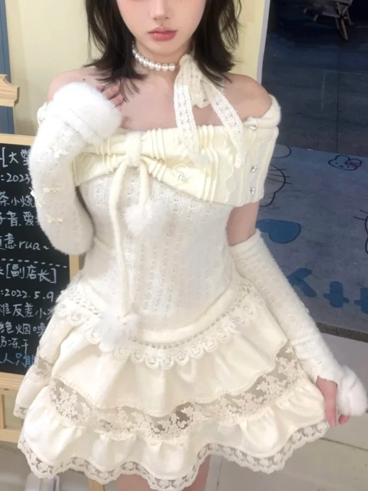 Purpdrank Sweet Autumn Winter Women 2 Piece Set Sexy Design Slash Neck Y2k Tops + Lace Mini Skirt Princess Aesthetic Elegant Chic Outfits
